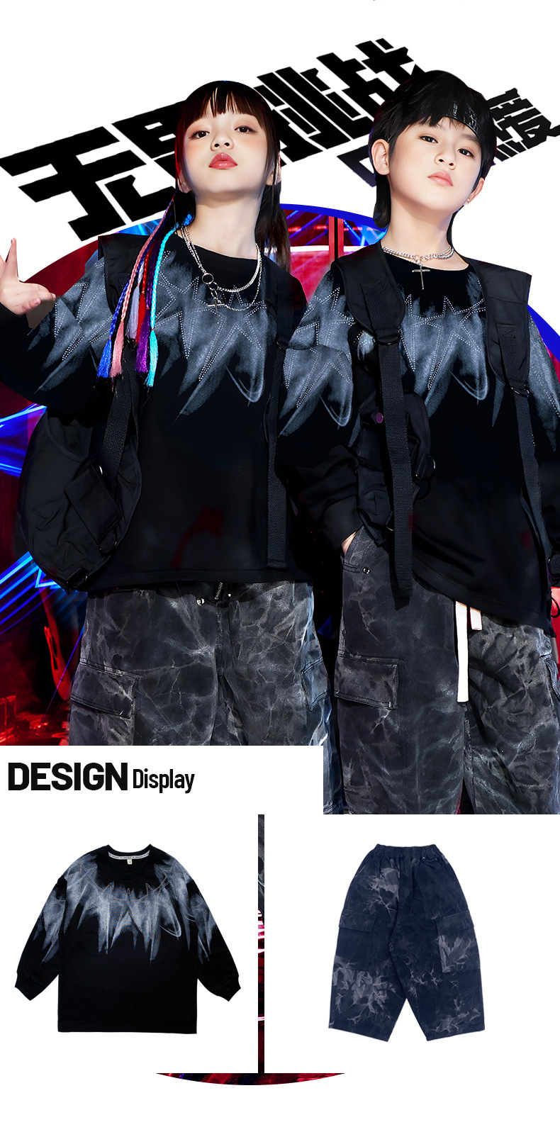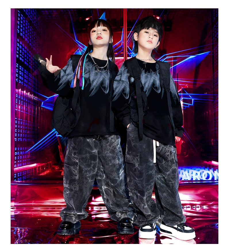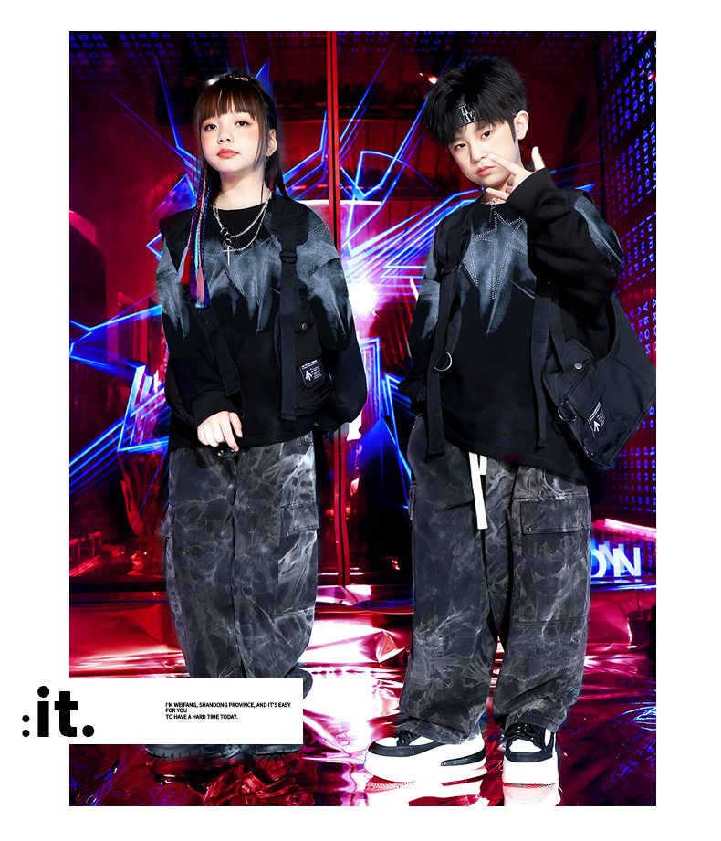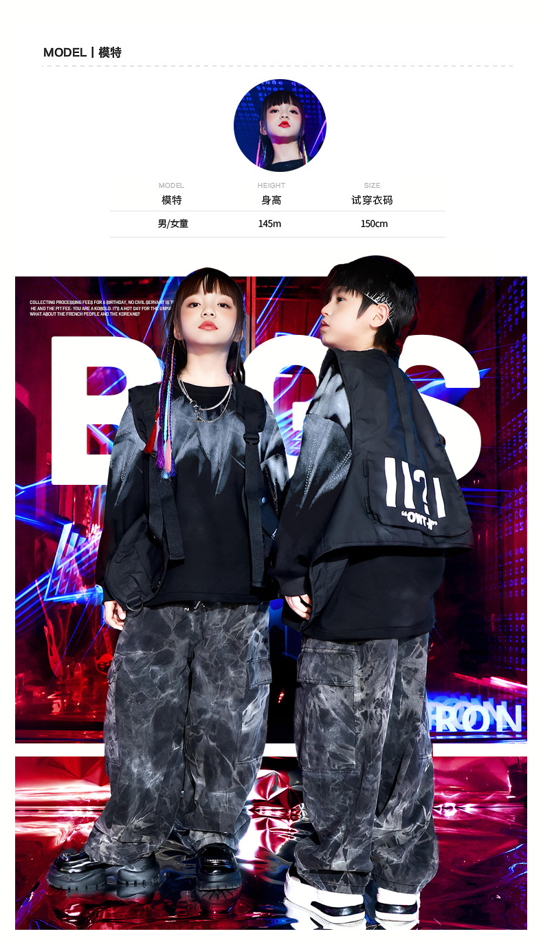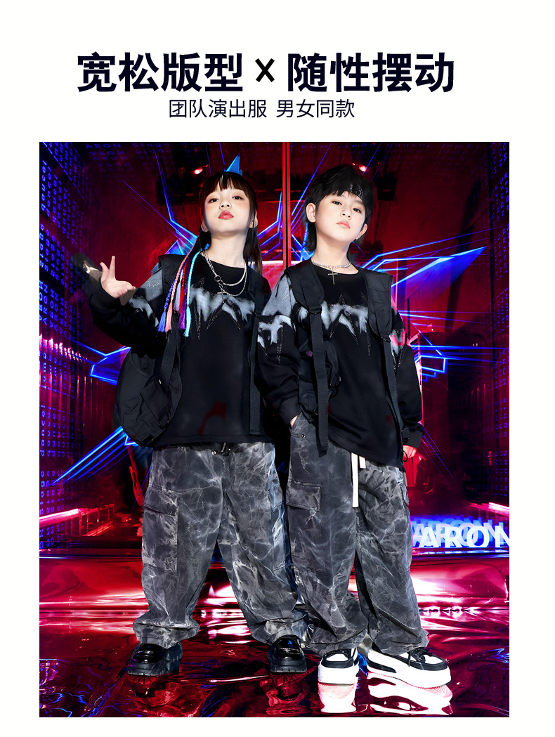 街舞儿童潮服男童爵士舞表演服女童嘻哈hiphop炸街少儿演出服套装