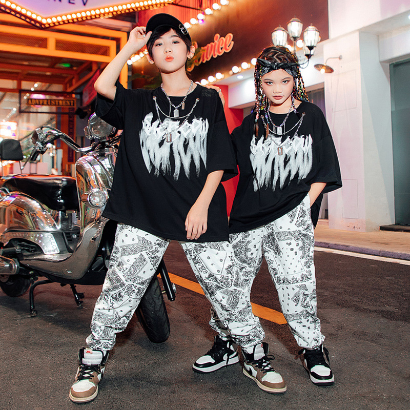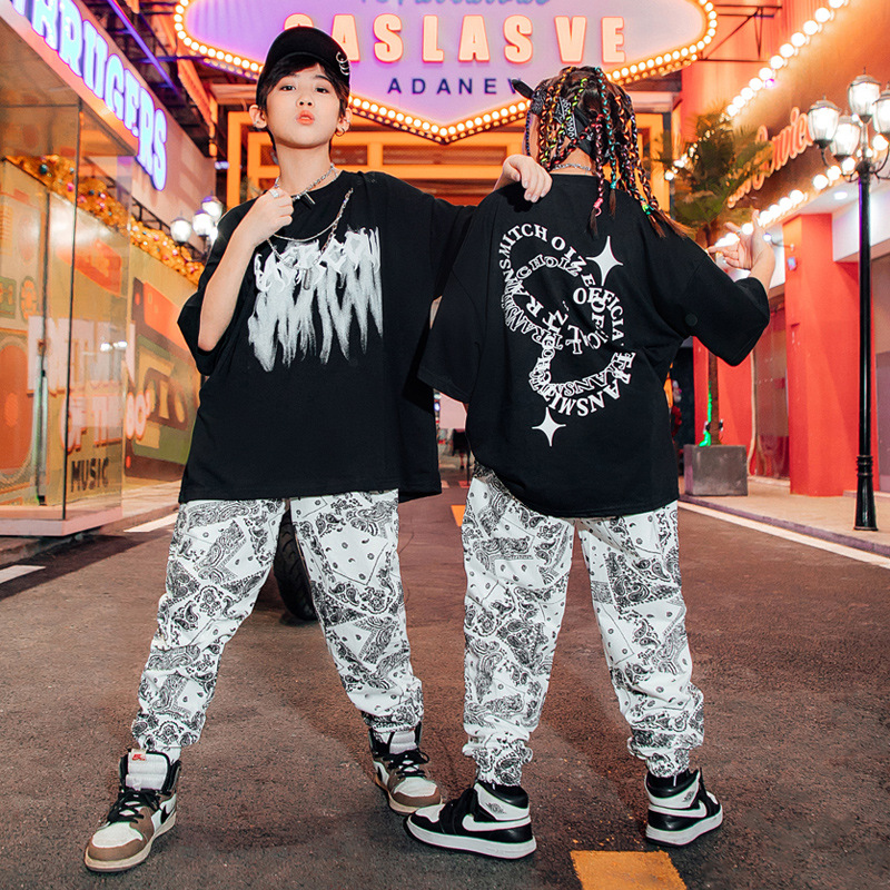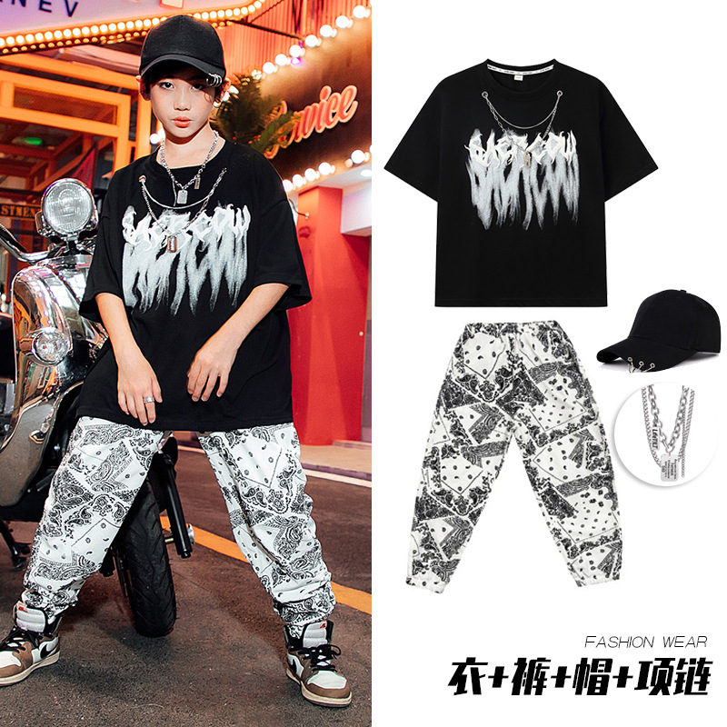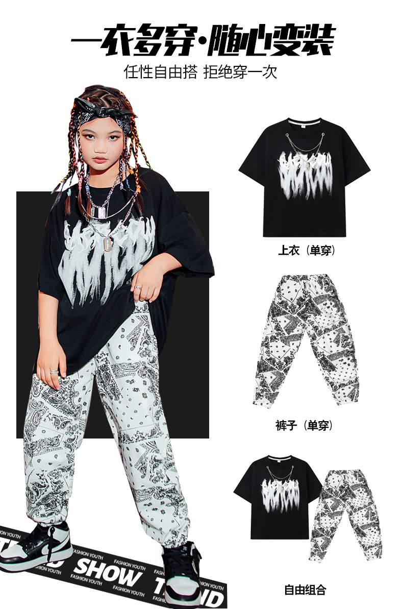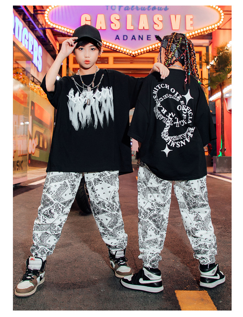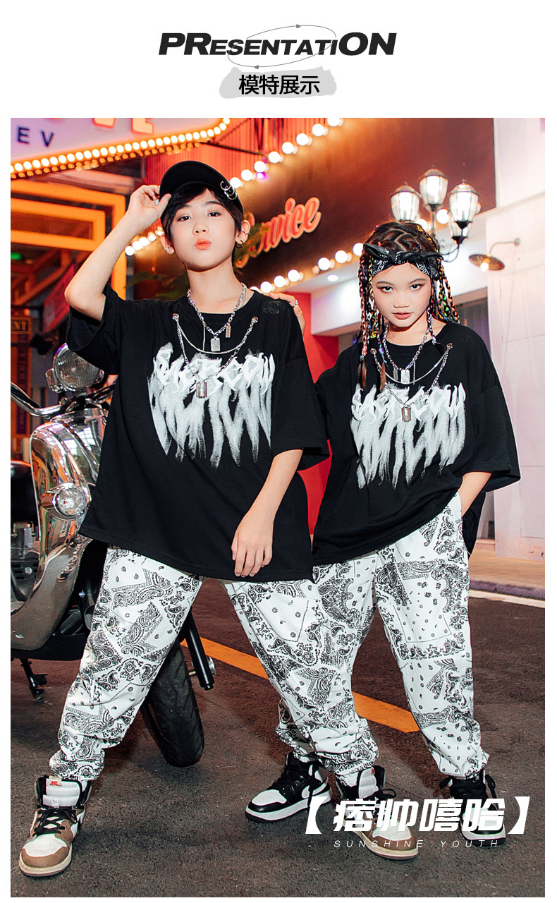男童街舞表演服儿童白色嘻哈套装爵士舞蹈演出服女少儿hiphop潮服
