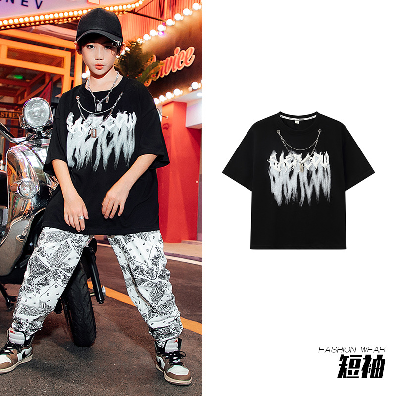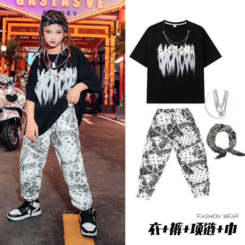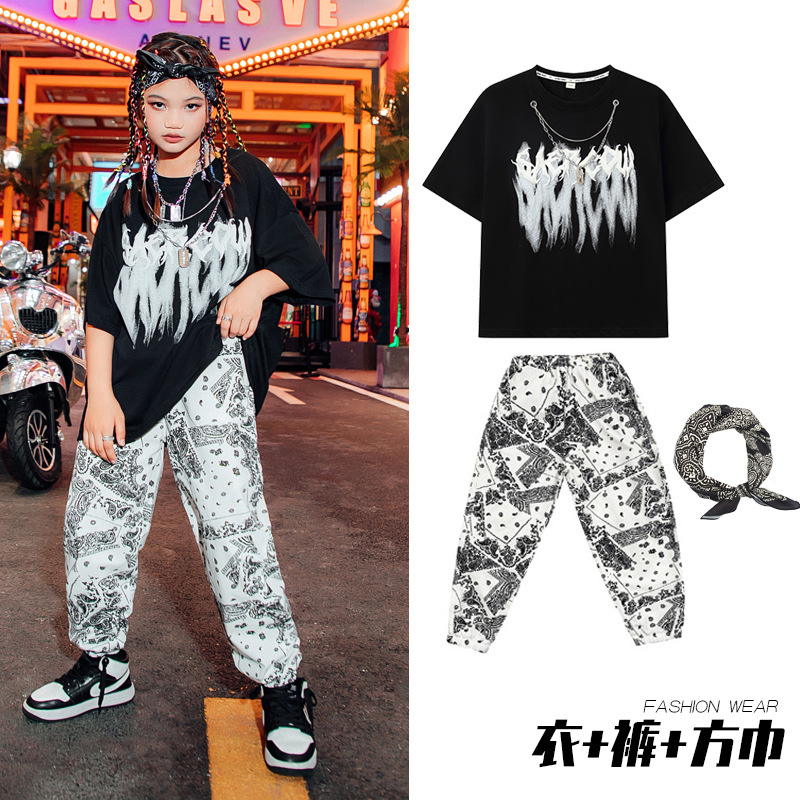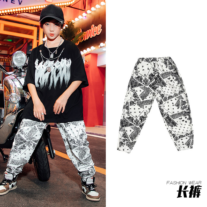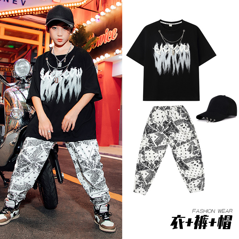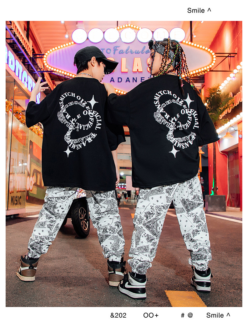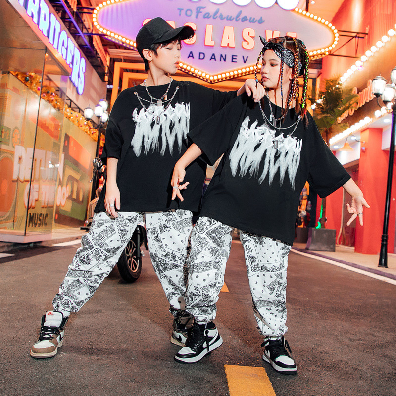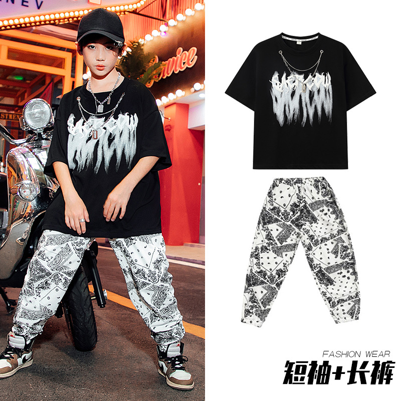 男童街舞表演服儿童白色嘻哈套装爵士舞蹈演出服女少儿hiphop潮服