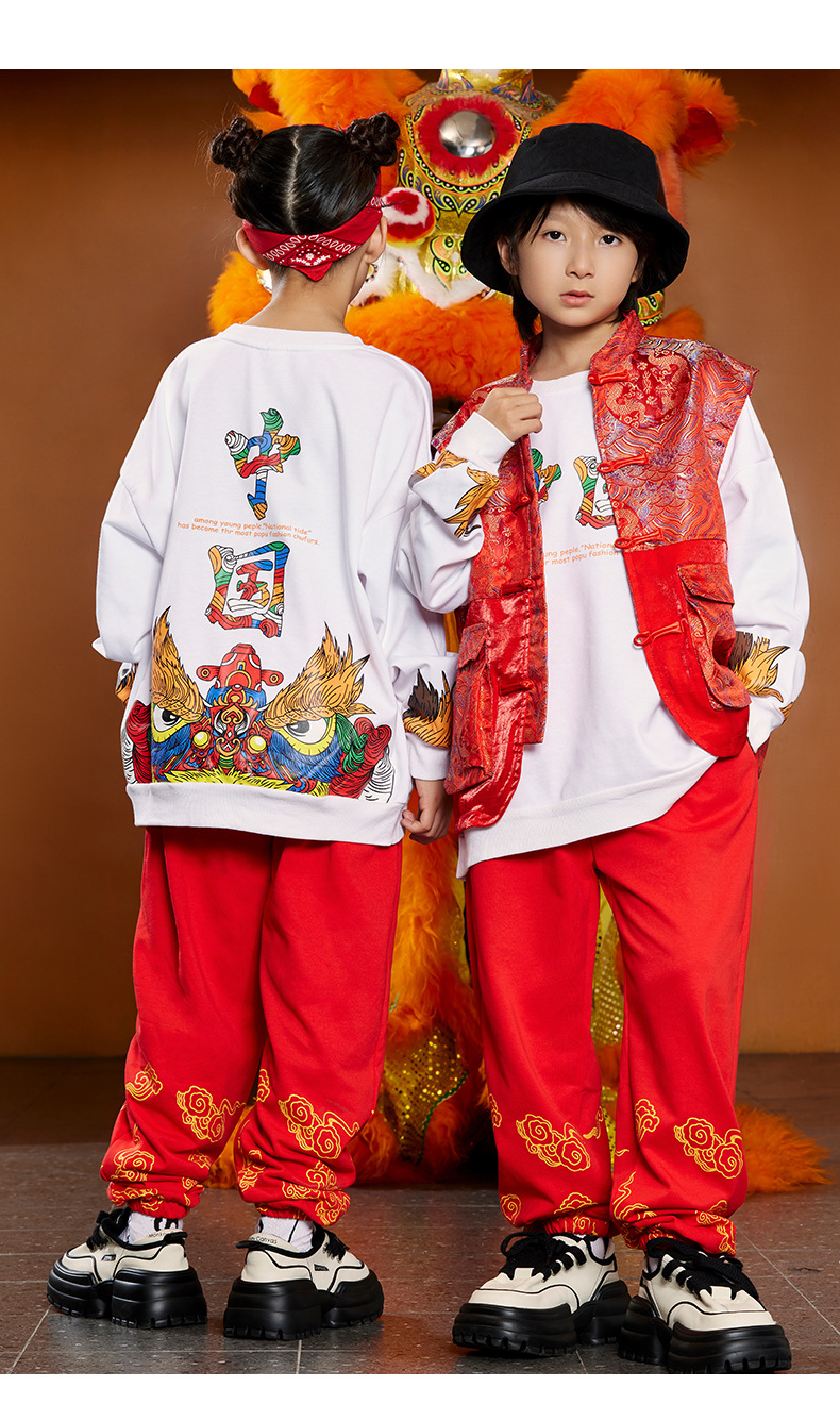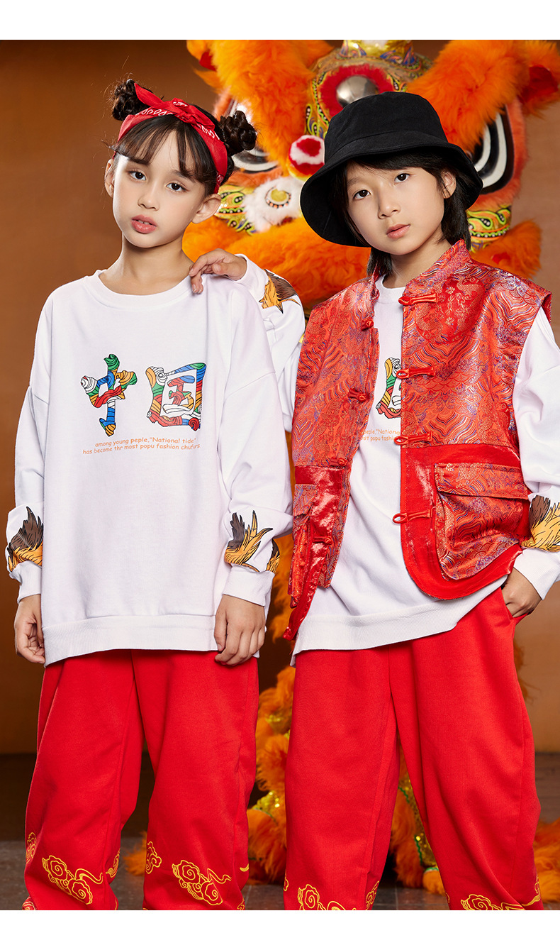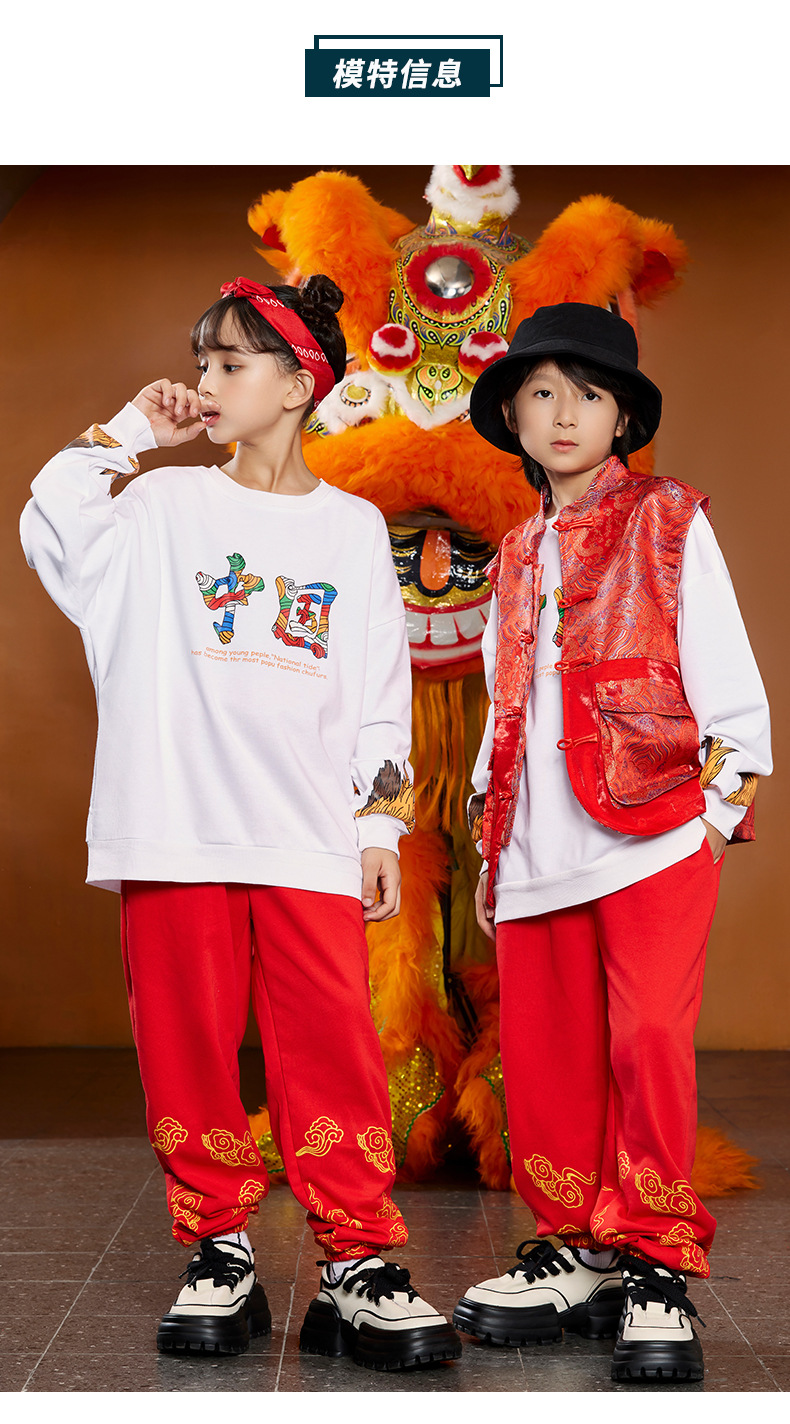 儿童啦啦队演出服女童hiphop爵士舞服装男童嘻哈潮酷中国风表演服