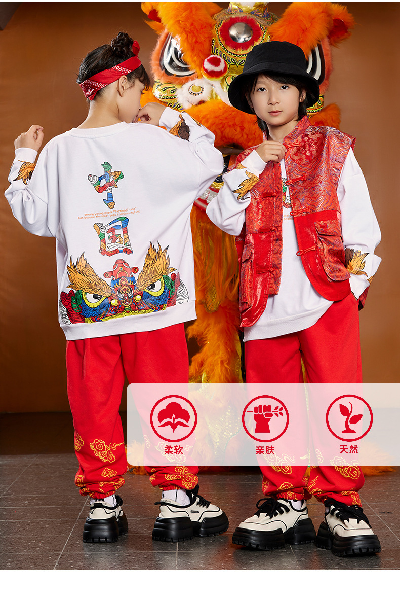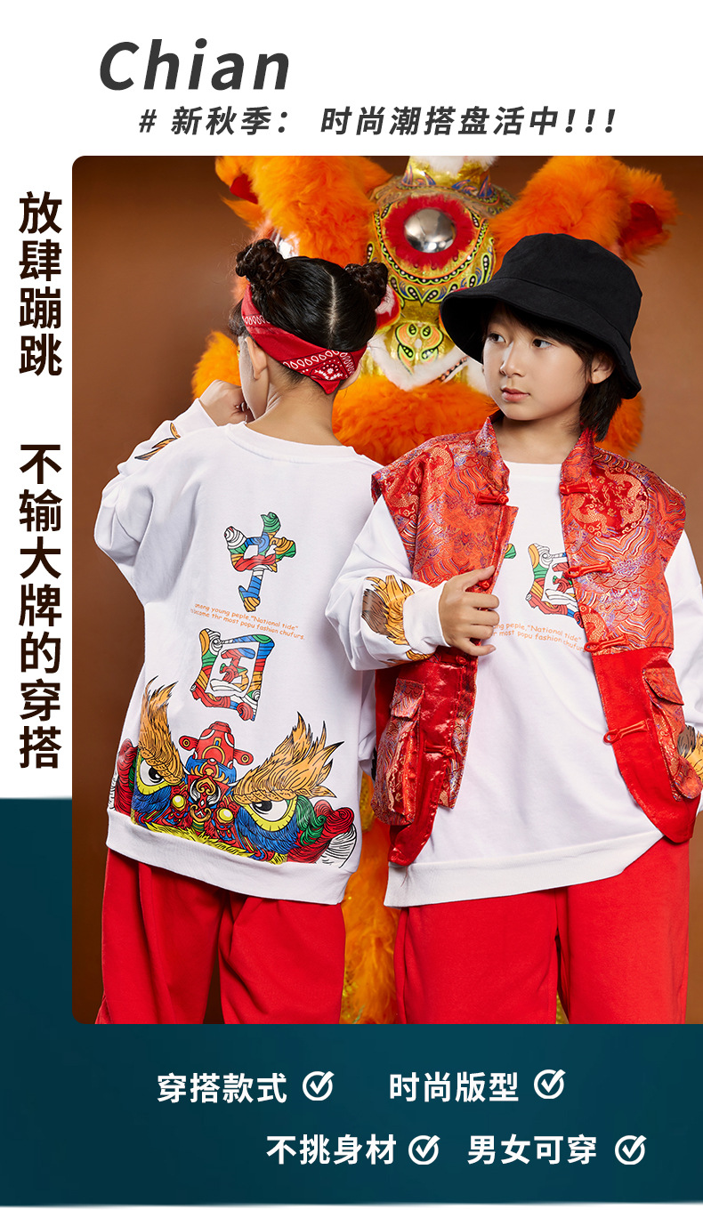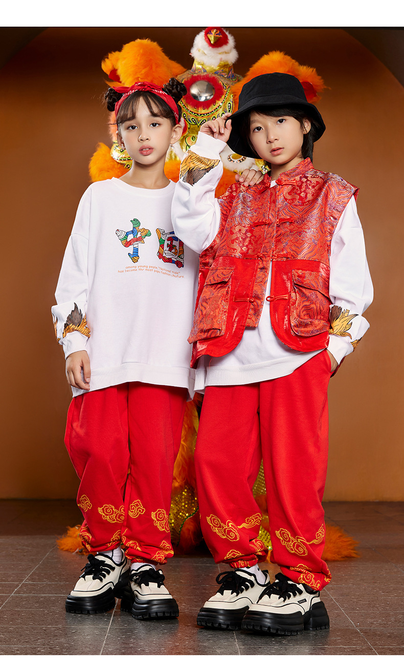 儿童啦啦队演出服女童hiphop爵士舞服装男童嘻哈潮酷中国风表演服