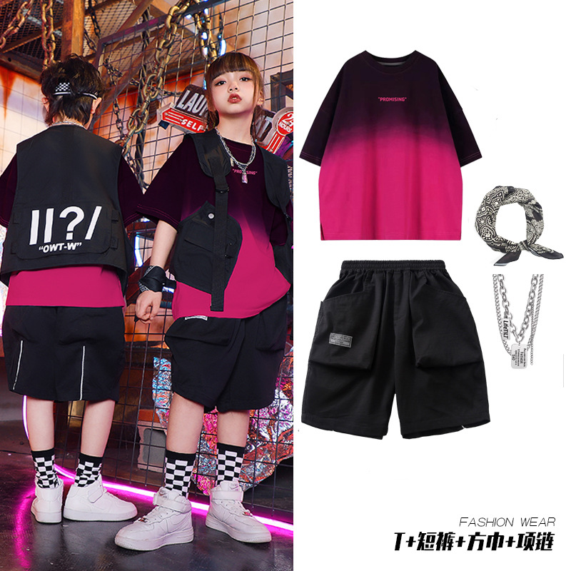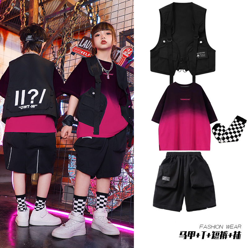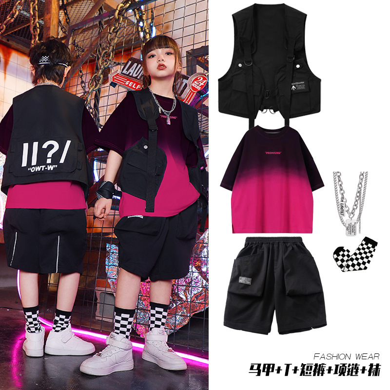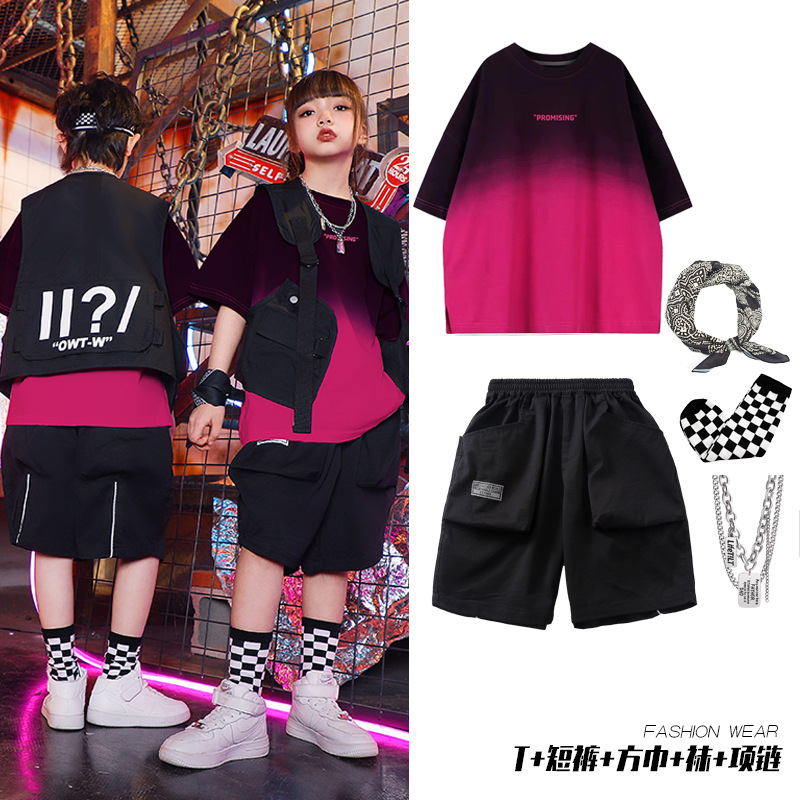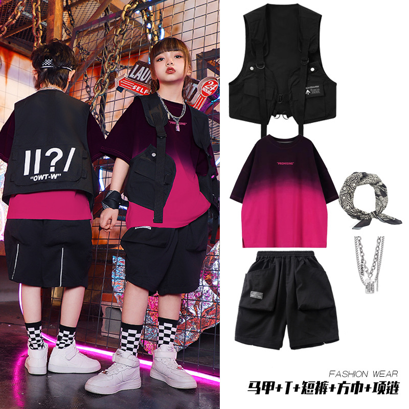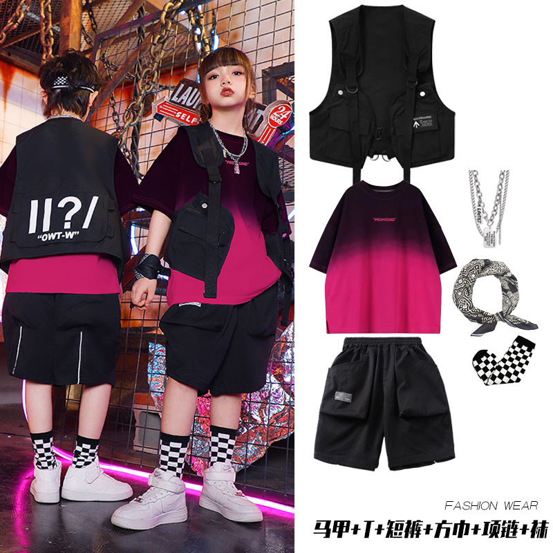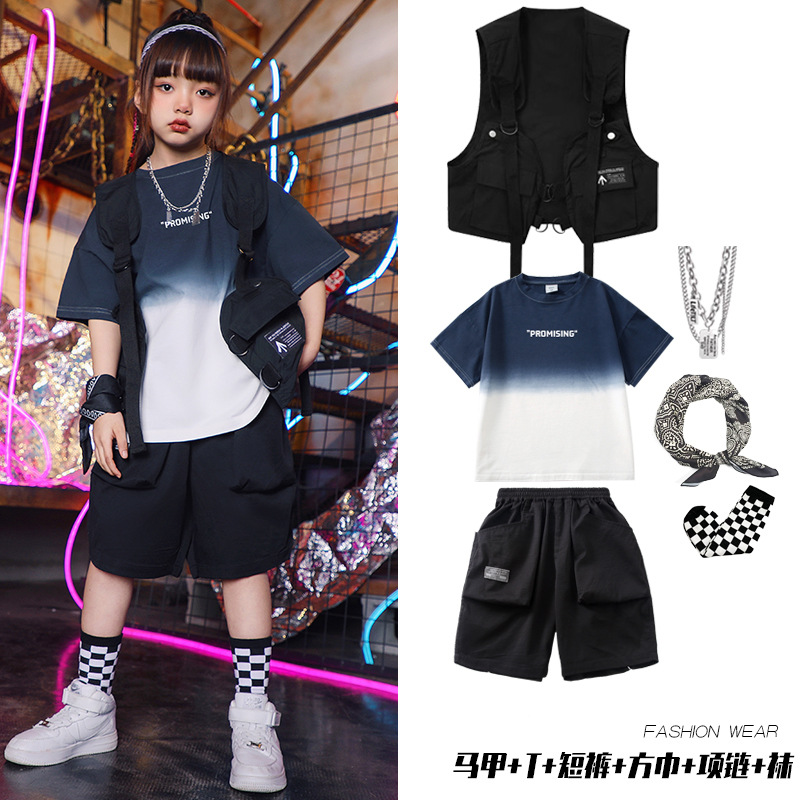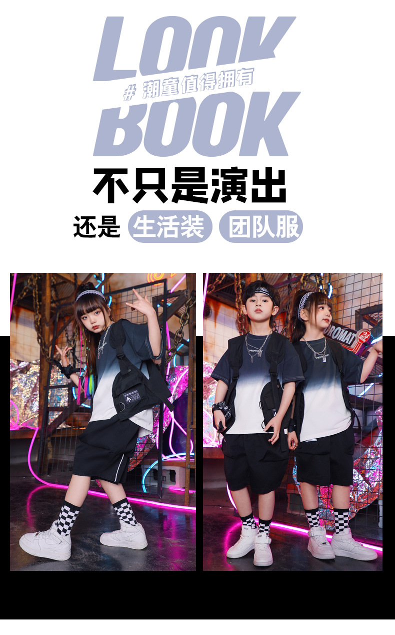 hiphop嘻哈架子鼓合唱演出服街舞儿童潮服爵士舞女童走秀服装男童