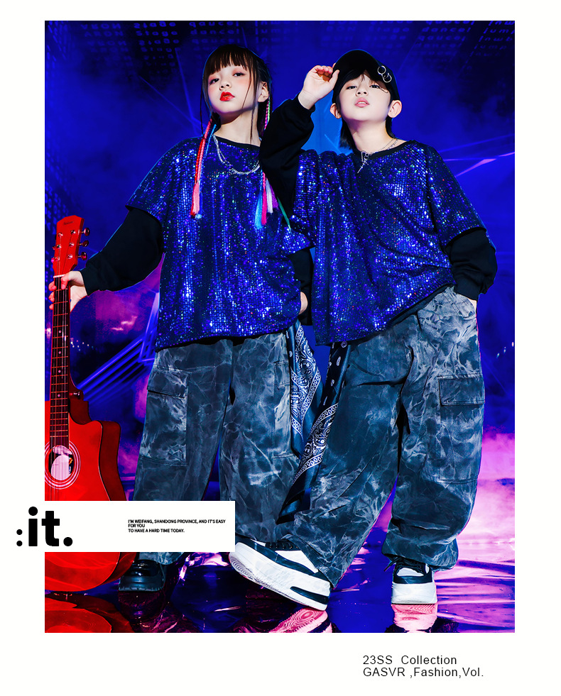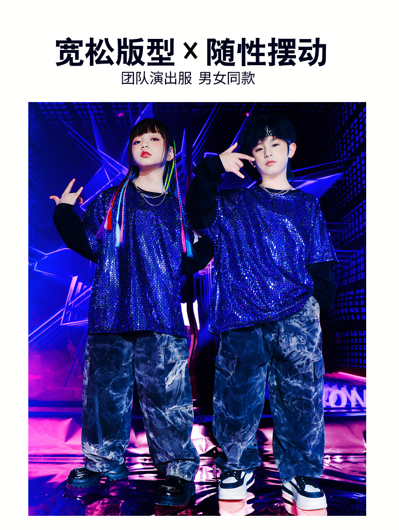 架子鼓演出服女童亮片爵士舞服装儿童街舞潮服男童嘻哈酷帅套装潮
