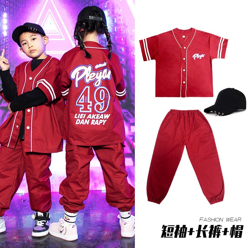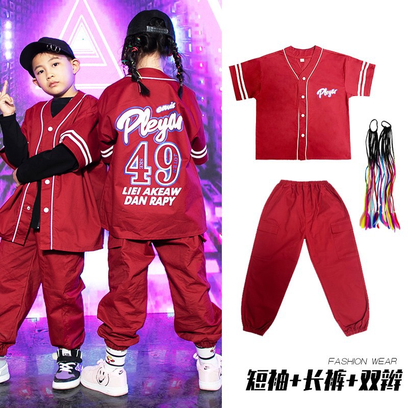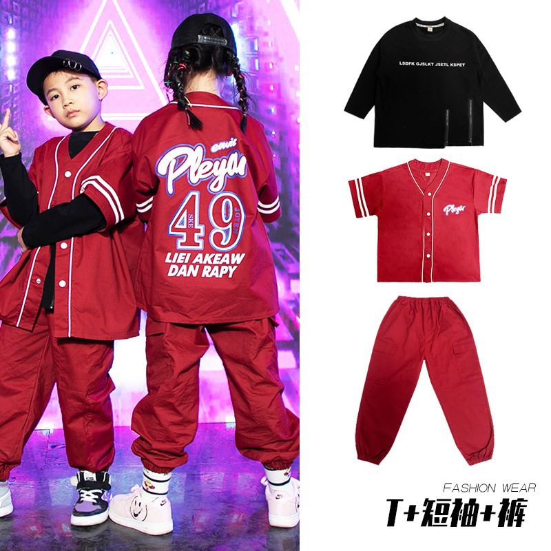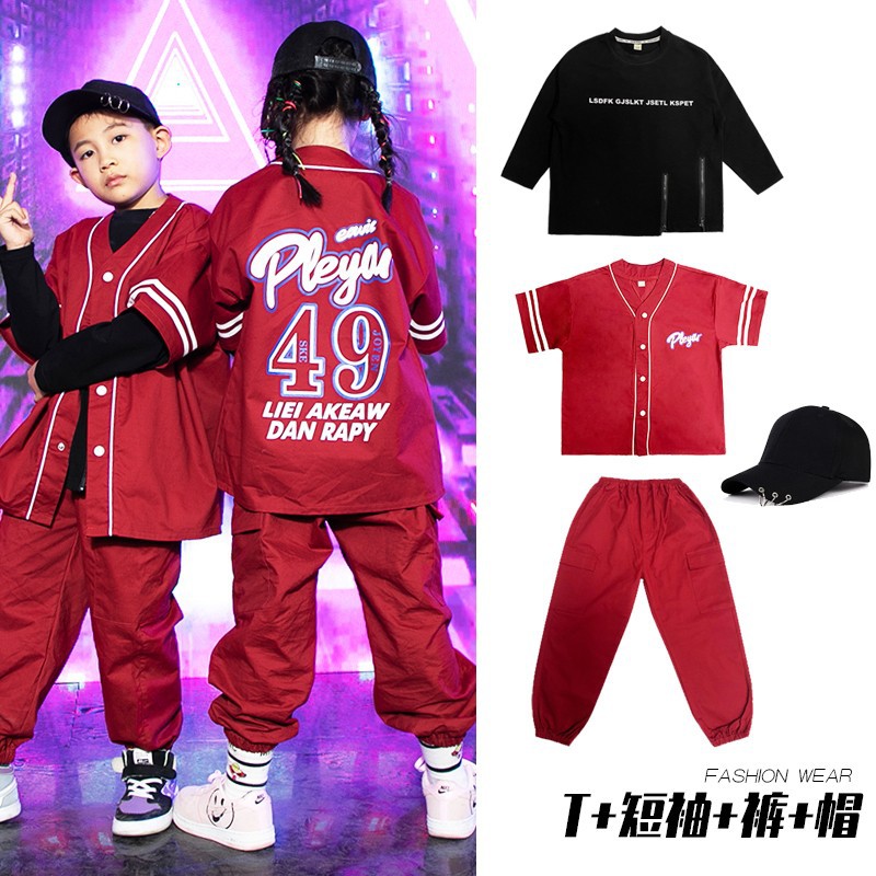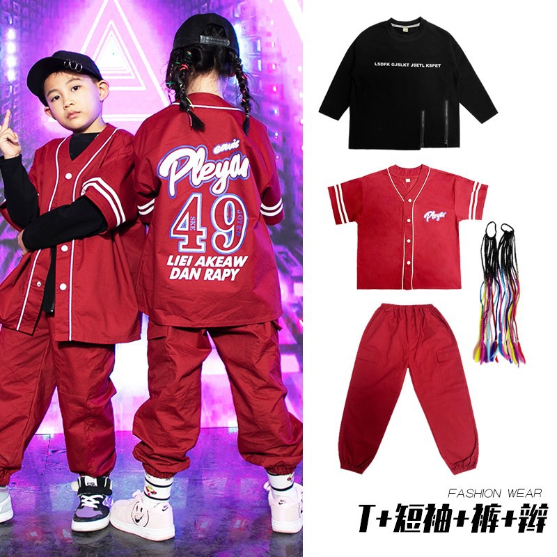 元旦儿童嘻哈街舞秋季走秀潮牌架子鼓套装女童爵士舞表演服三件套