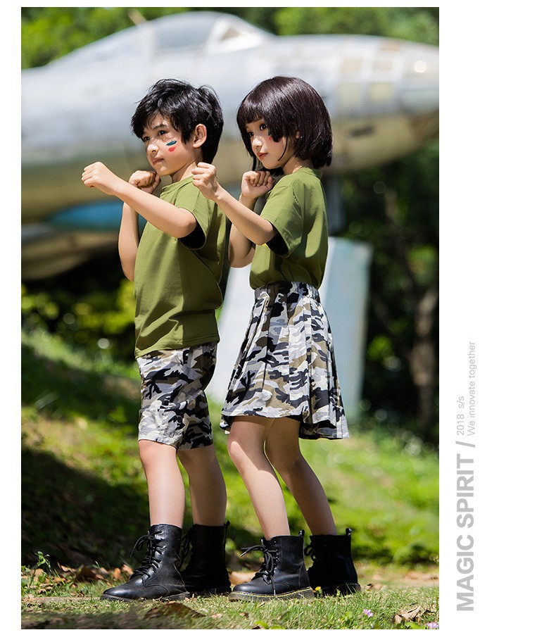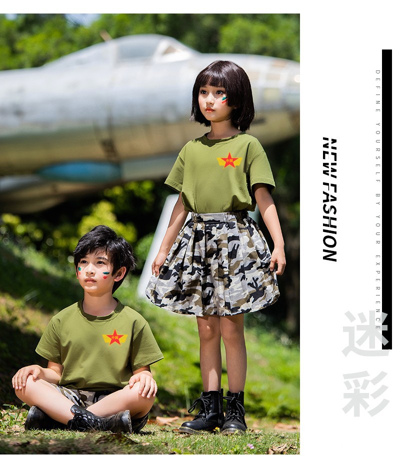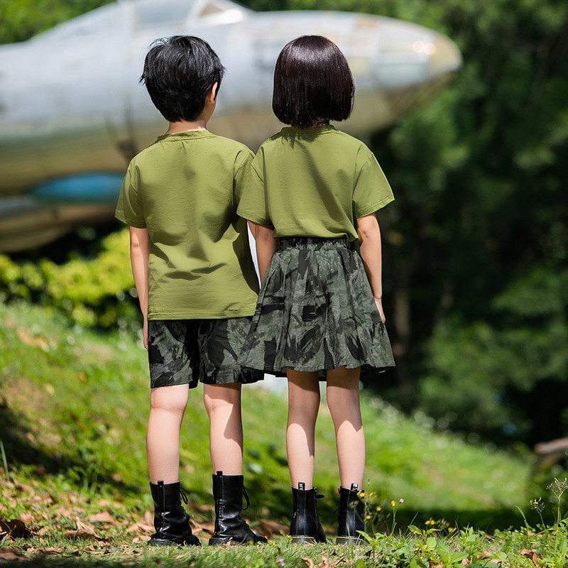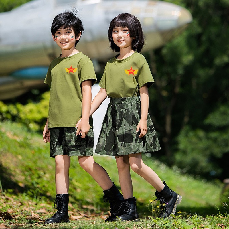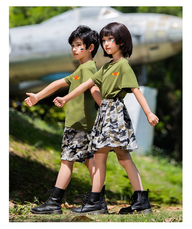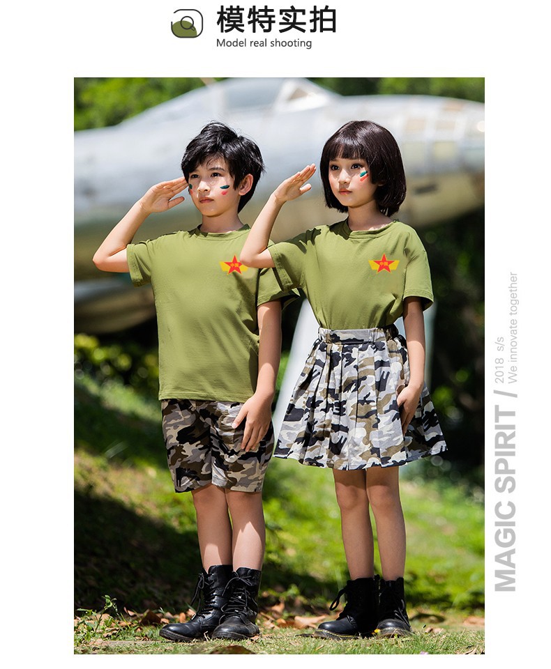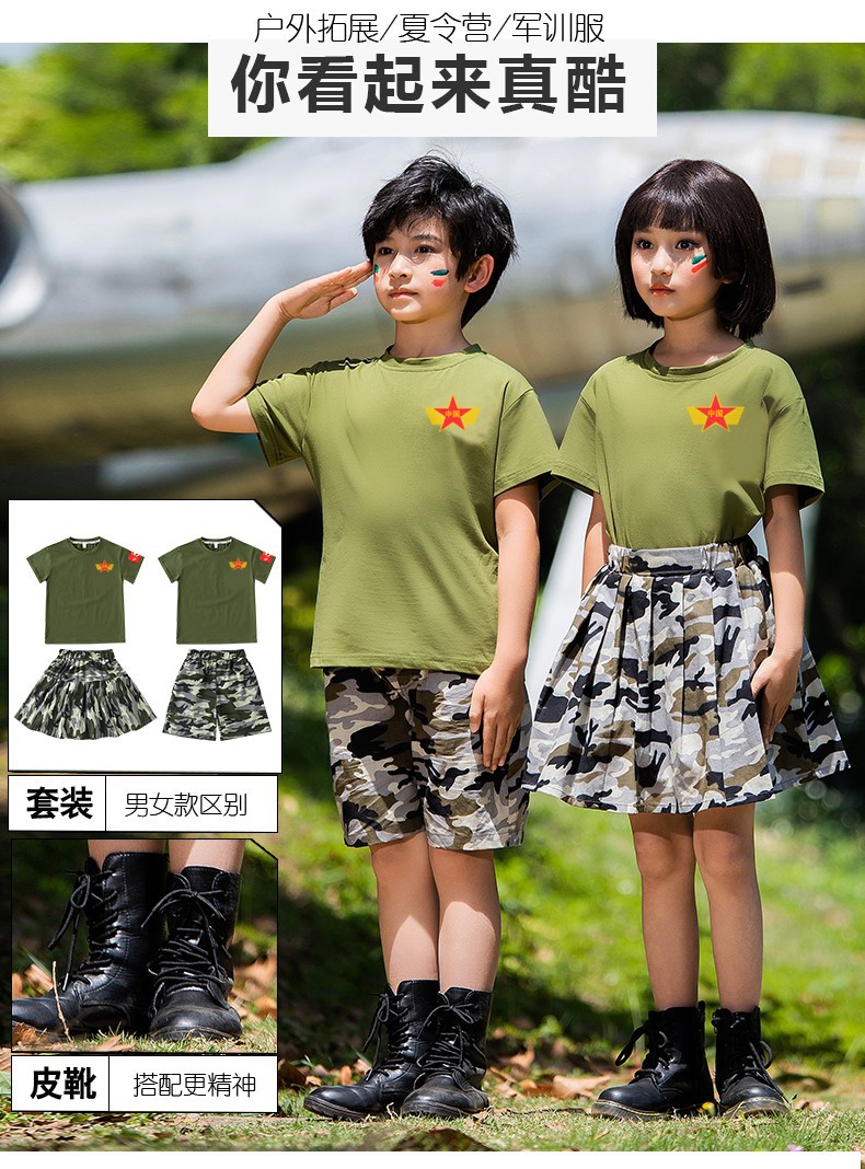 儿童军训服套装男女童夏令营服装夏季短袖练功潮服韩版迷彩演出服