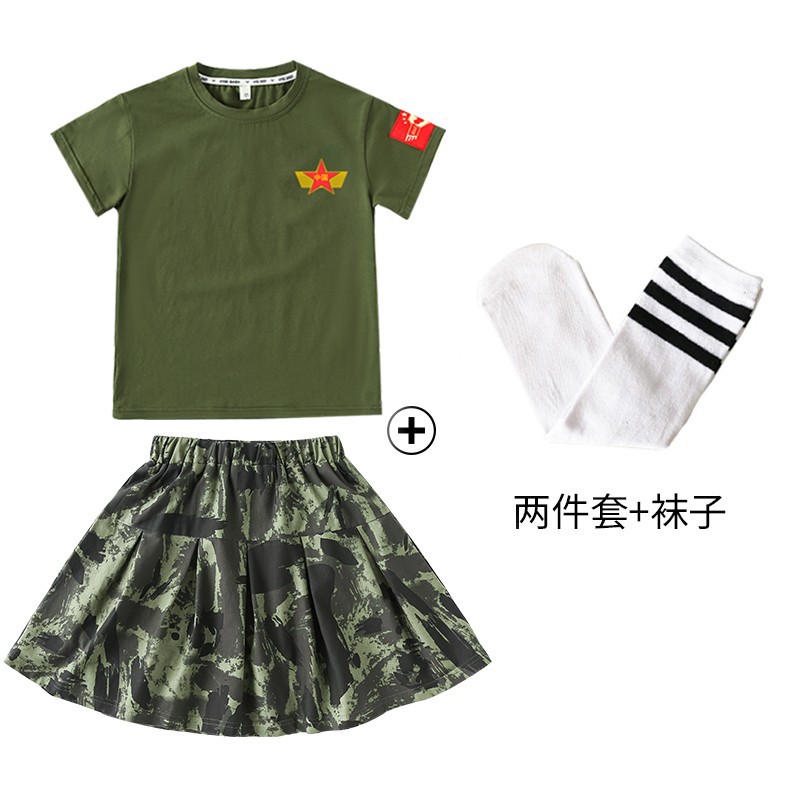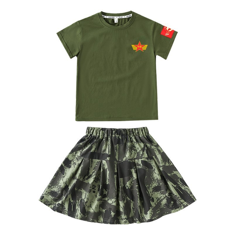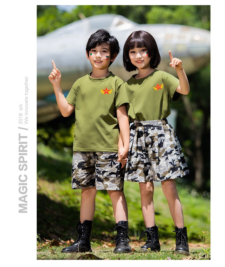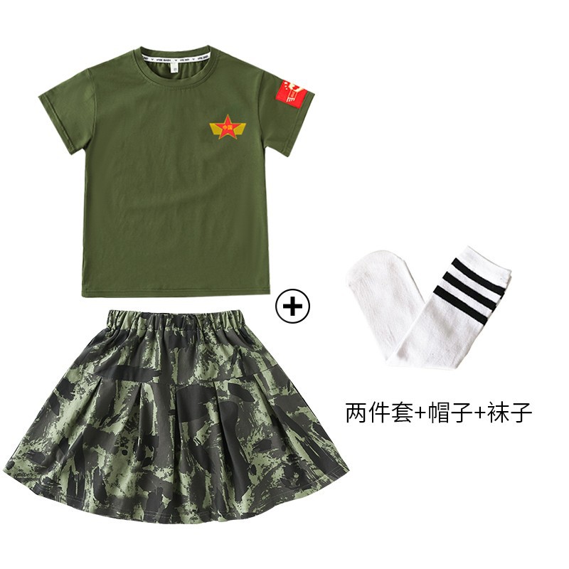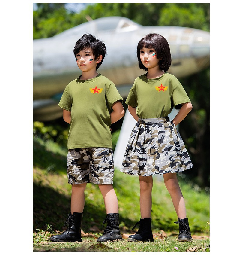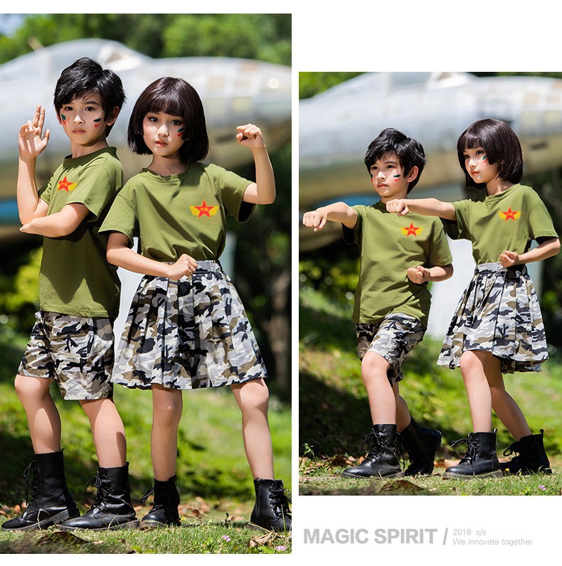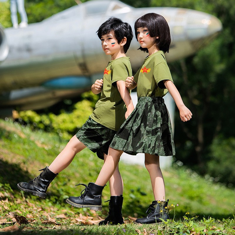 儿童军训服套装男女童夏令营服装夏季短袖练功潮服韩版迷彩演出服