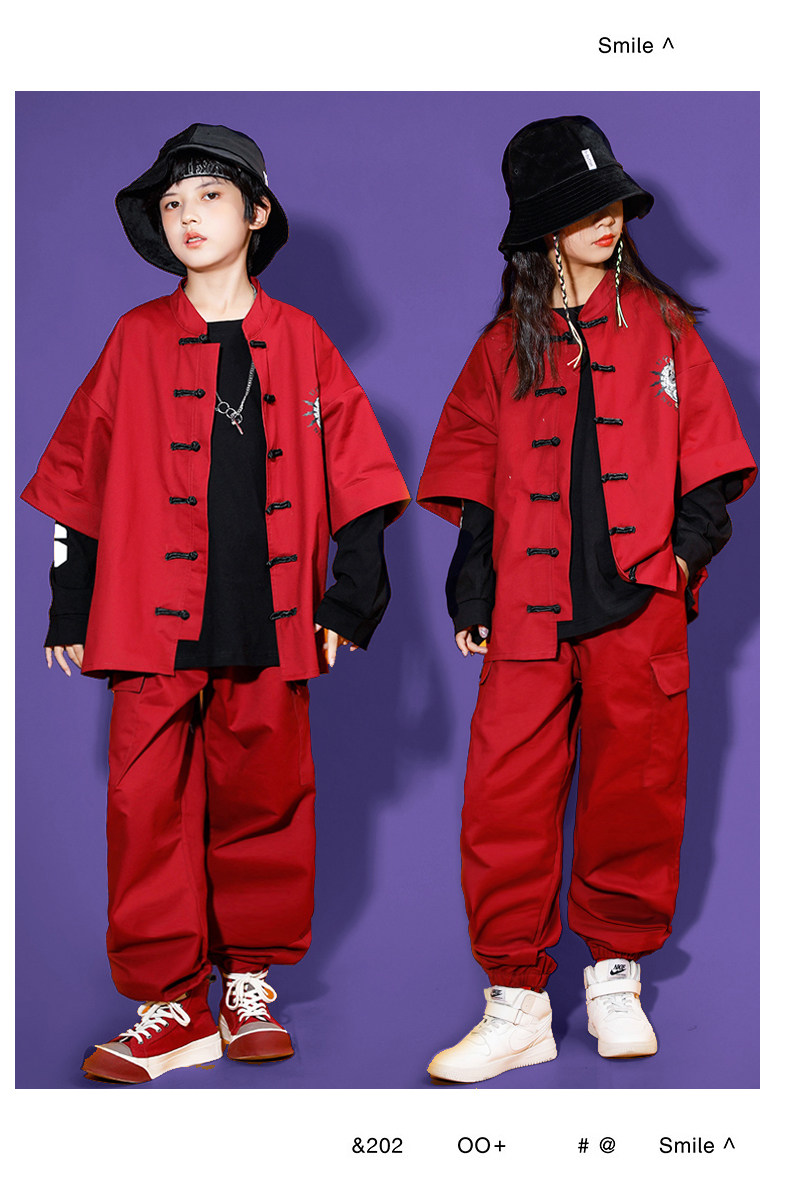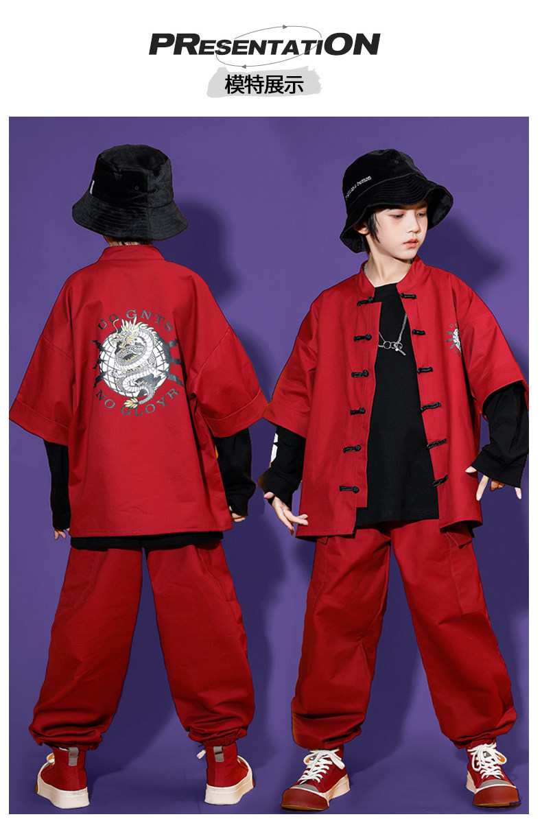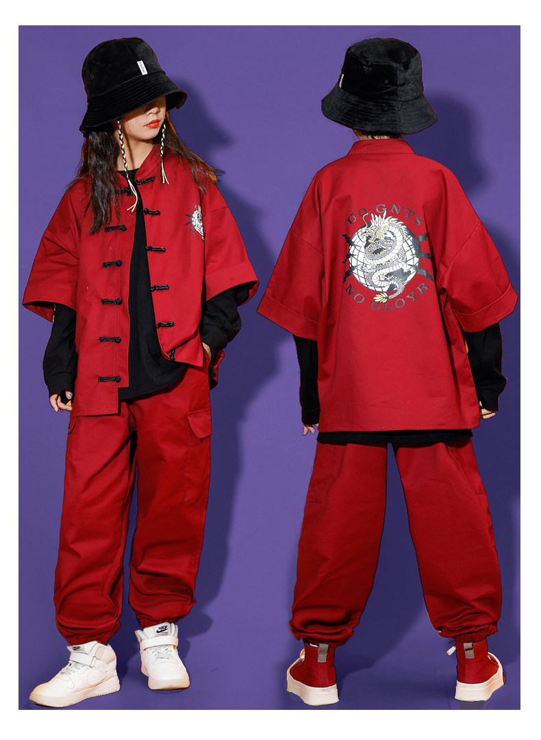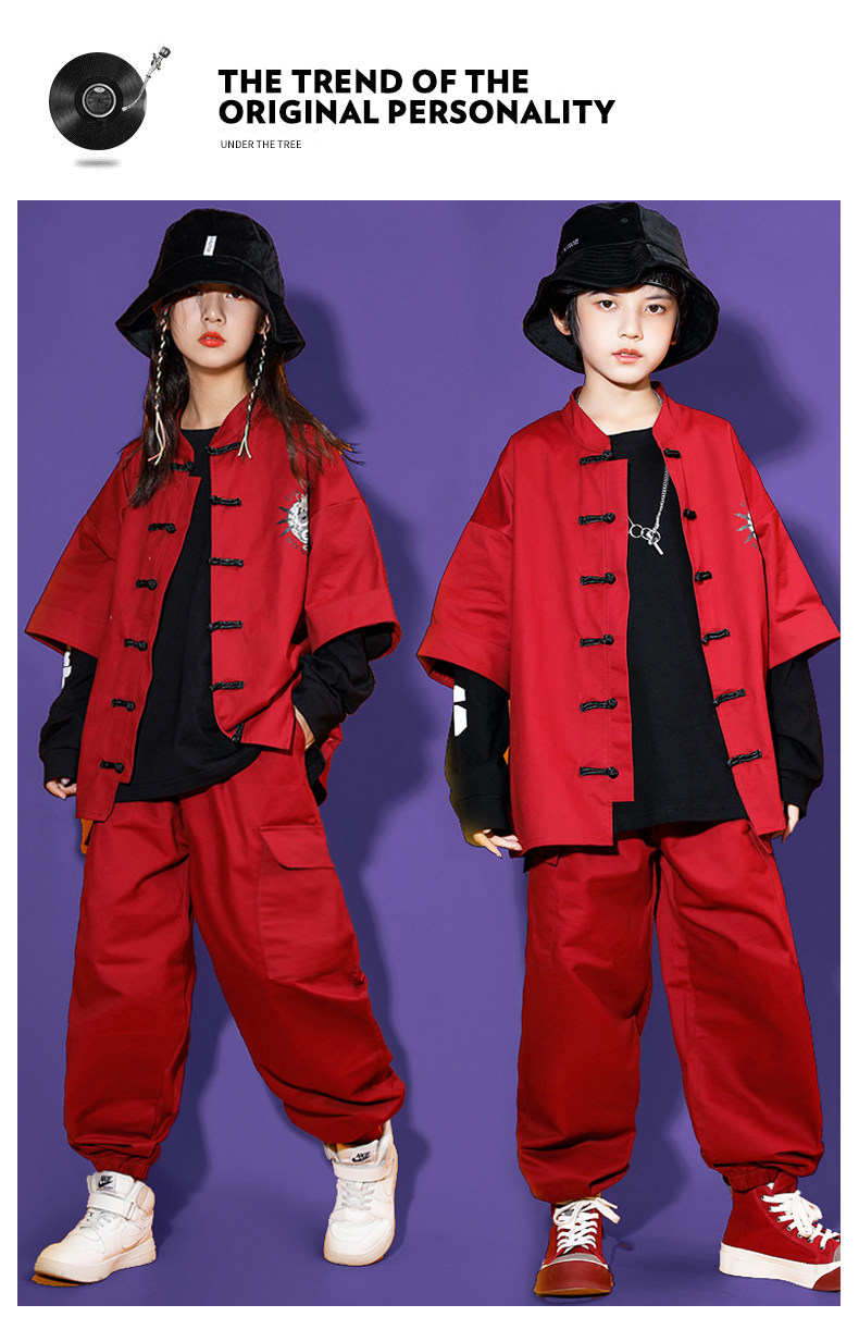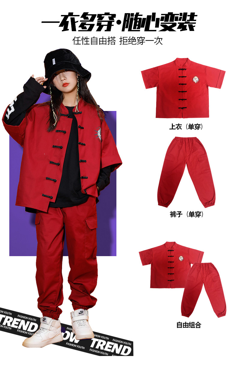 儿童演出服中国风街舞潮服男童嘻哈套装武术表演服女童走秀舞蹈服