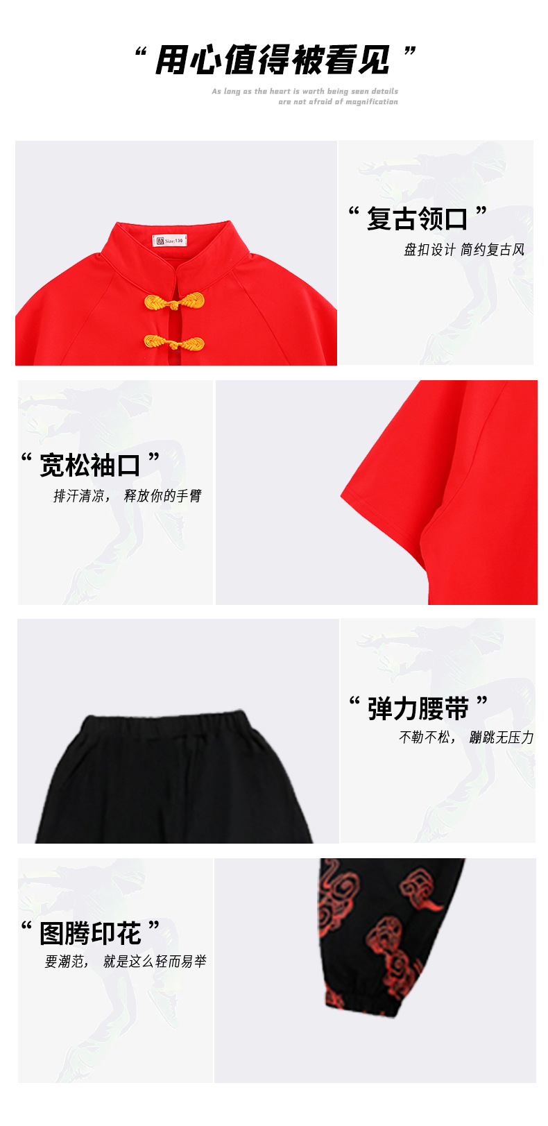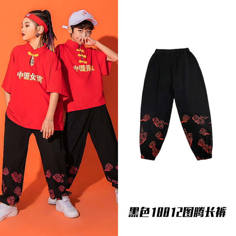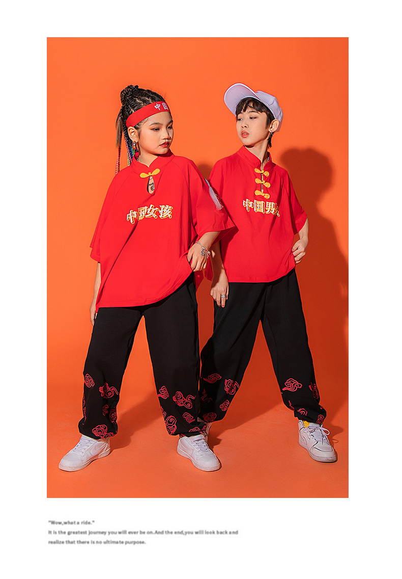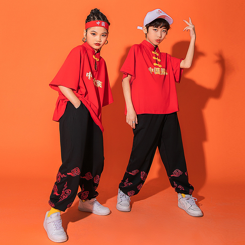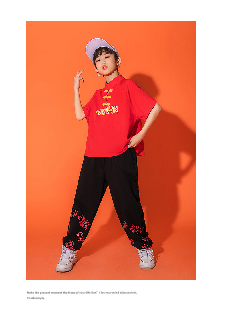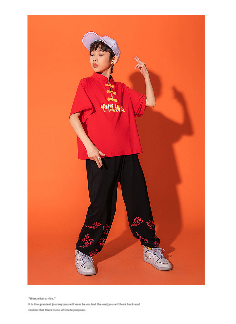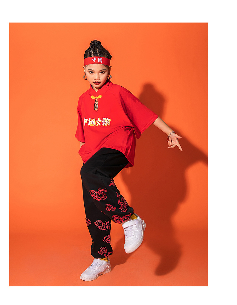 六一儿童中国风演出服小学生运动会服装红色嘻哈套装少儿街舞潮服