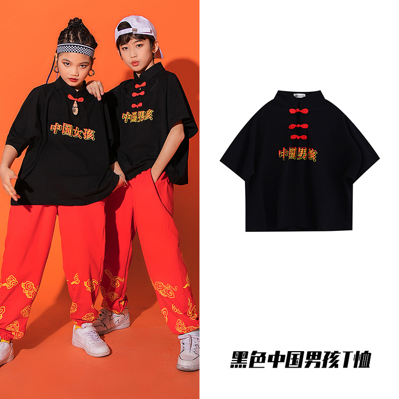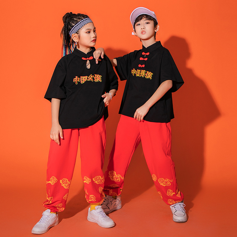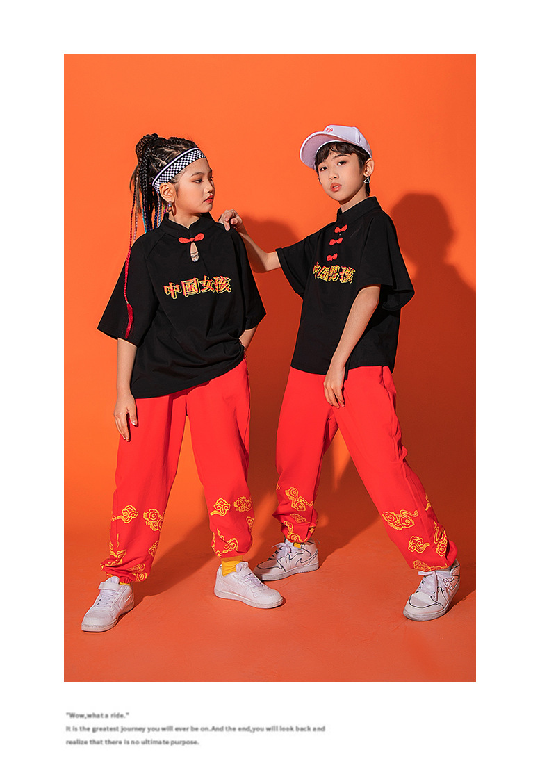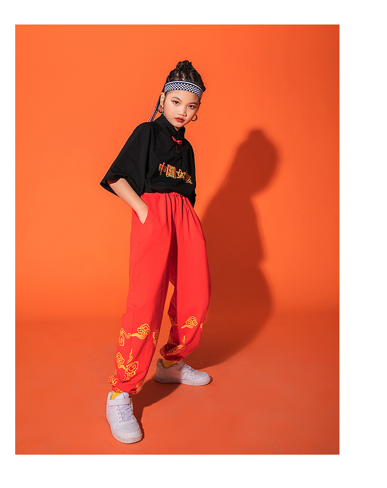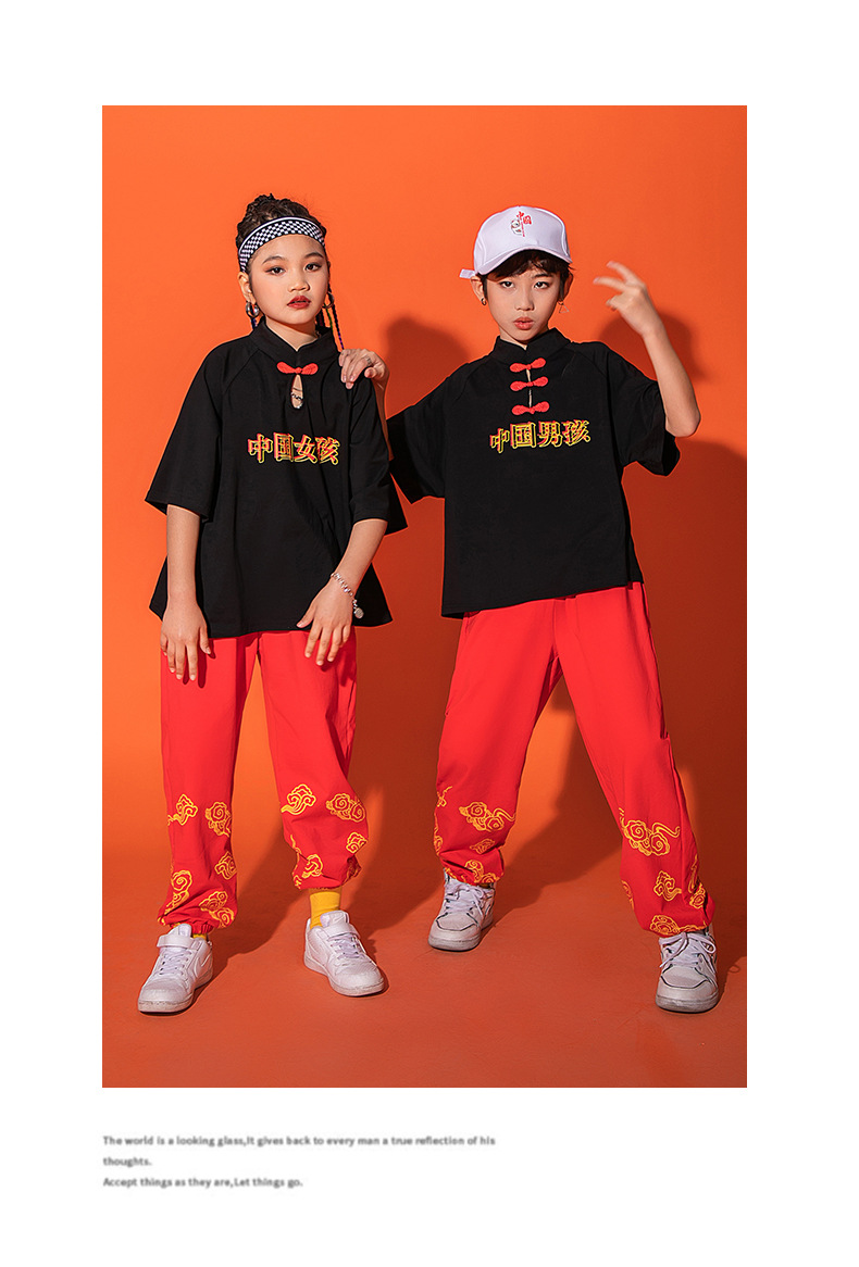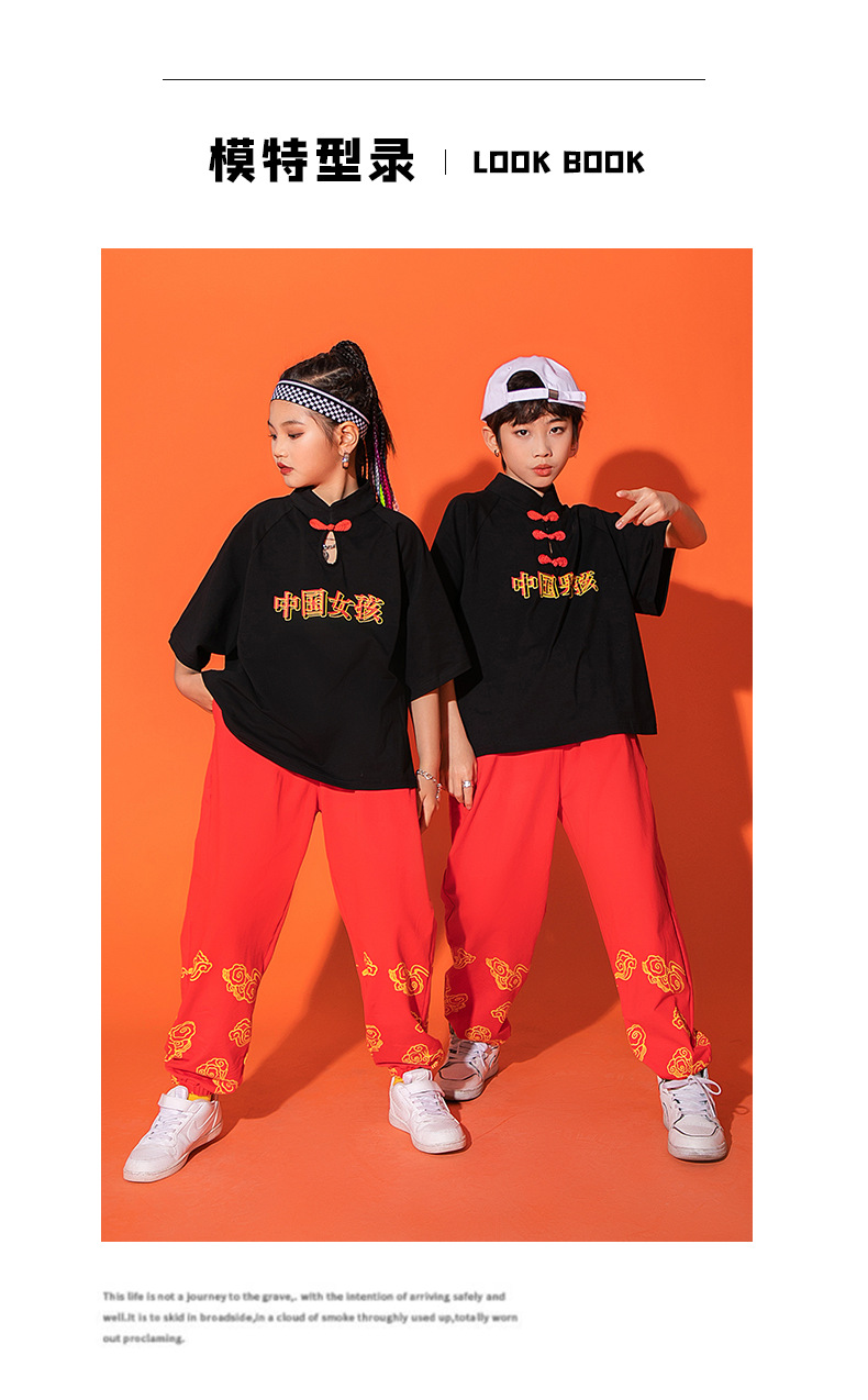 六一儿童中国风演出服小学生运动会服装红色嘻哈套装少儿街舞潮服