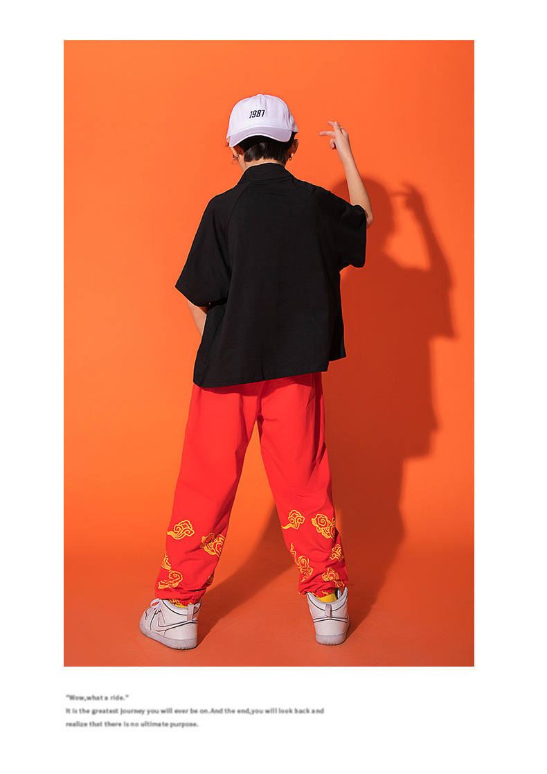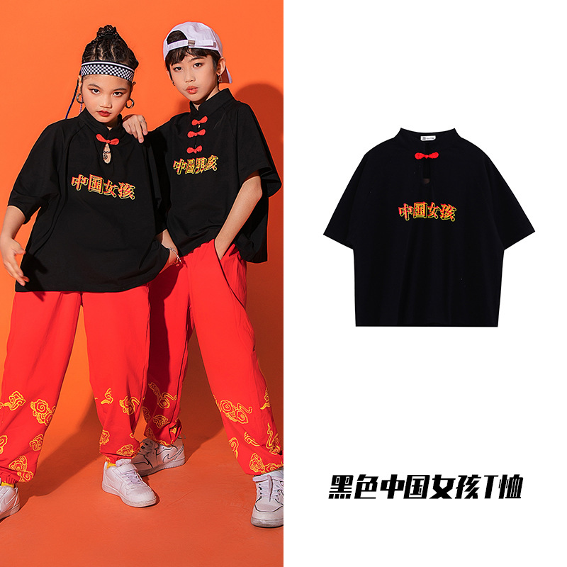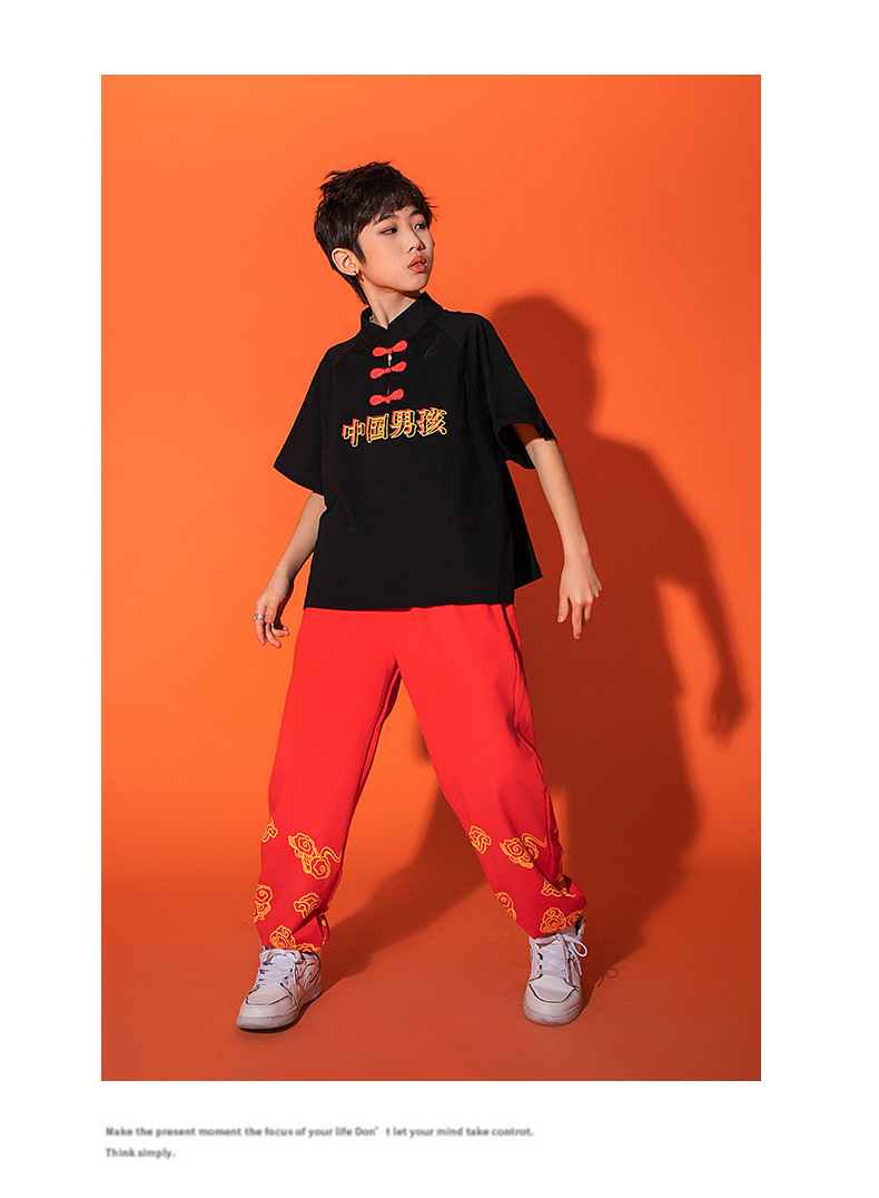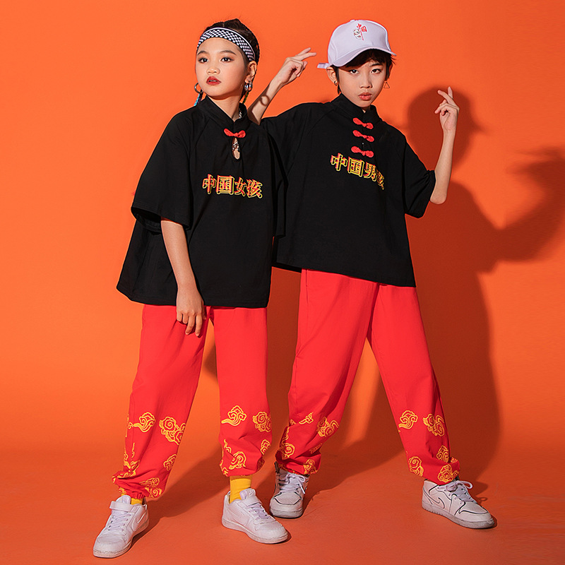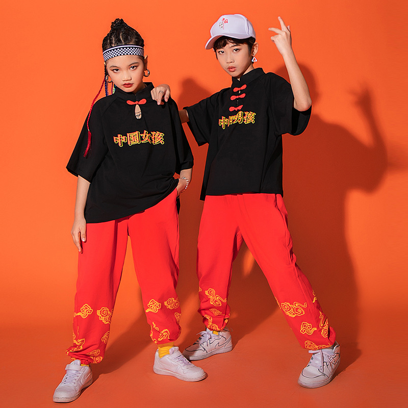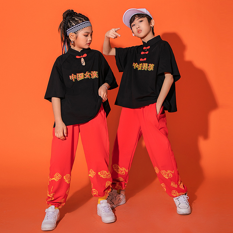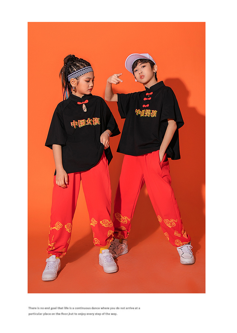 六一儿童中国风演出服小学生运动会服装红色嘻哈套装少儿街舞潮服