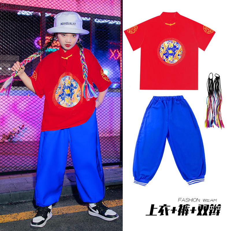 儿童啦啦队演出服女童汉服小学生运动会开幕式服装中国风比赛班服