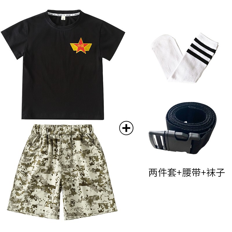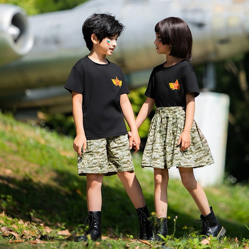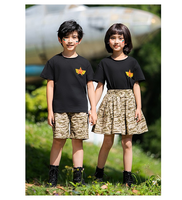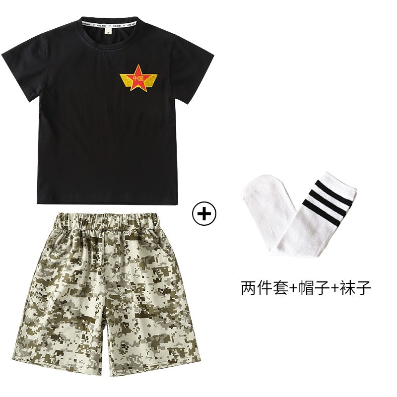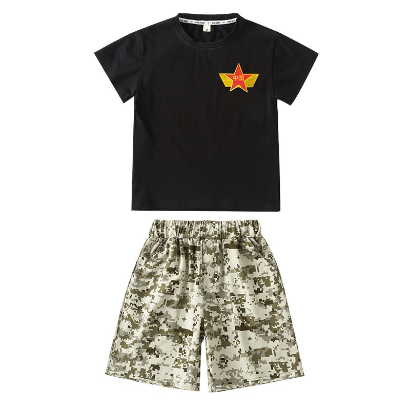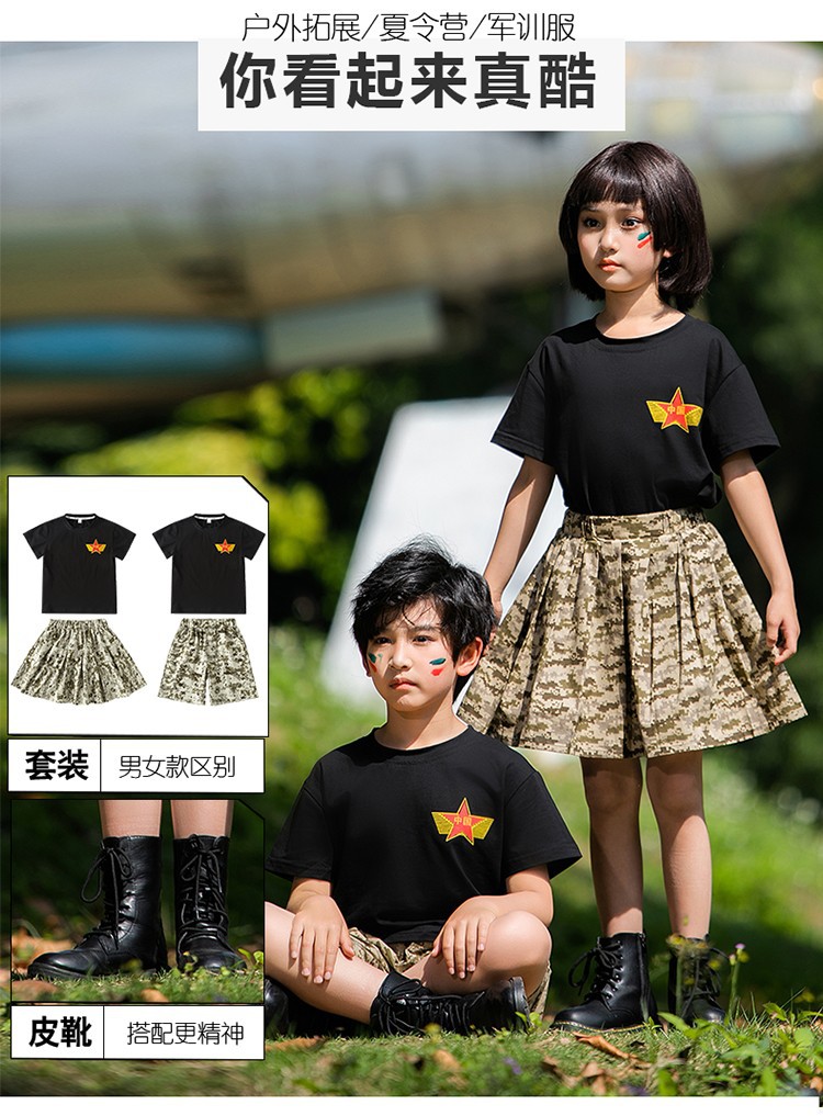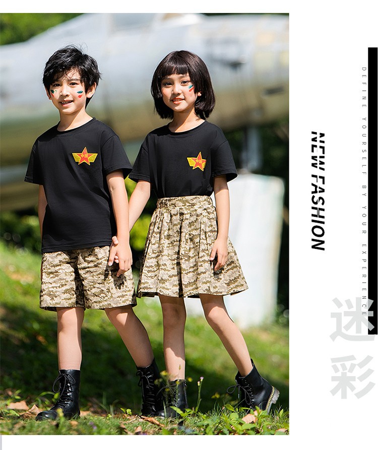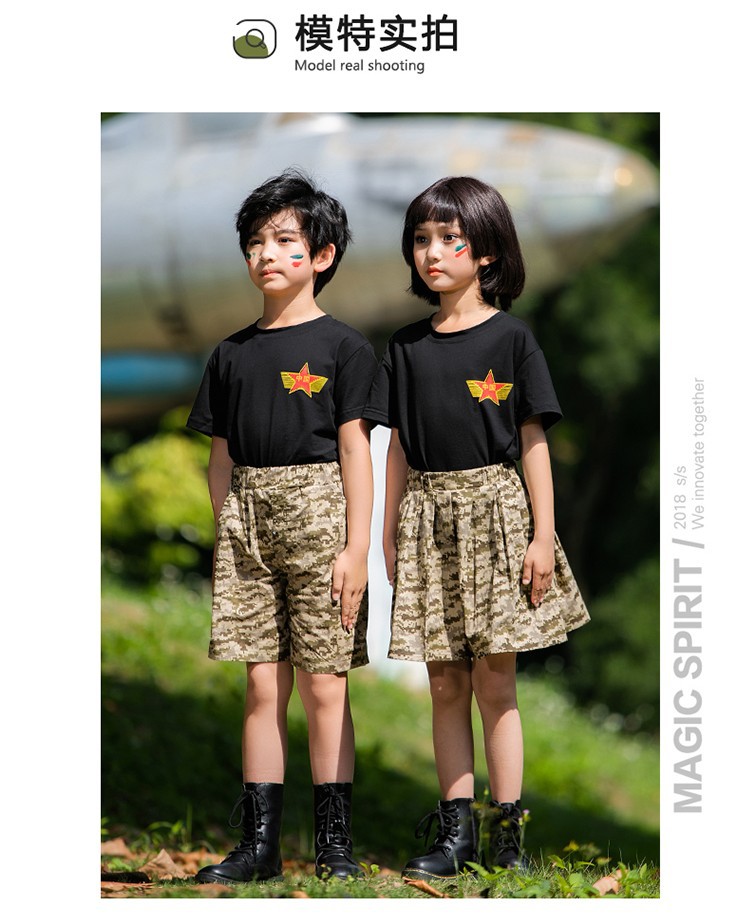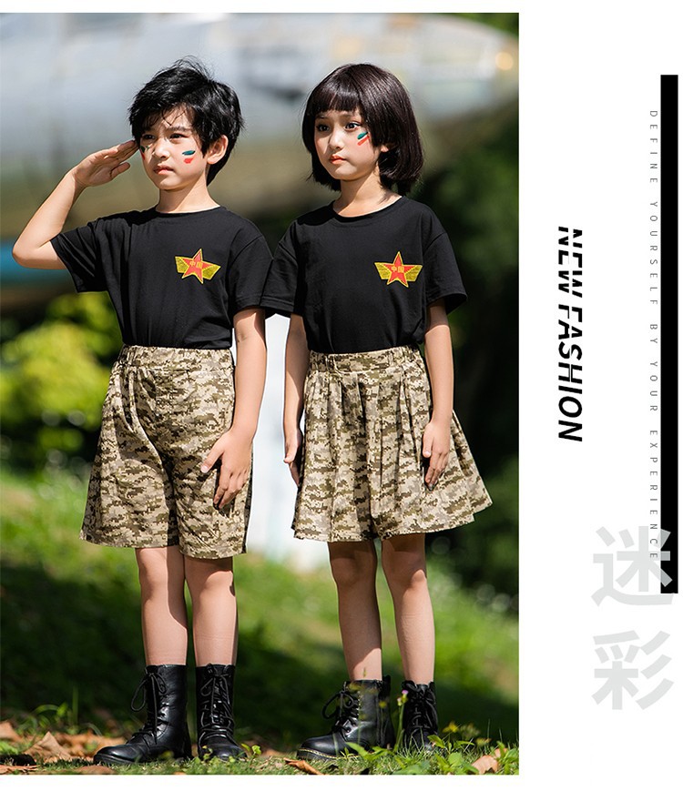 小学生户外军训迷彩套装儿童夏令营酷帅潮服男童运动会服装演出服