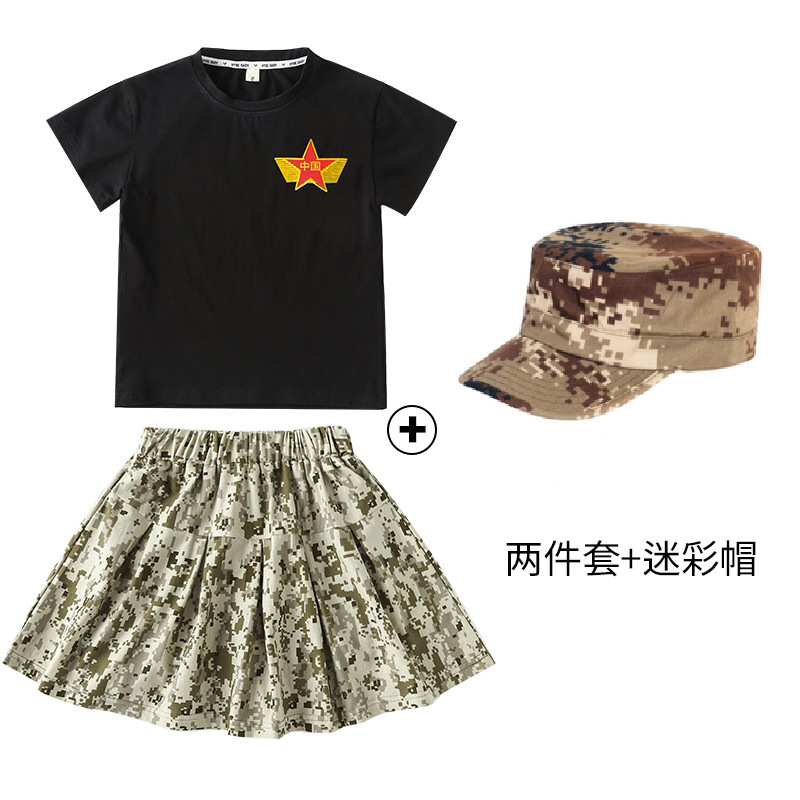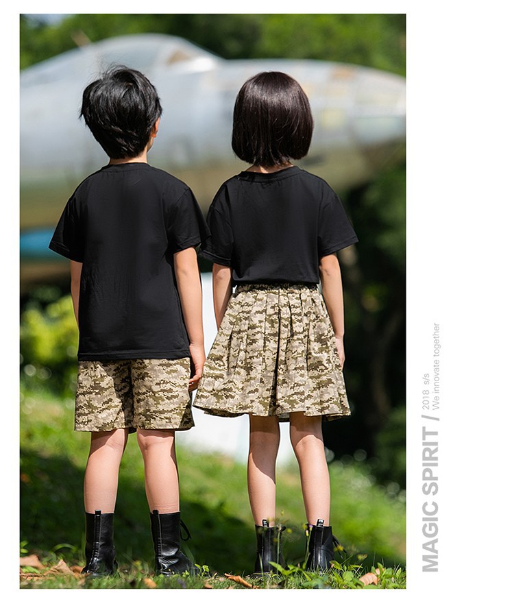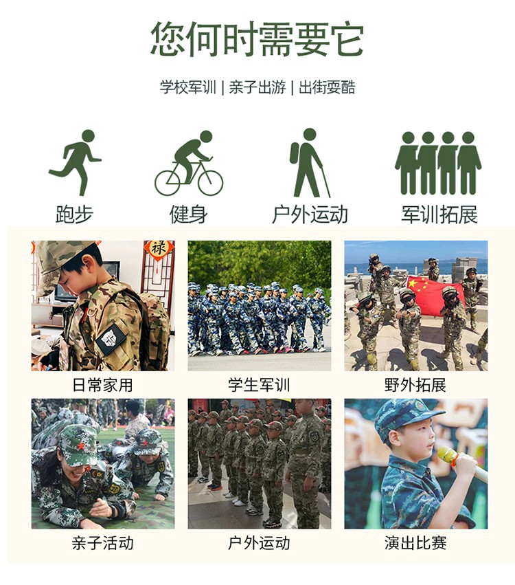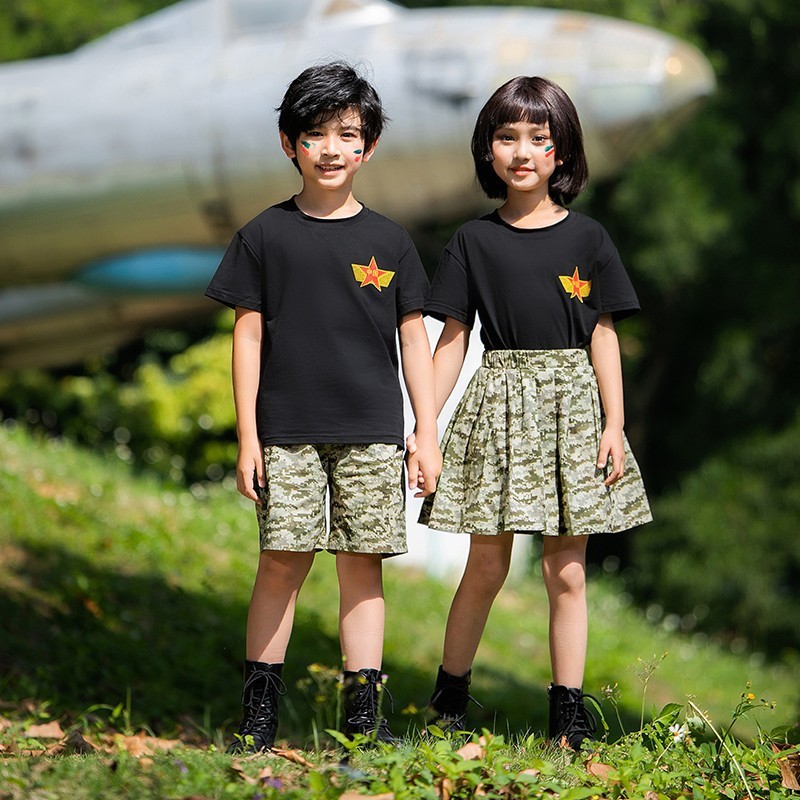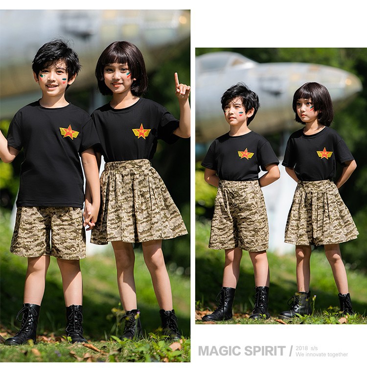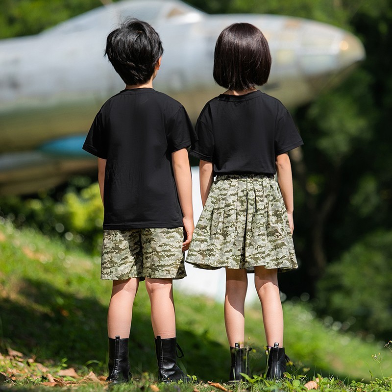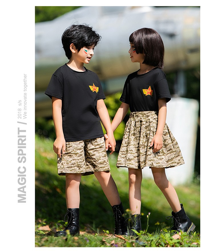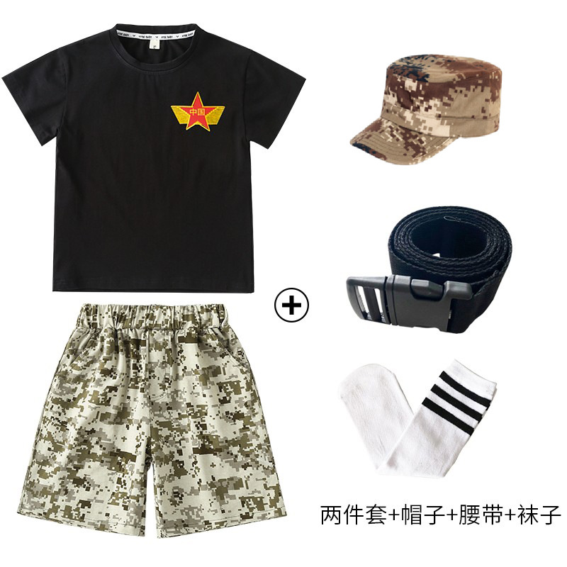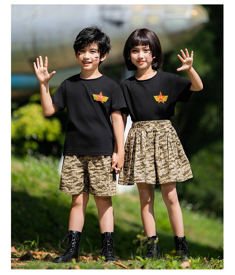 小学生户外军训迷彩套装儿童夏令营酷帅潮服男童运动会服装演出服