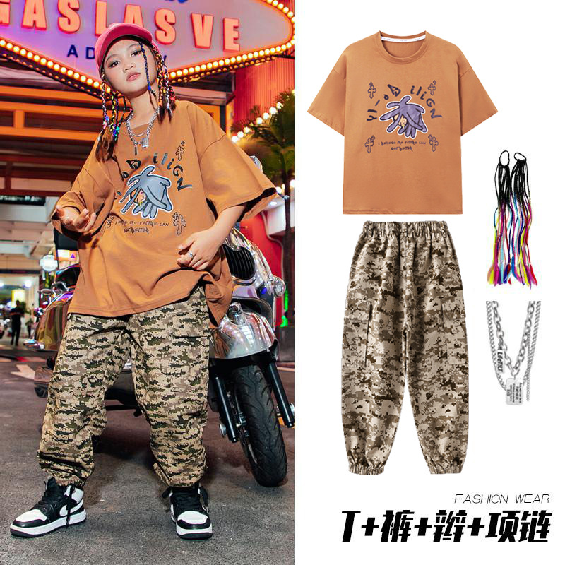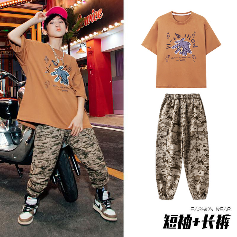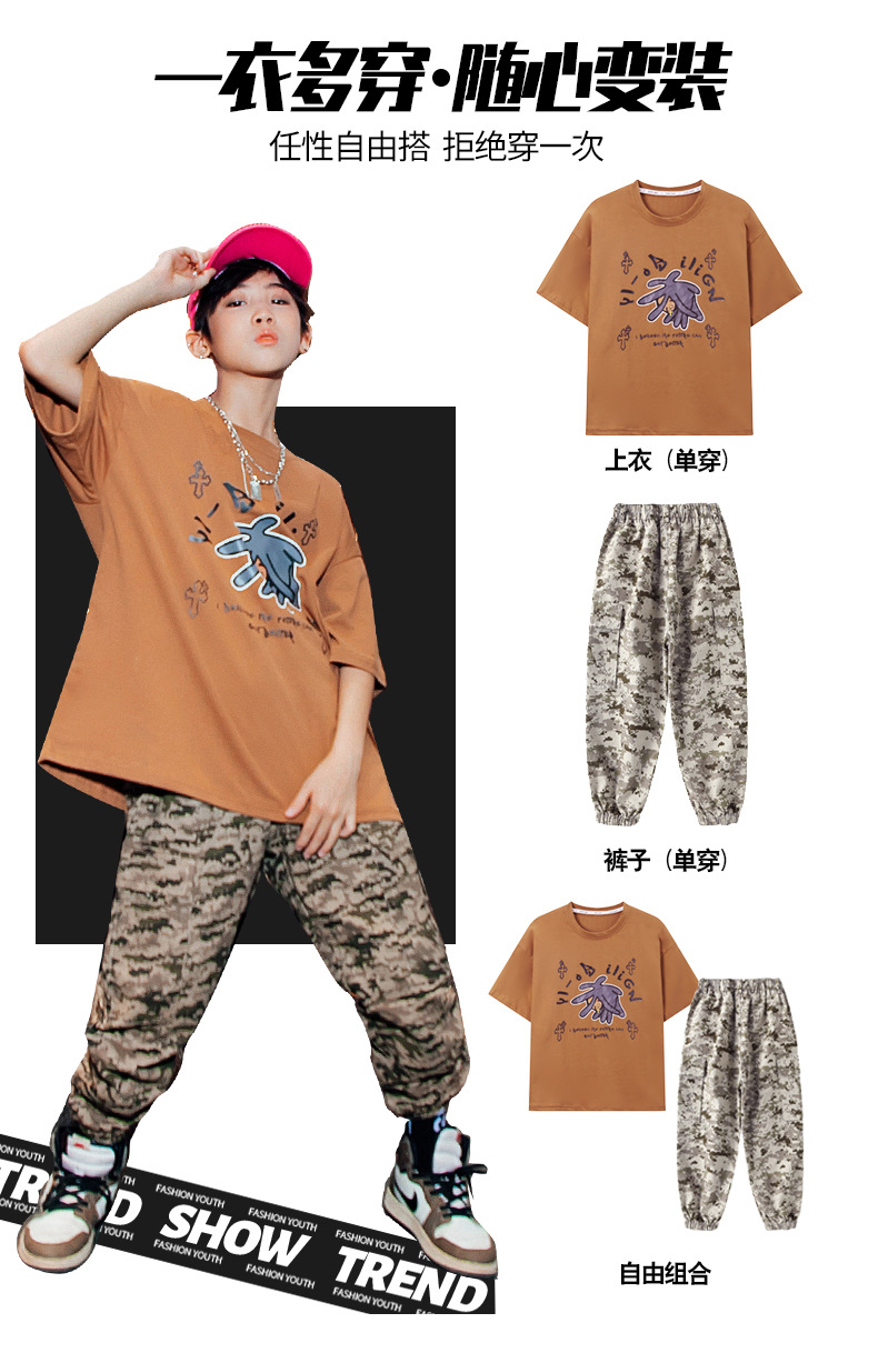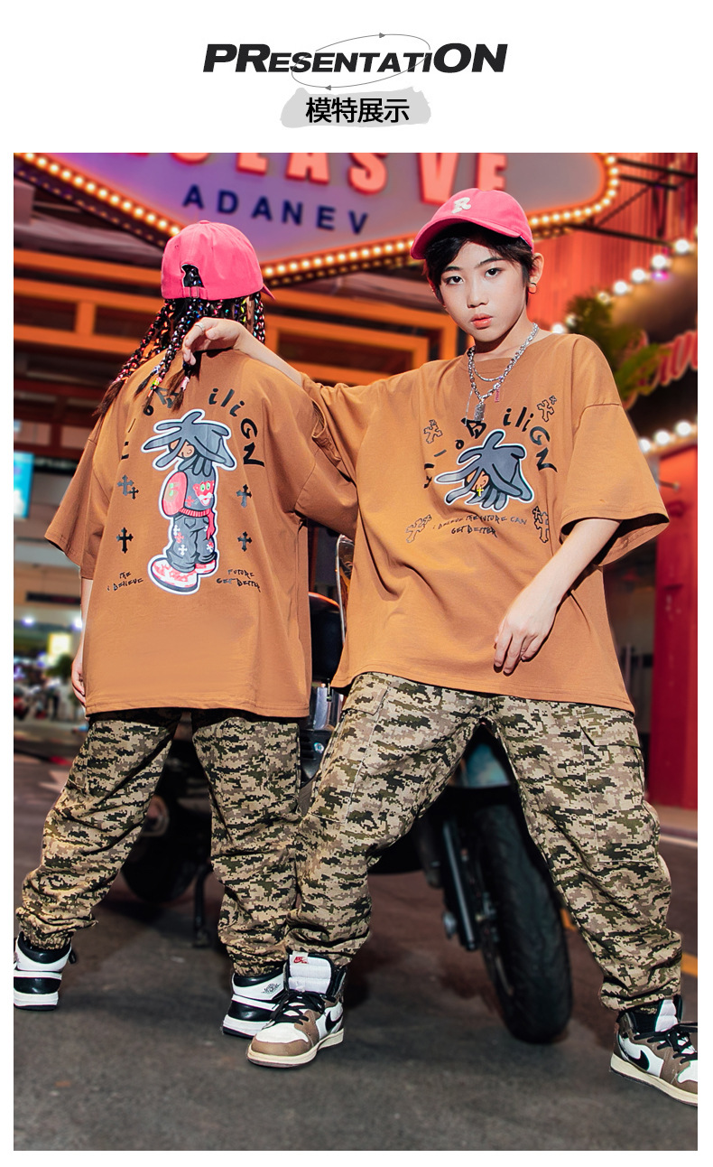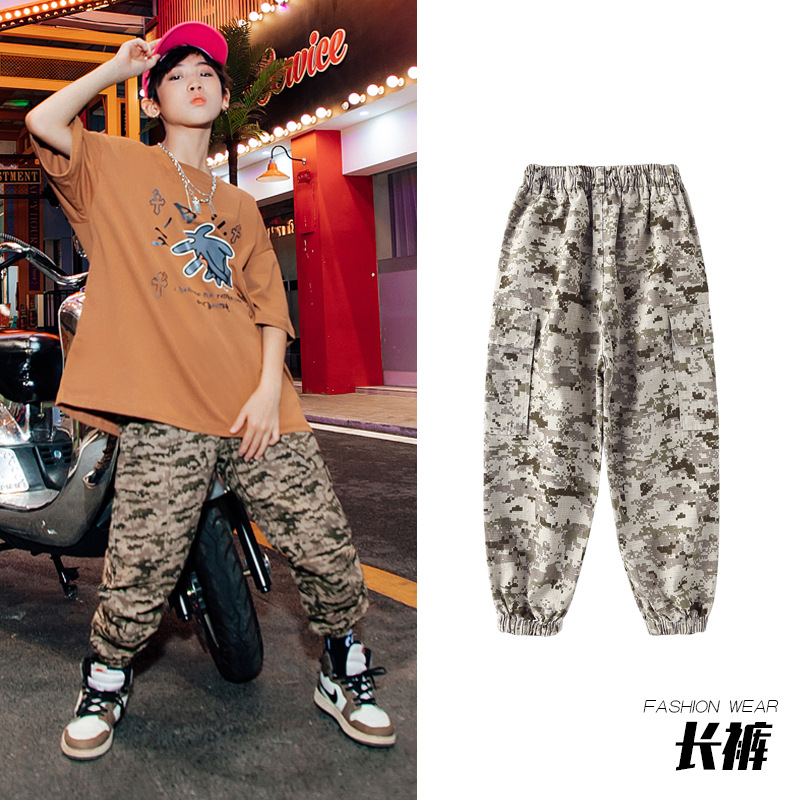 儿童嘻哈潮服少儿街舞套装男童迷彩服装女童hiphop炸街走秀演出服