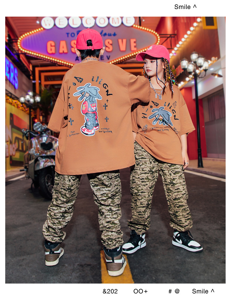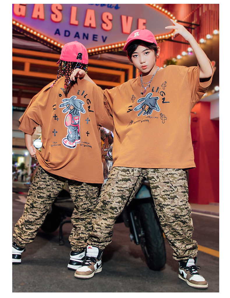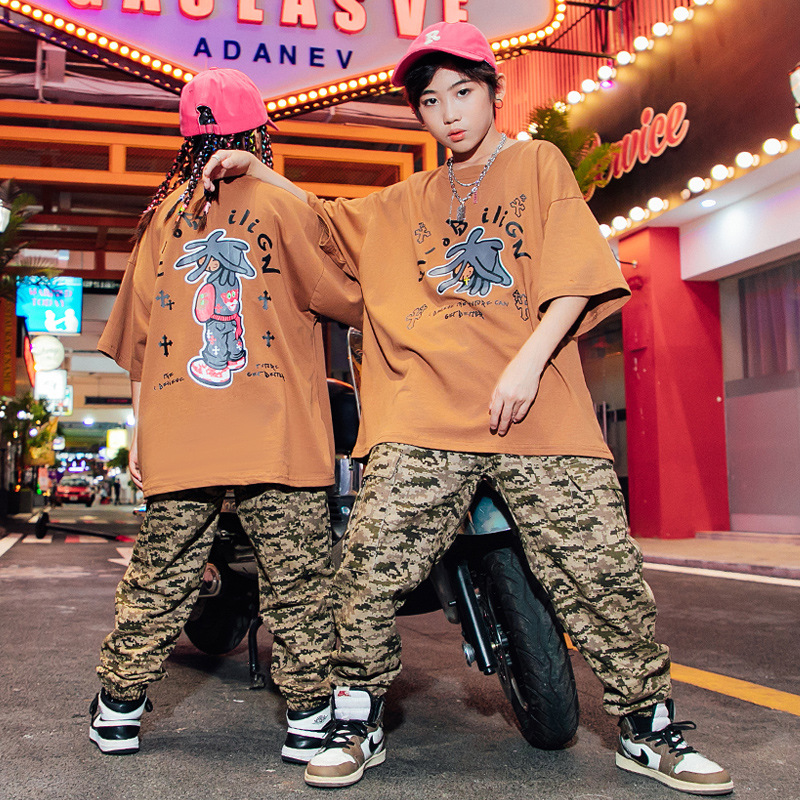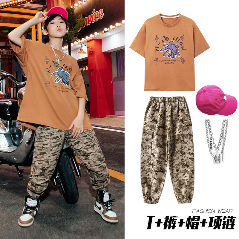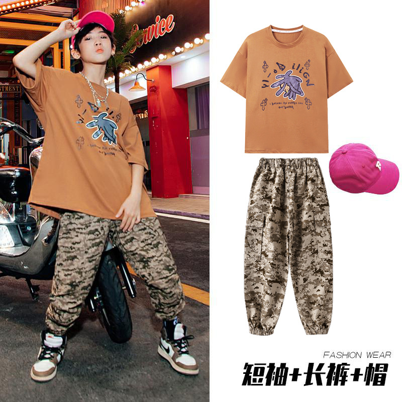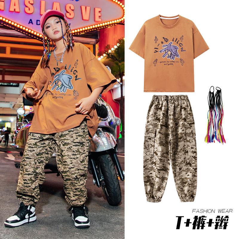 儿童嘻哈潮服少儿街舞套装男童迷彩服装女童hiphop炸街走秀演出服