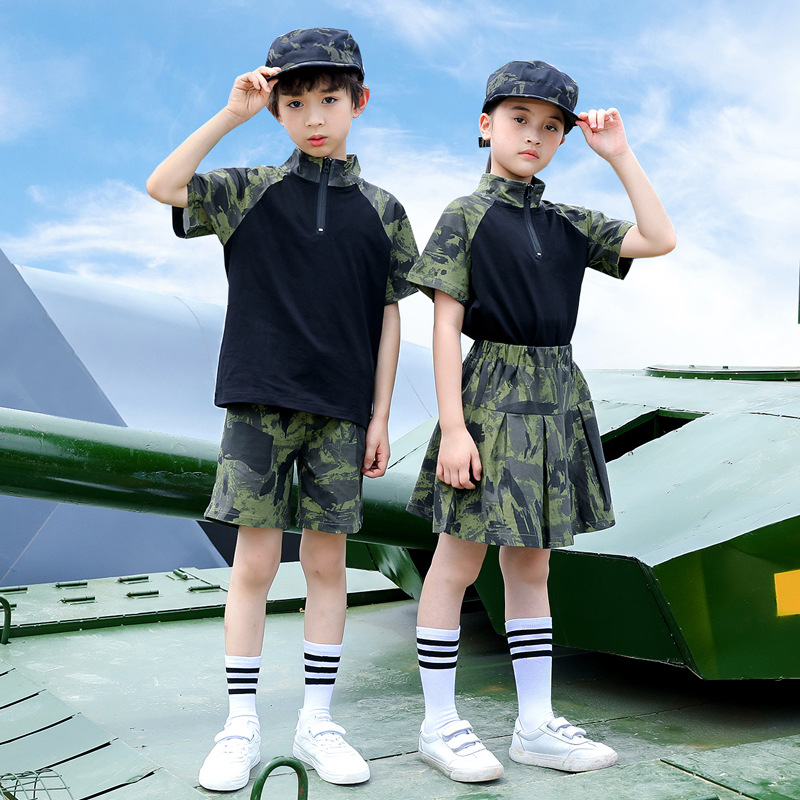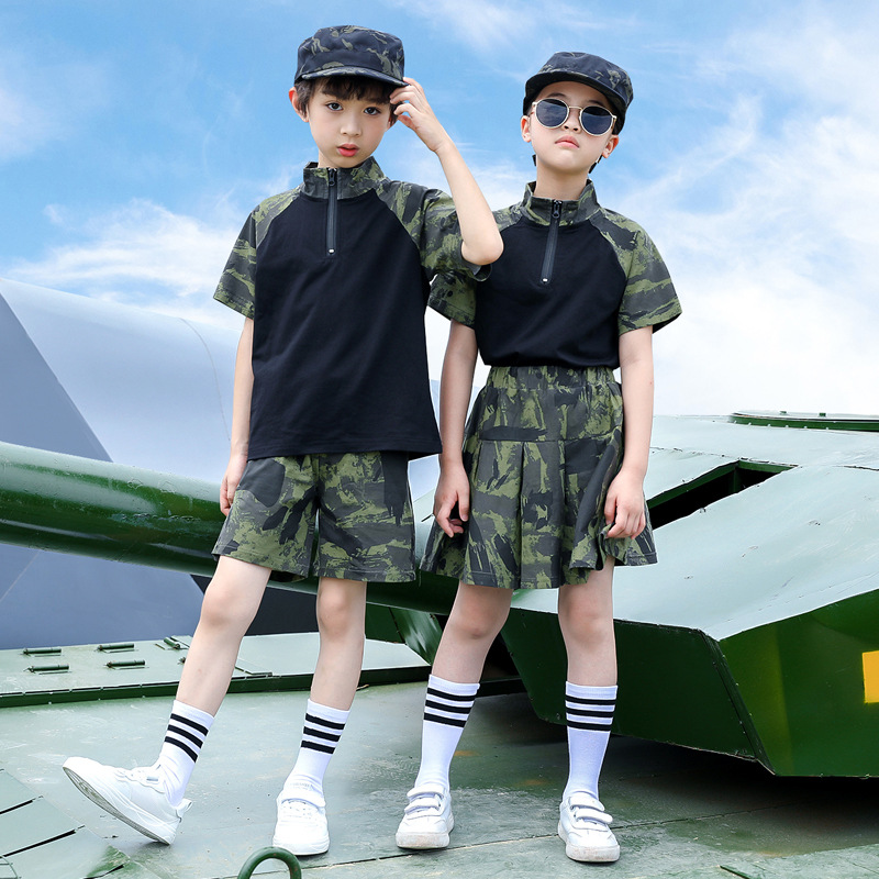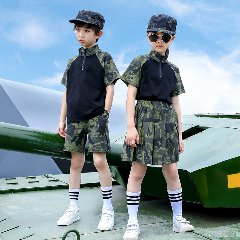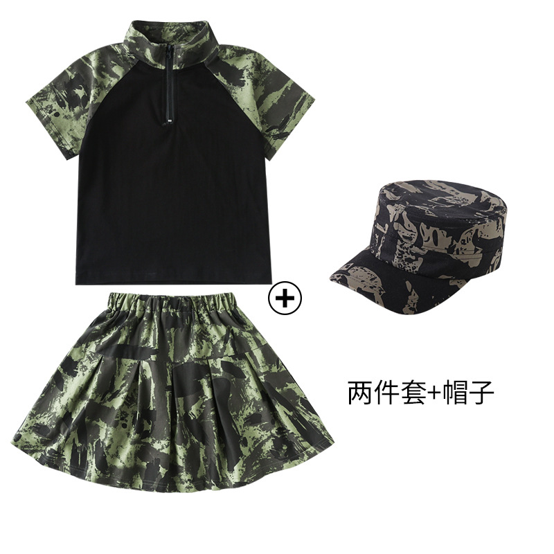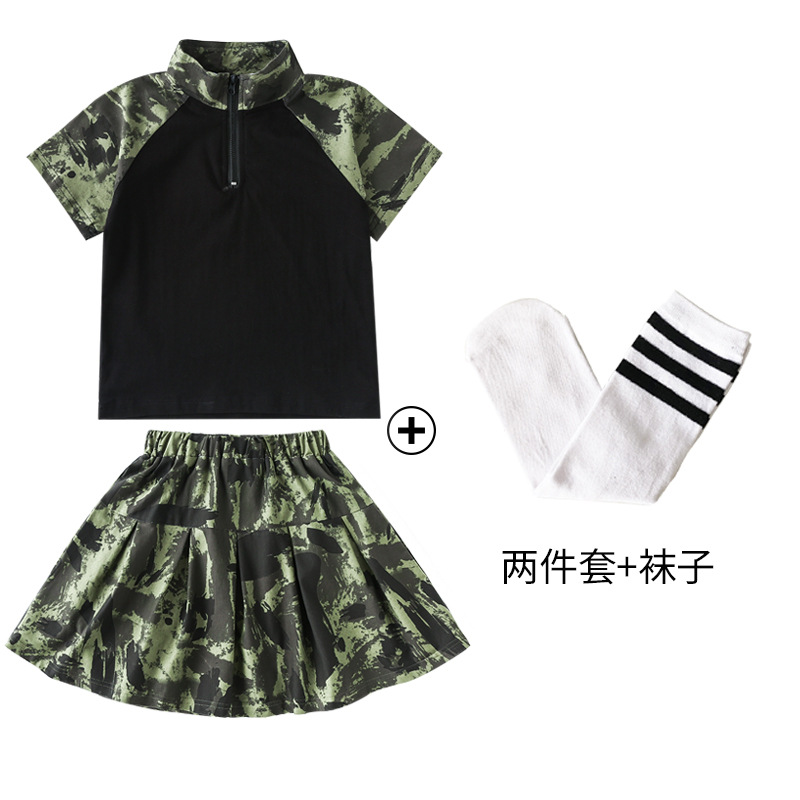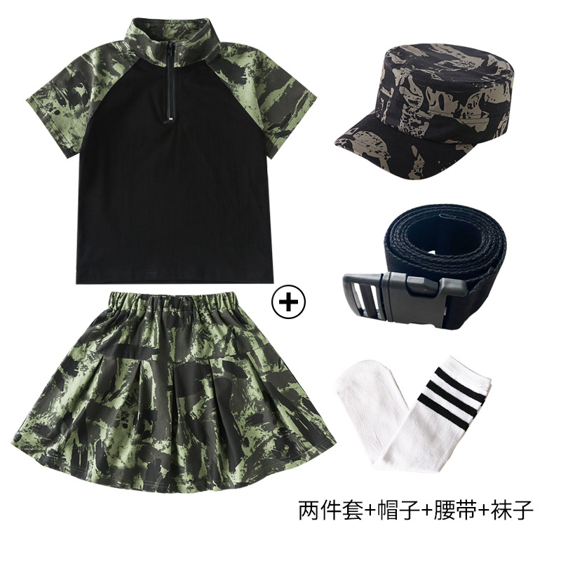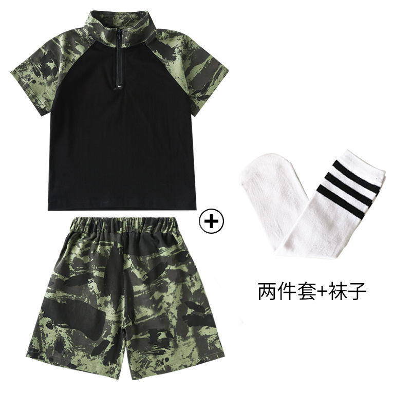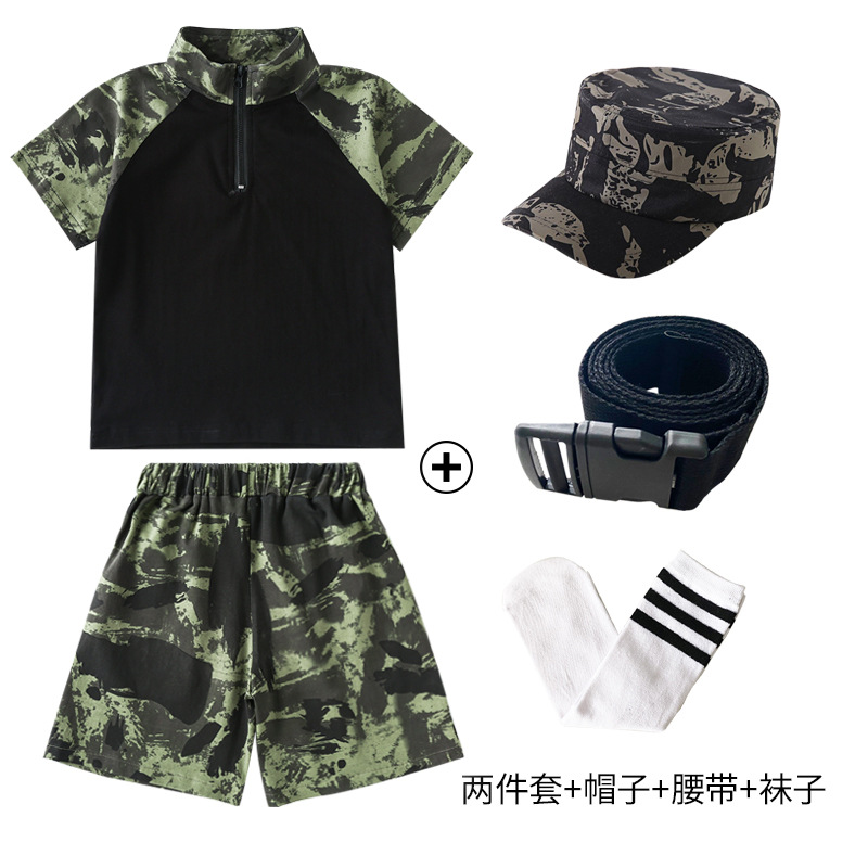 儿童街舞潮服hiphop男童迷彩套装小学生运动会服装女童爵士演出服