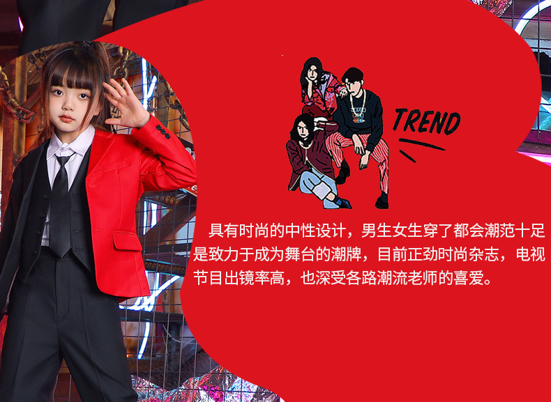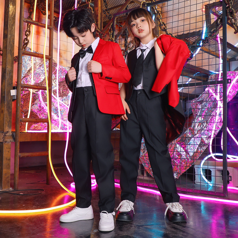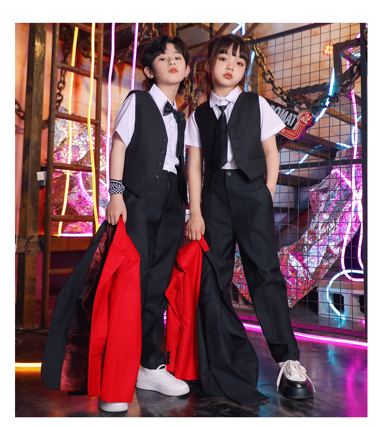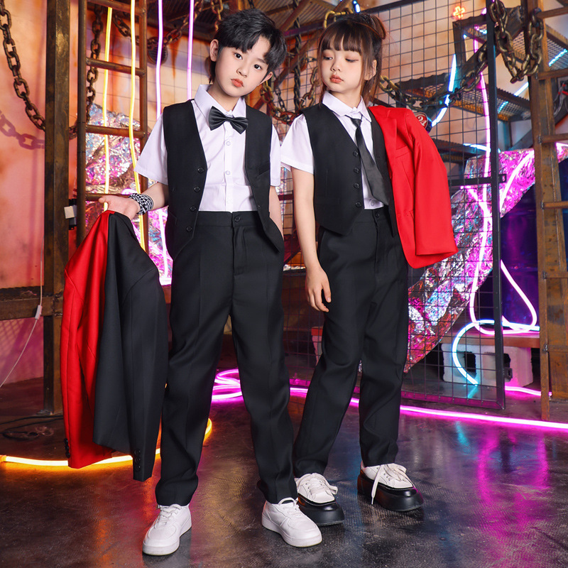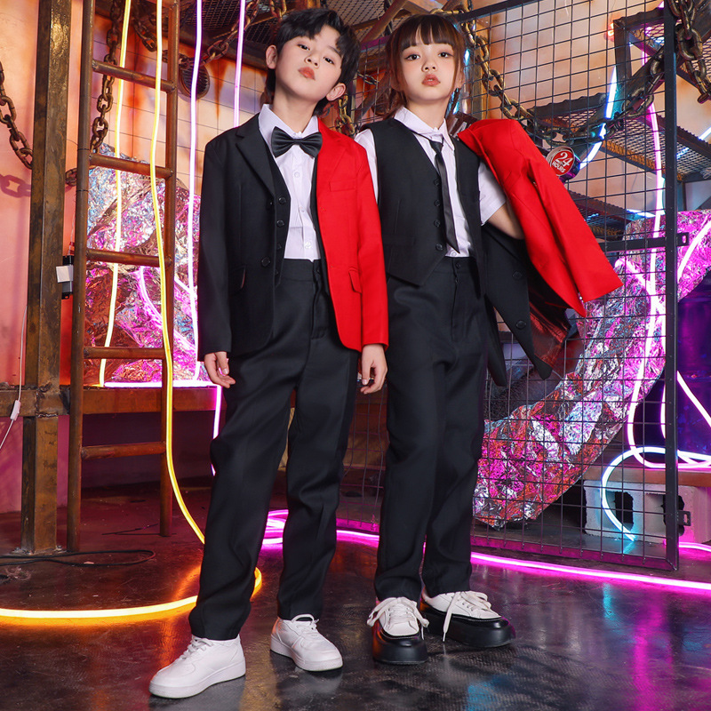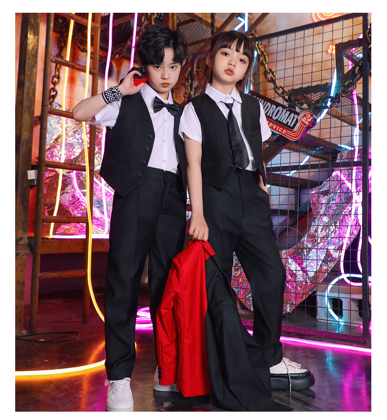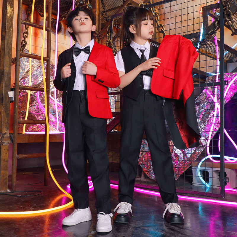 六一儿童演出服街舞西装礼服男童爵士舞服装女童hiphop嘻哈套装