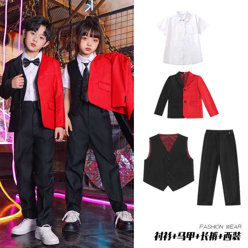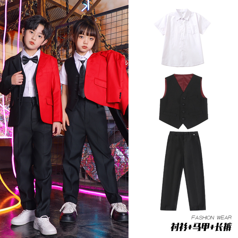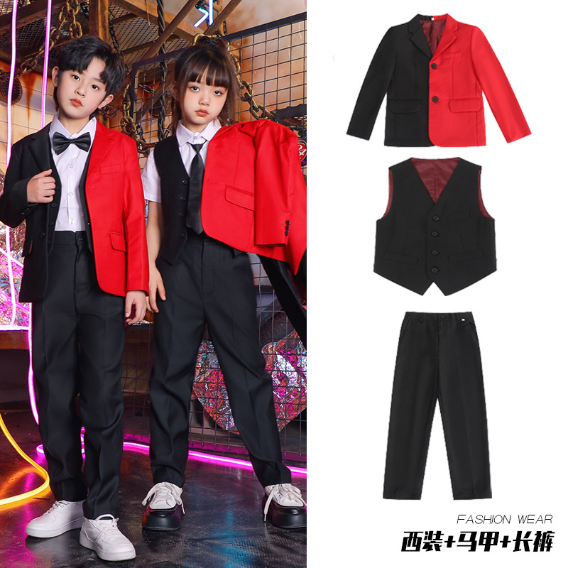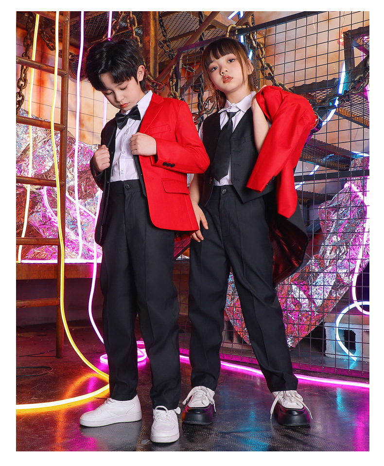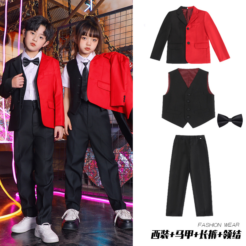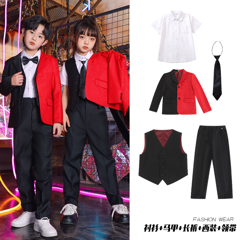 六一儿童演出服街舞西装礼服男童爵士舞服装女童hiphop嘻哈套装