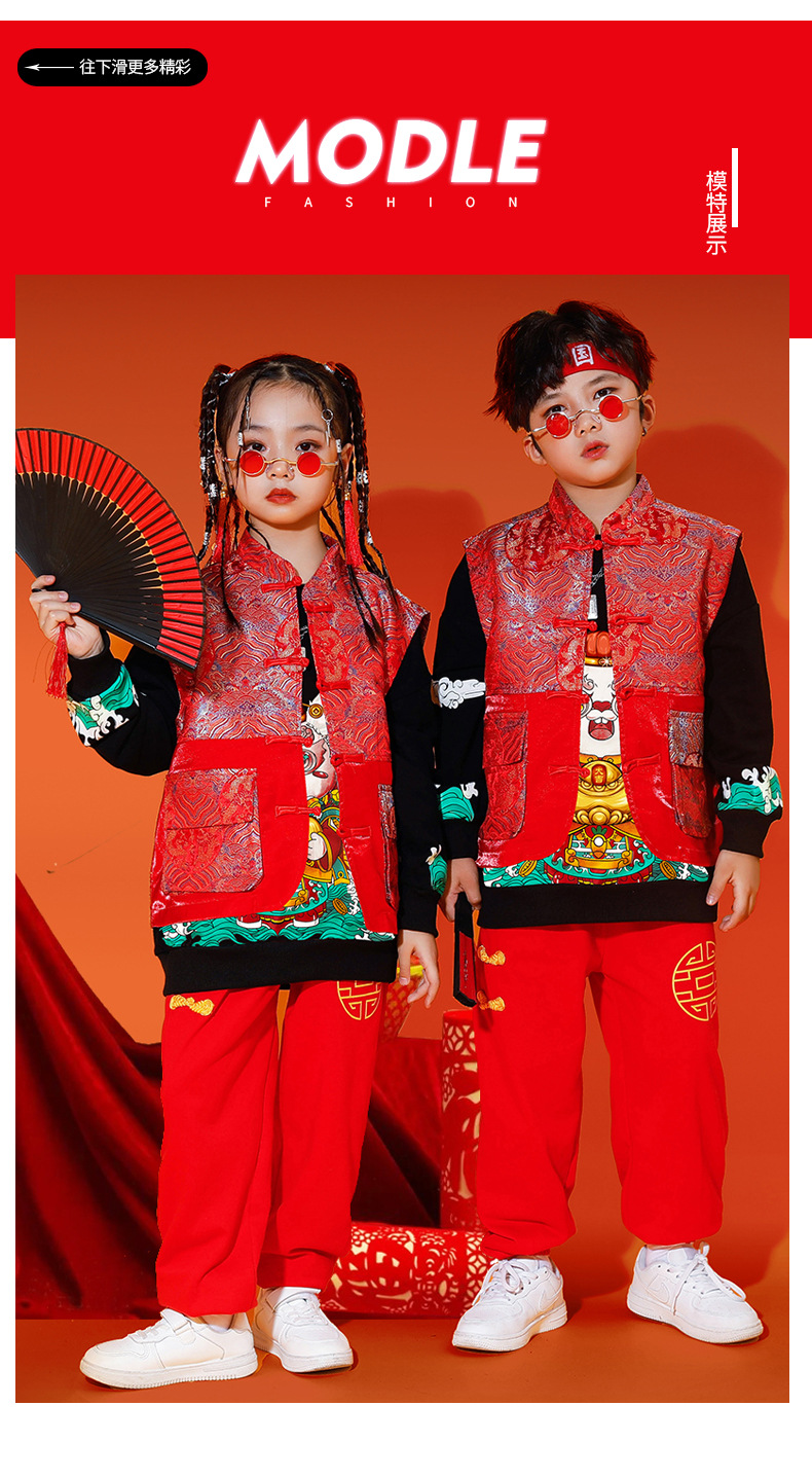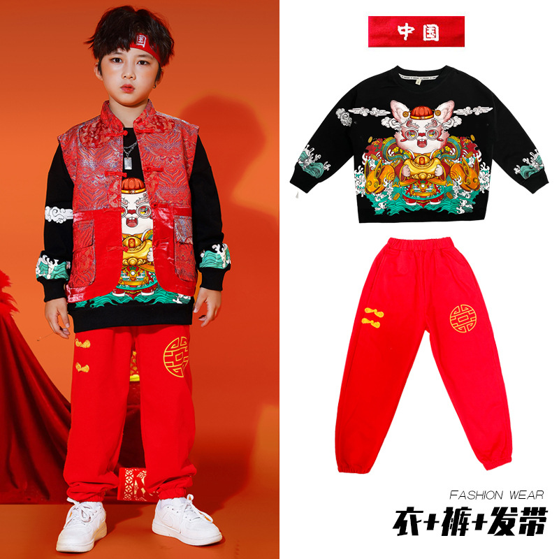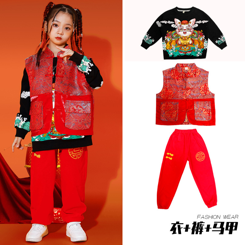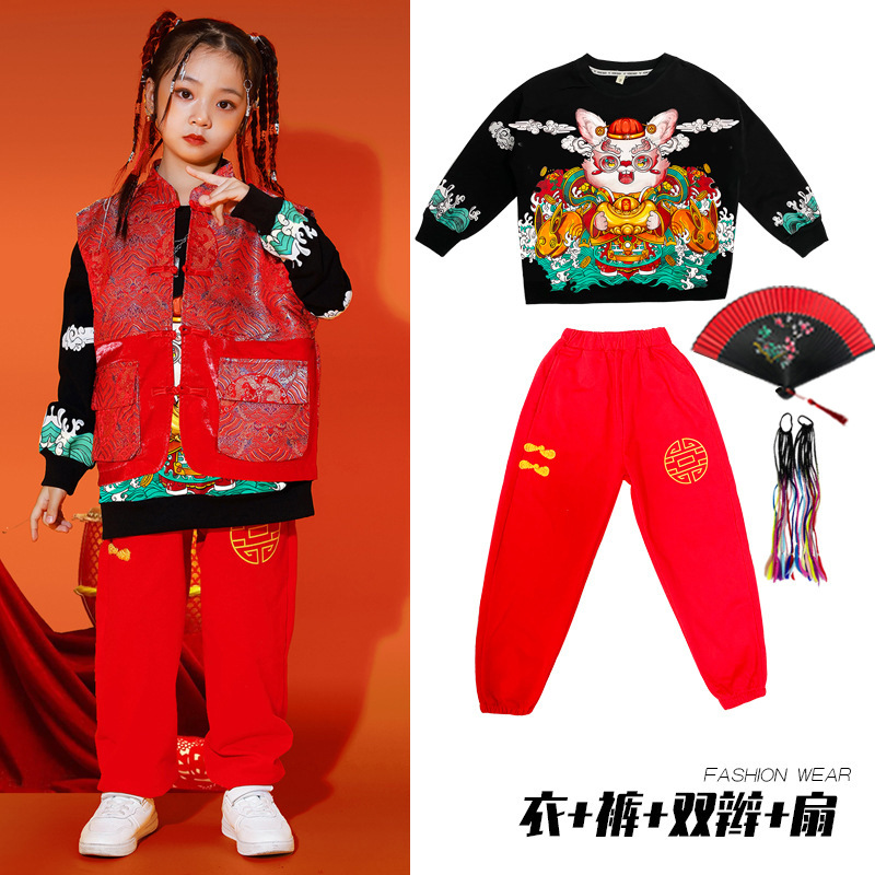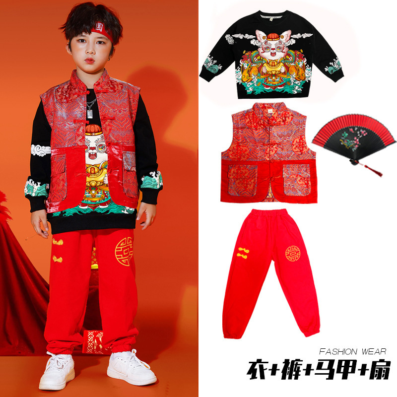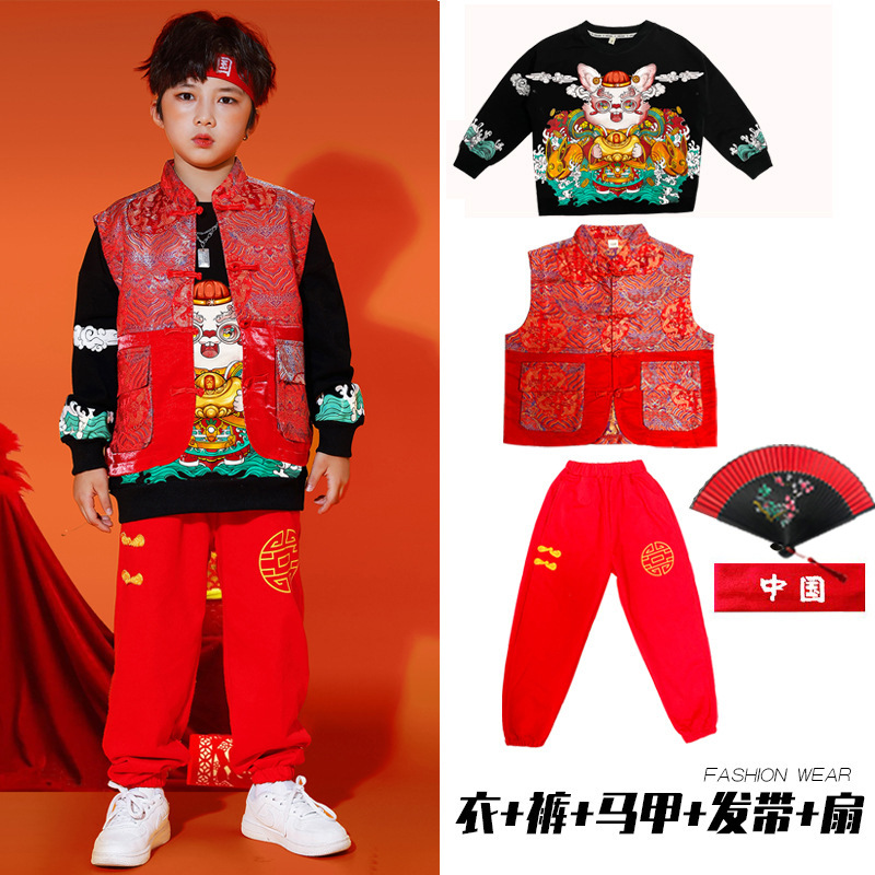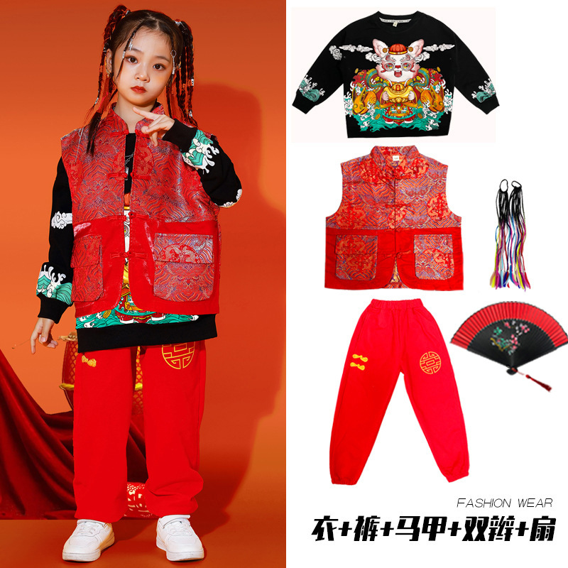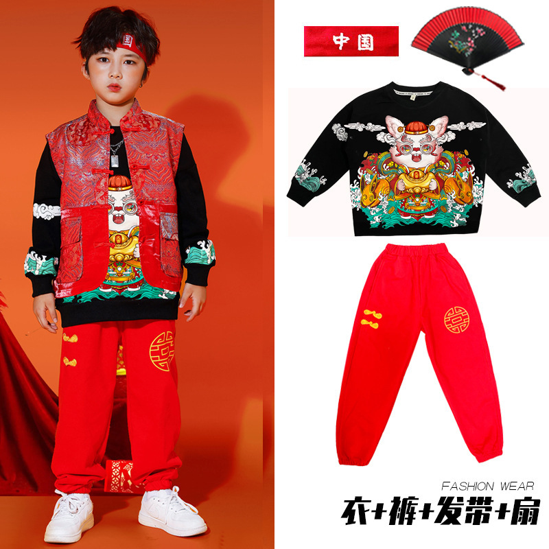 元旦儿童演出服中国风女童汉服小学生运动会服装男童嘻哈街舞潮服