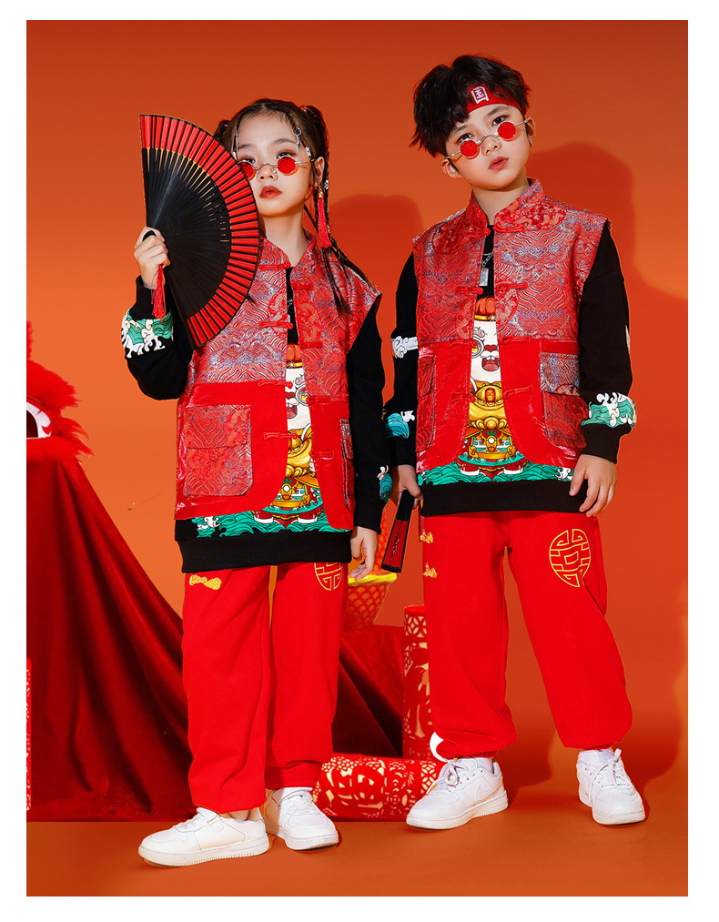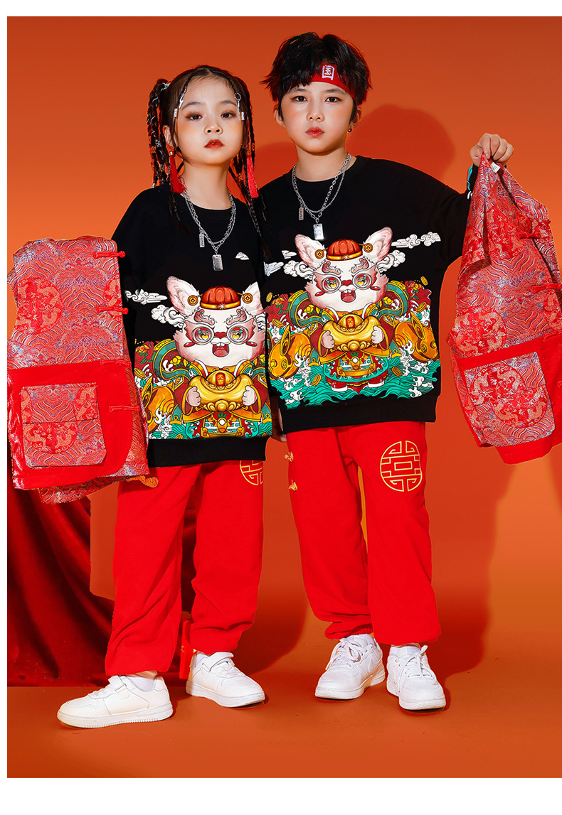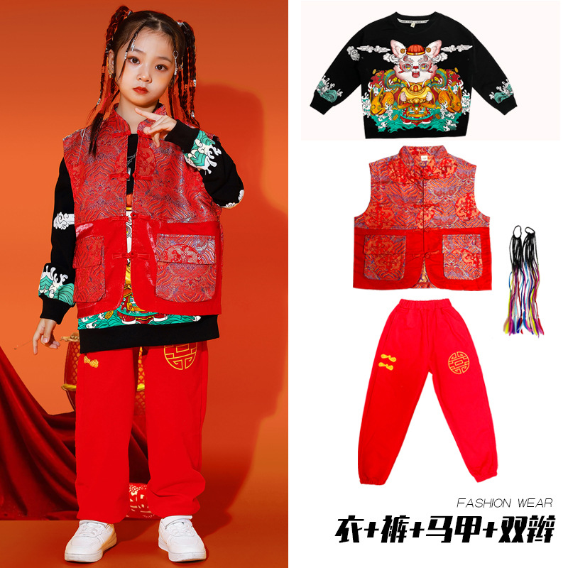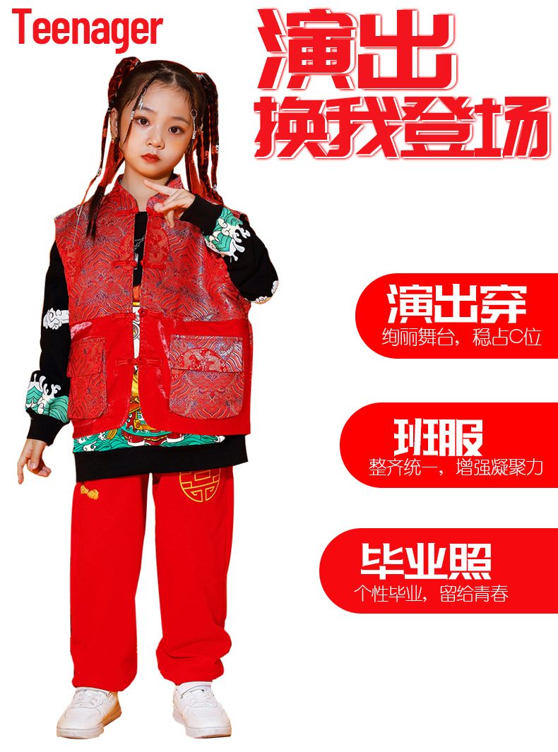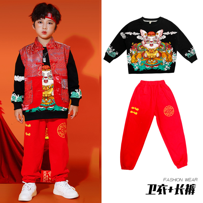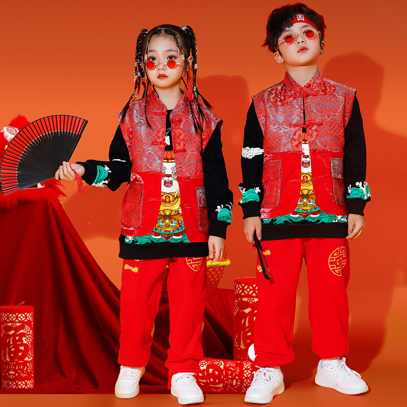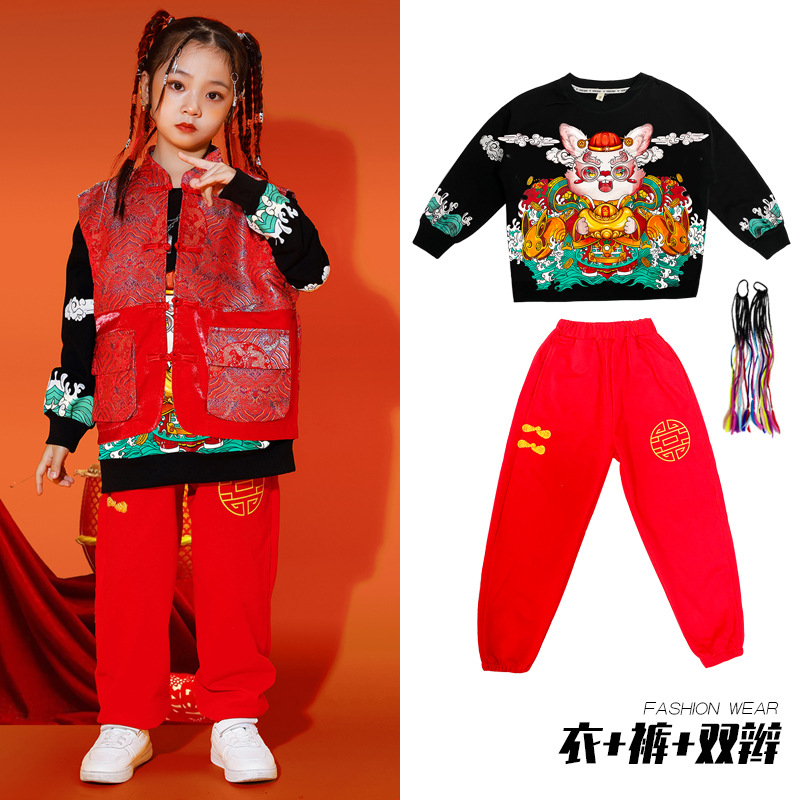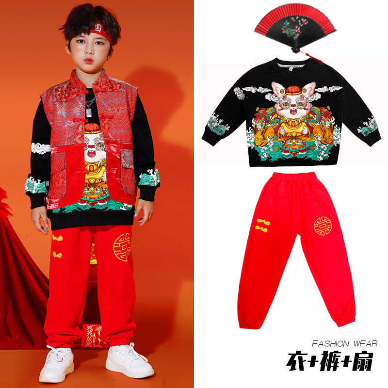 元旦儿童演出服中国风女童汉服小学生运动会服装男童嘻哈街舞潮服