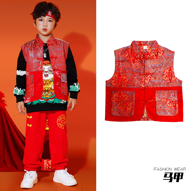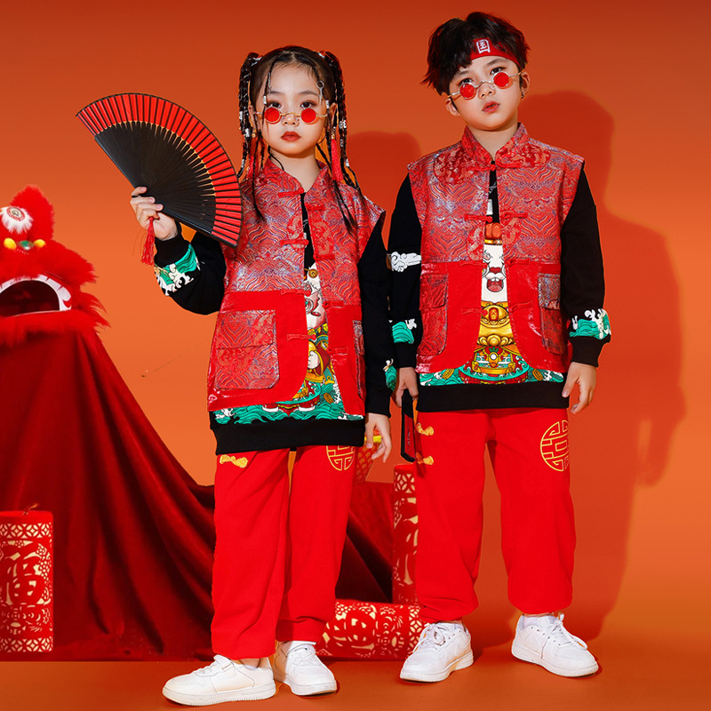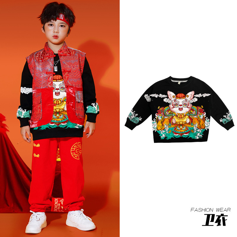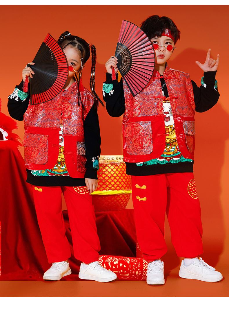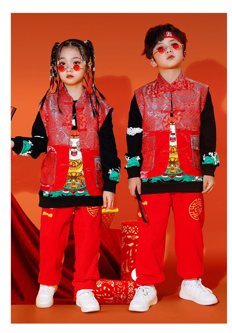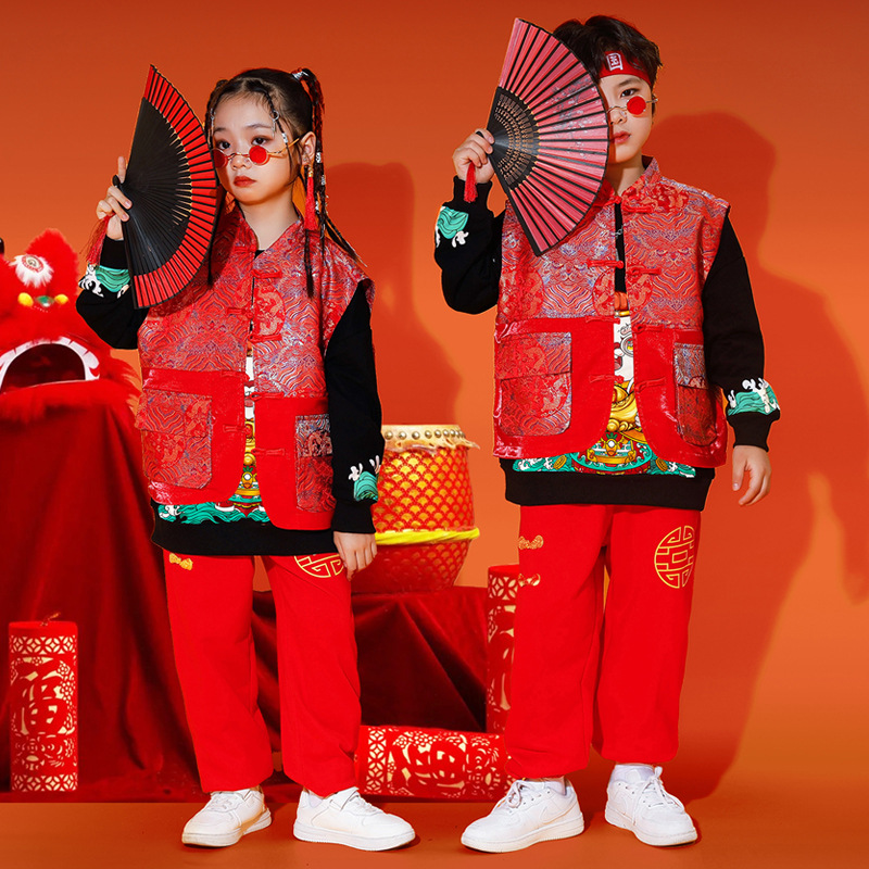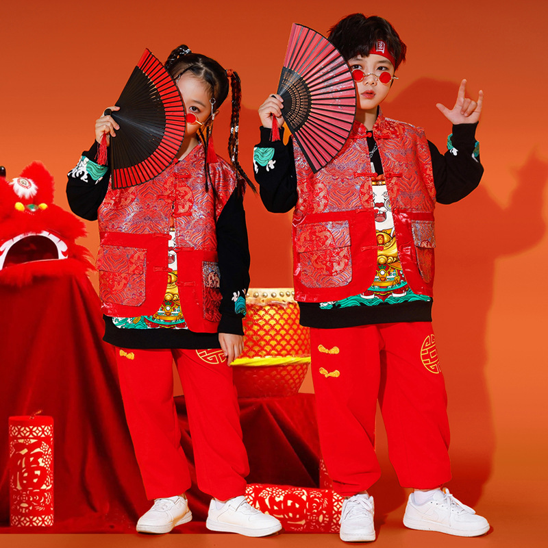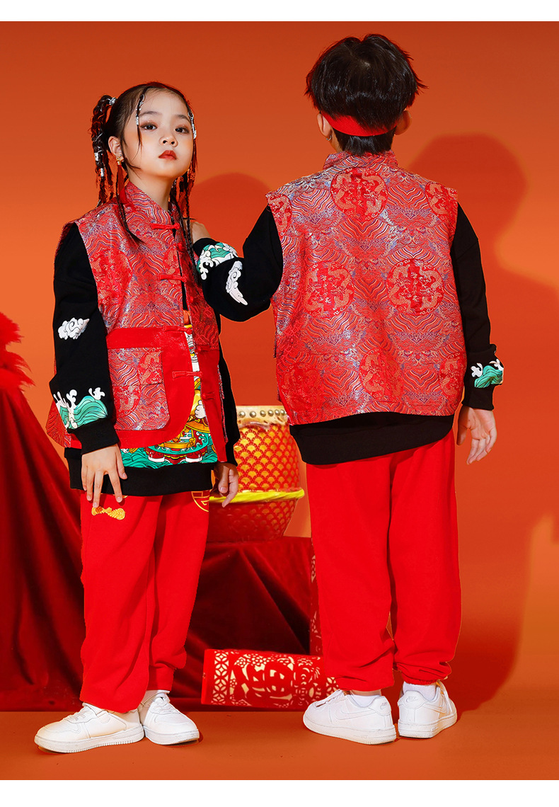 元旦儿童演出服中国风女童汉服小学生运动会服装男童嘻哈街舞潮服