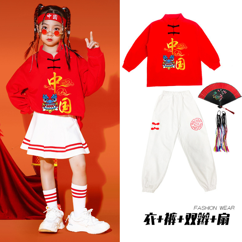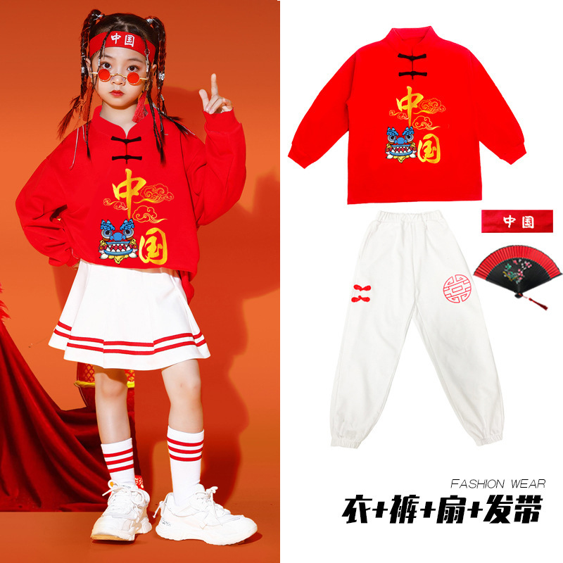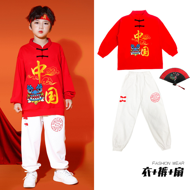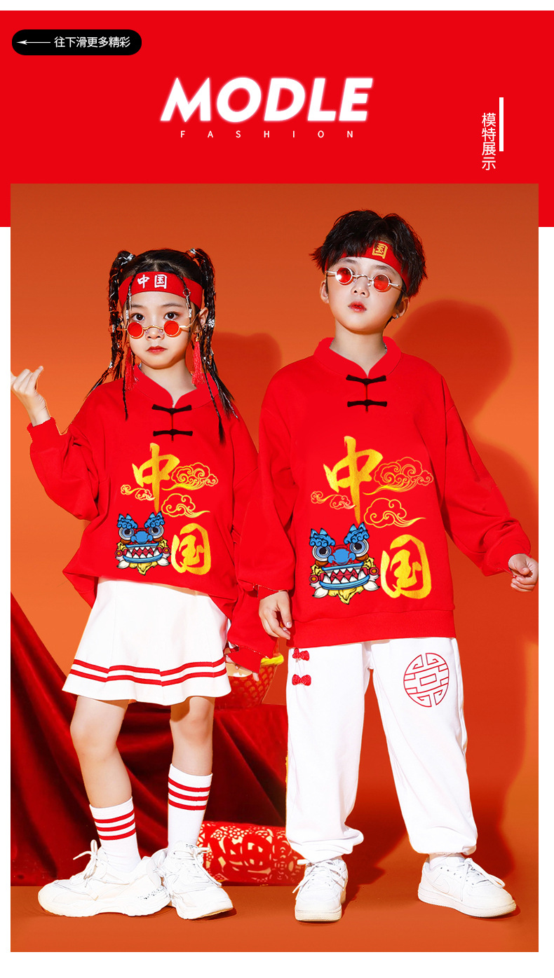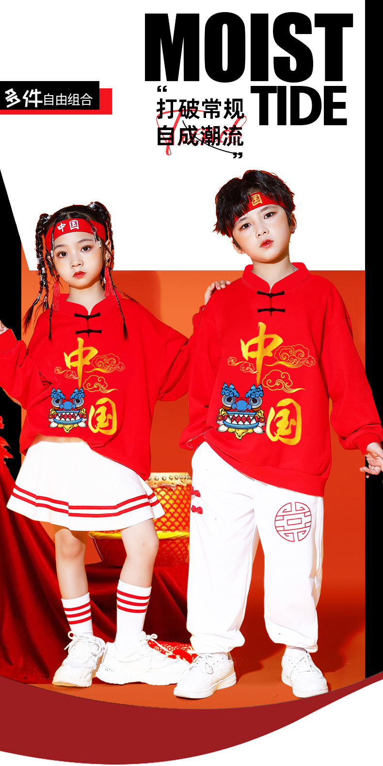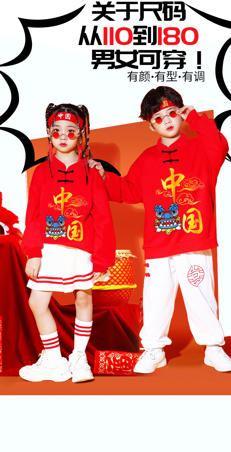 儿童元旦演出服男童嘻哈街舞潮服女童啦啦队表演服中国风卫衣套装