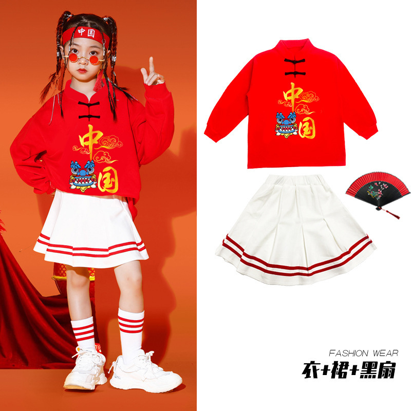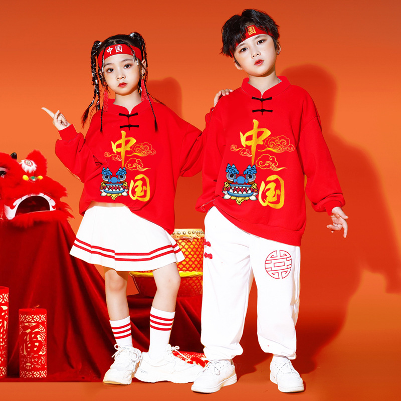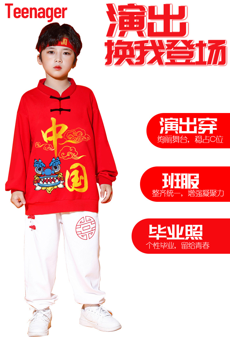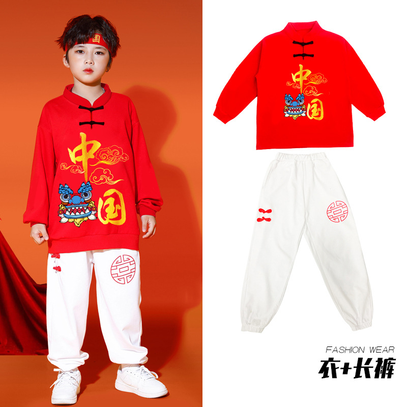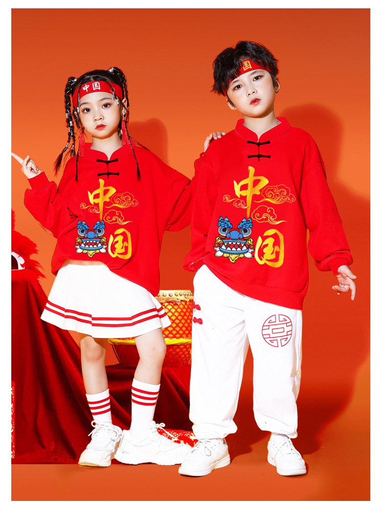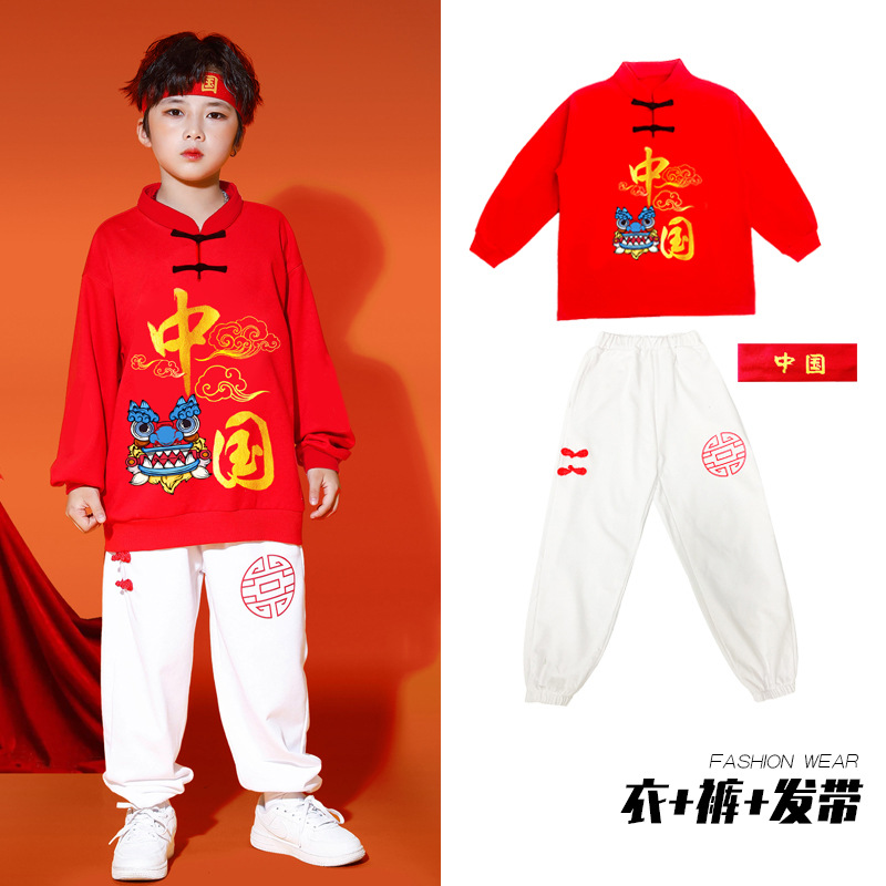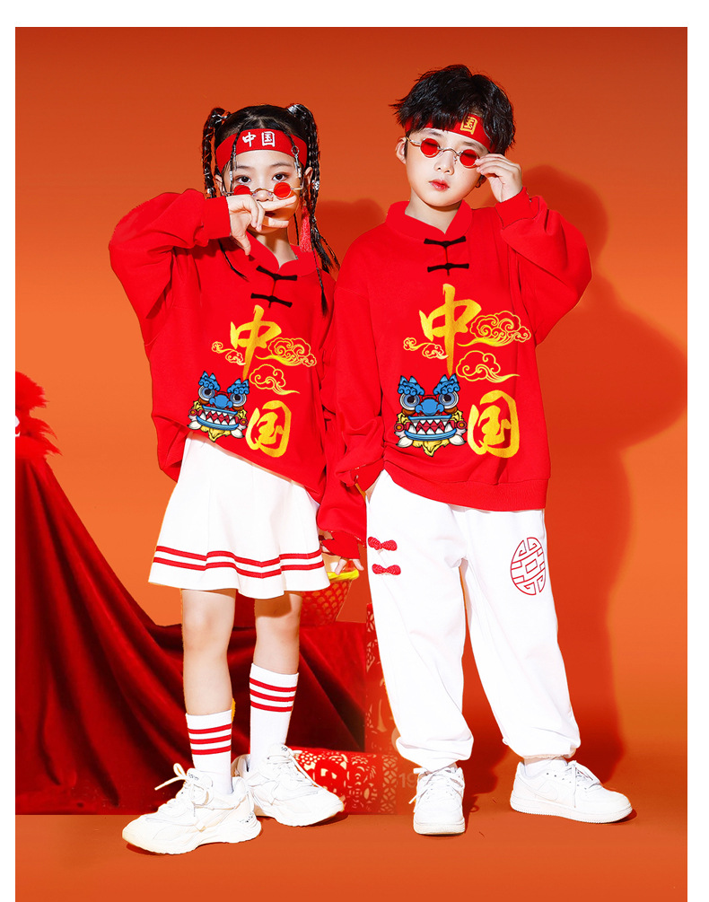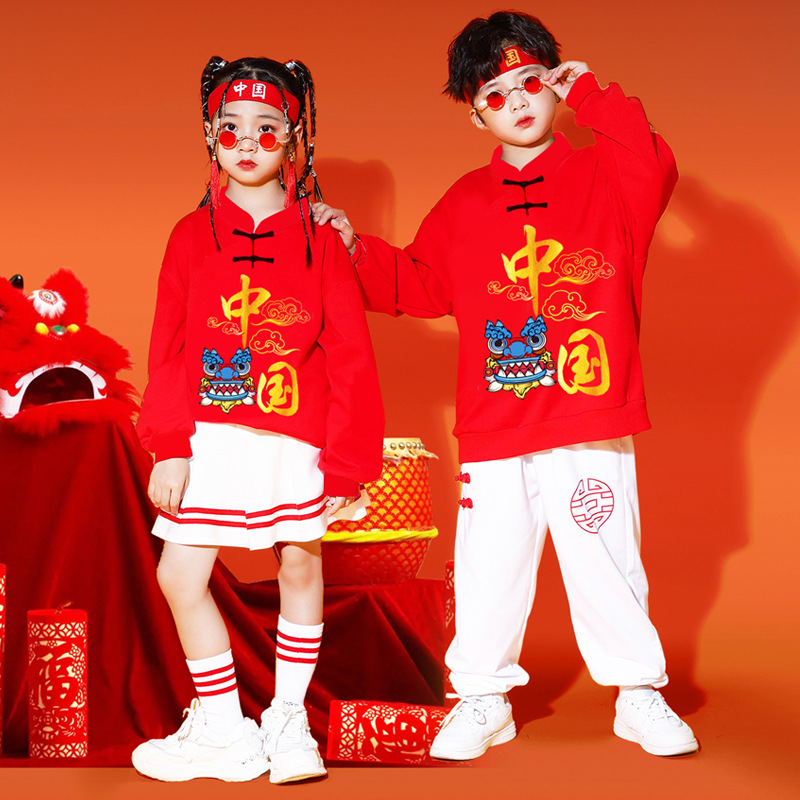 儿童元旦演出服男童嘻哈街舞潮服女童啦啦队表演服中国风卫衣套装