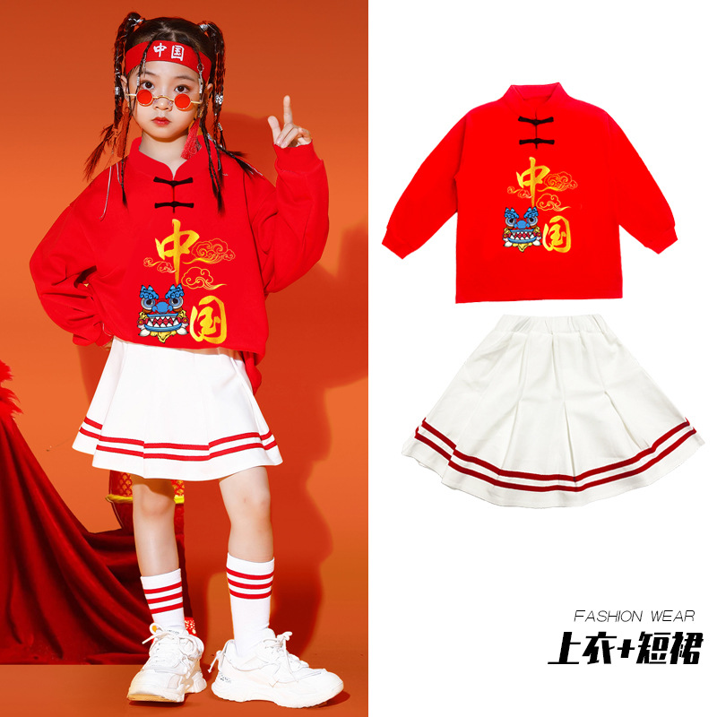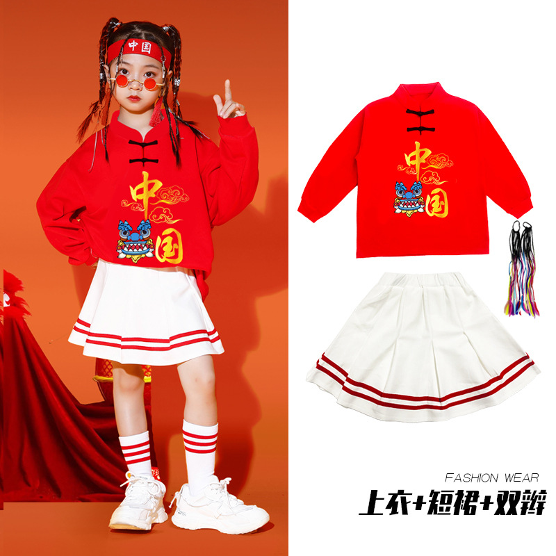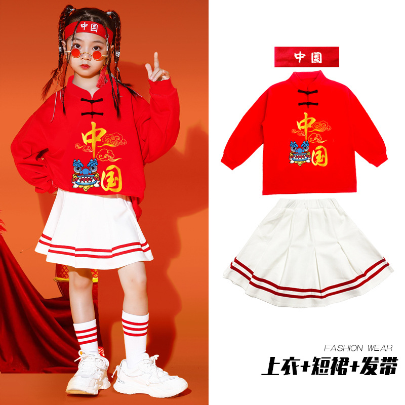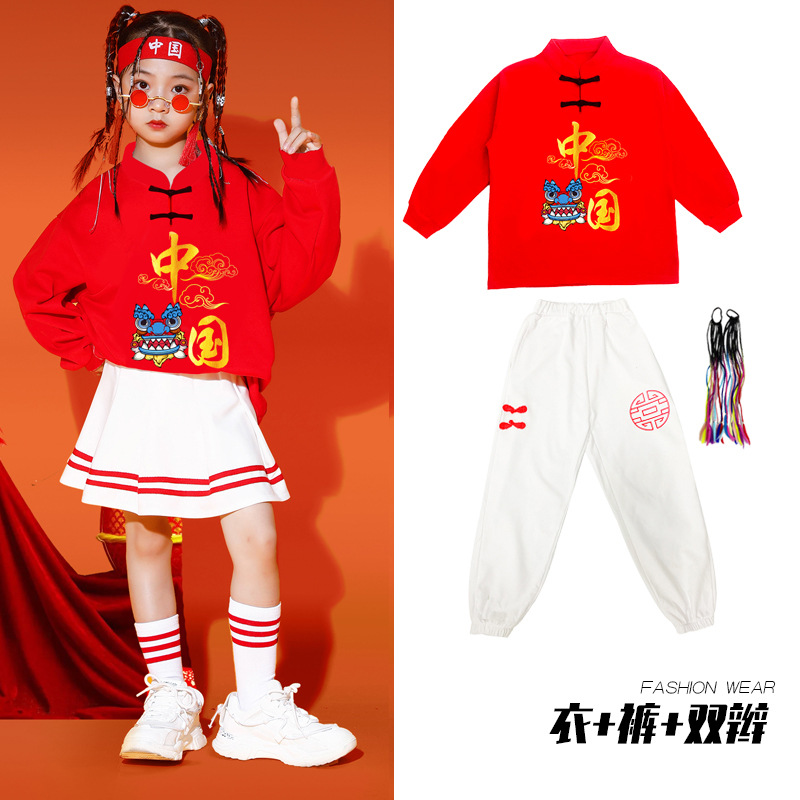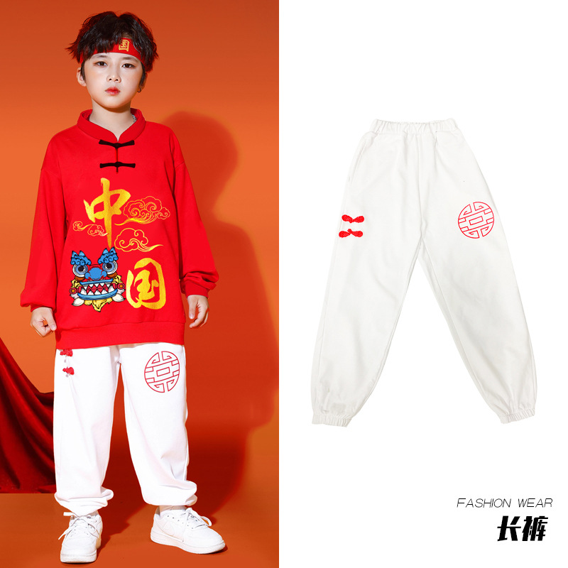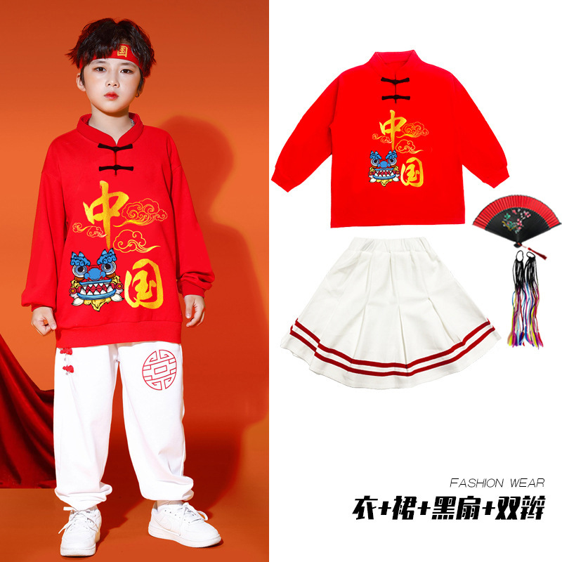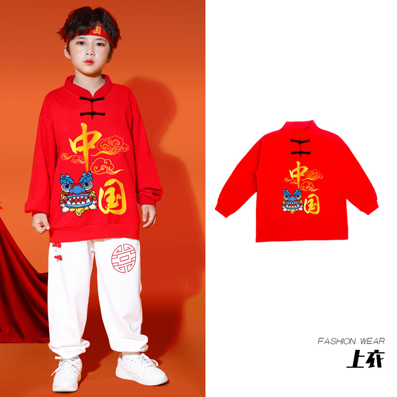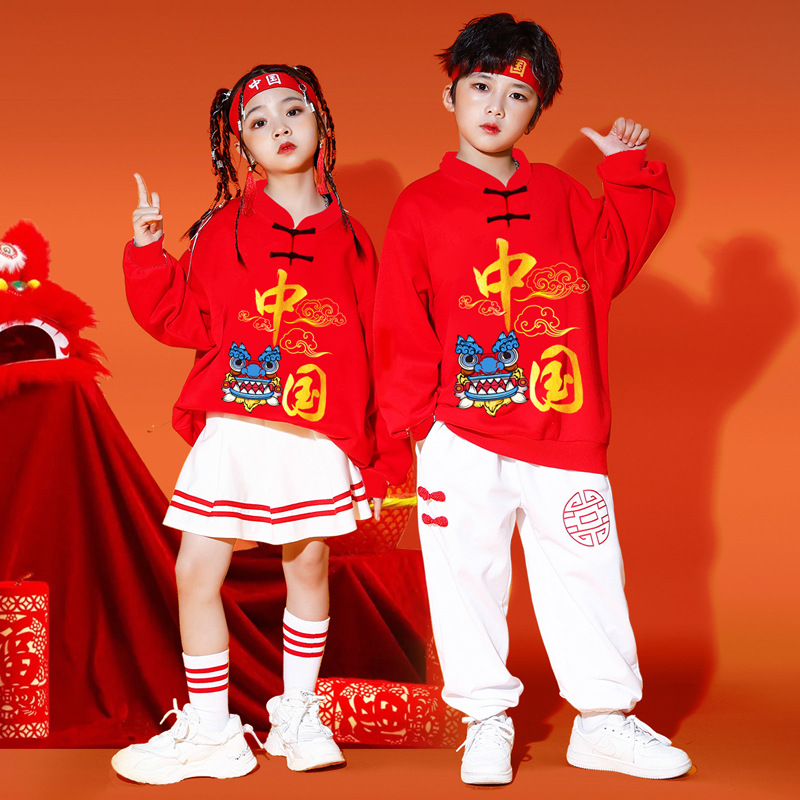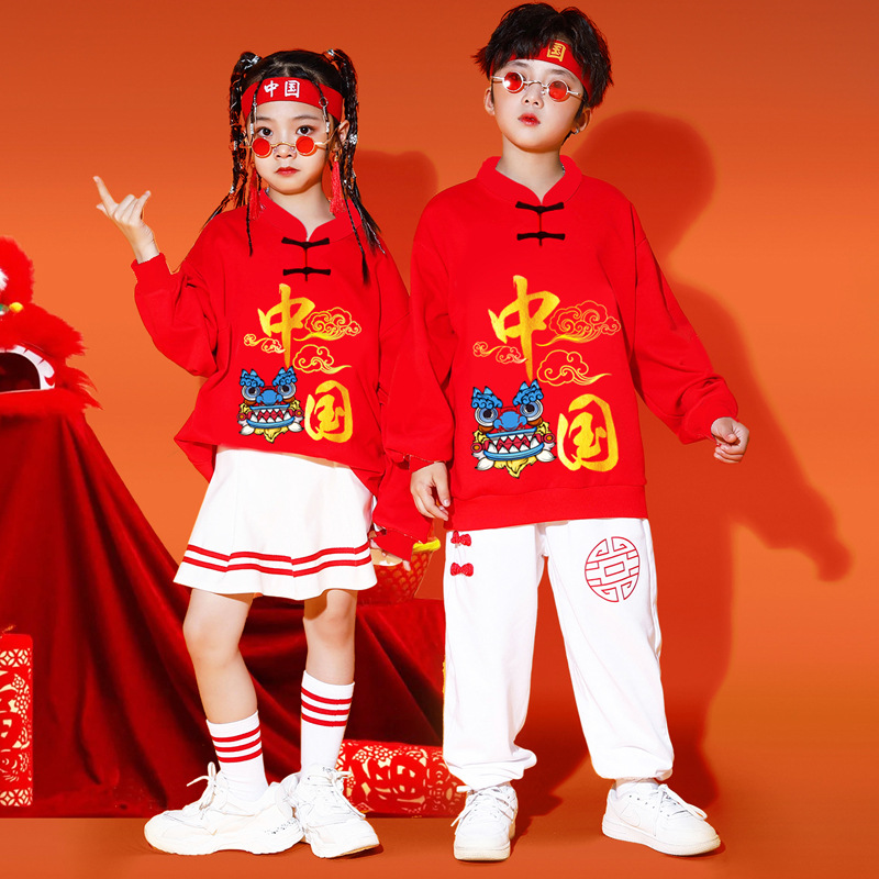 儿童元旦演出服男童嘻哈街舞潮服女童啦啦队表演服中国风卫衣套装