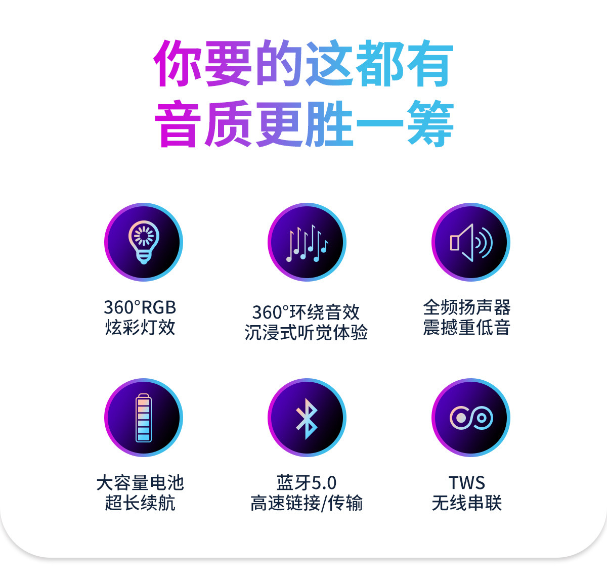 pluse6 跨境脉动全屏炫彩无线蓝牙音箱RGB七彩pulse便携迷你音响