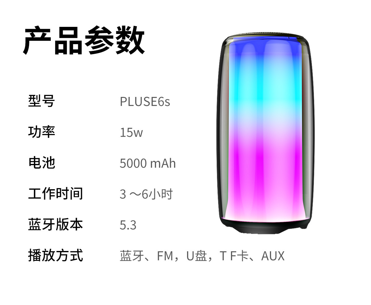 新款华强北脉动pluse6全屏炫彩无线蓝牙音箱RGB七彩pulse迷你音响