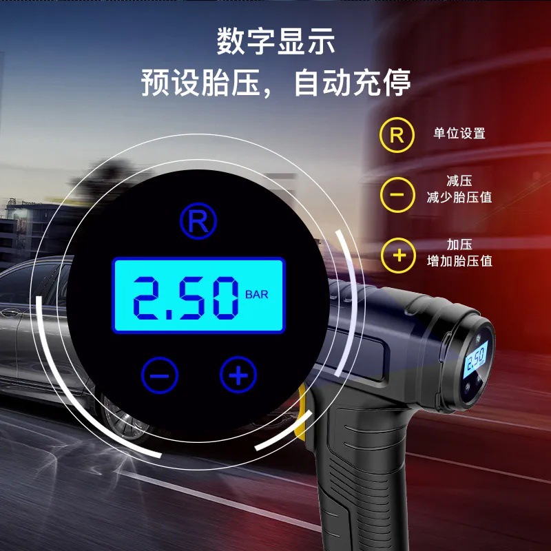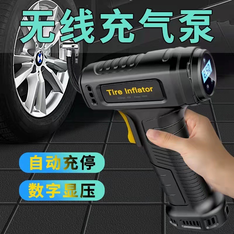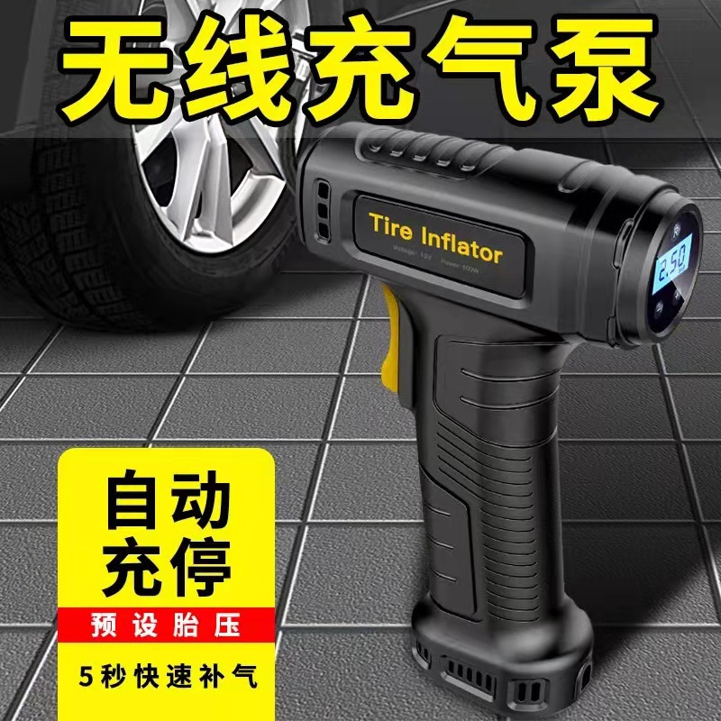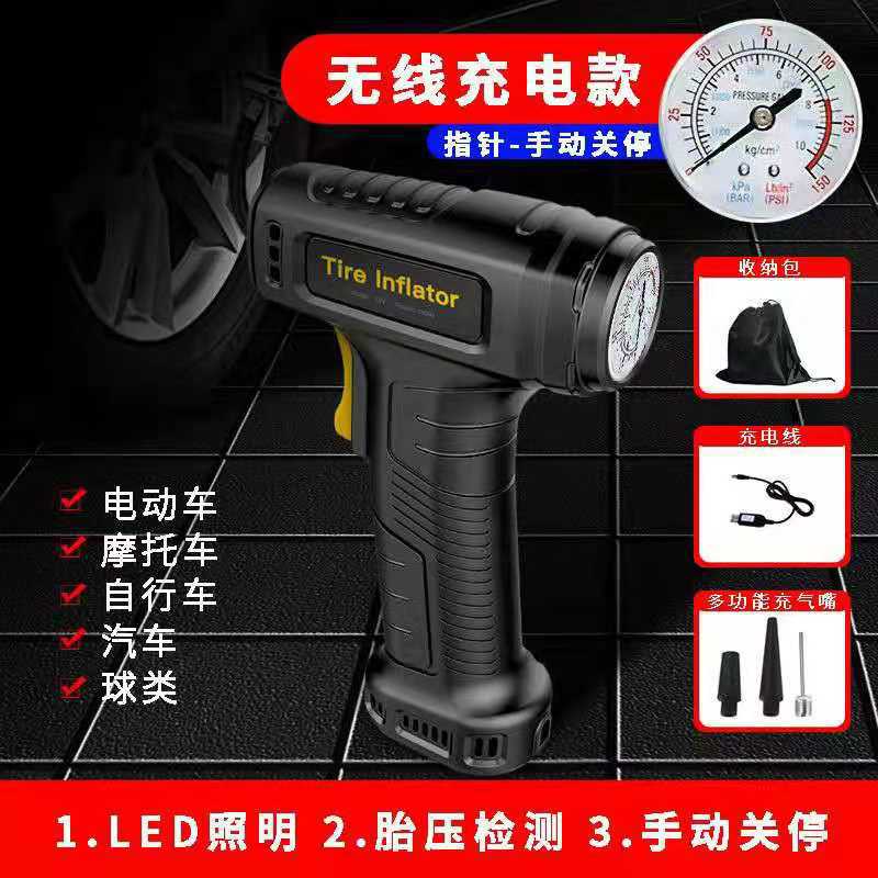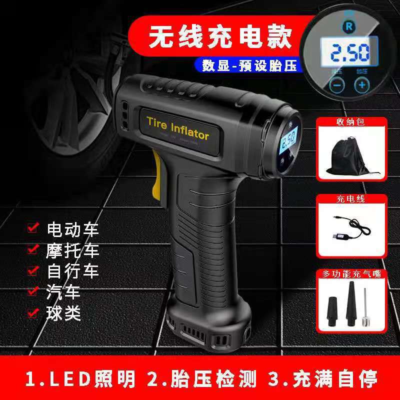 便携式无线车载充气泵 汽车用电动打气筒 电动车自行车打气泵