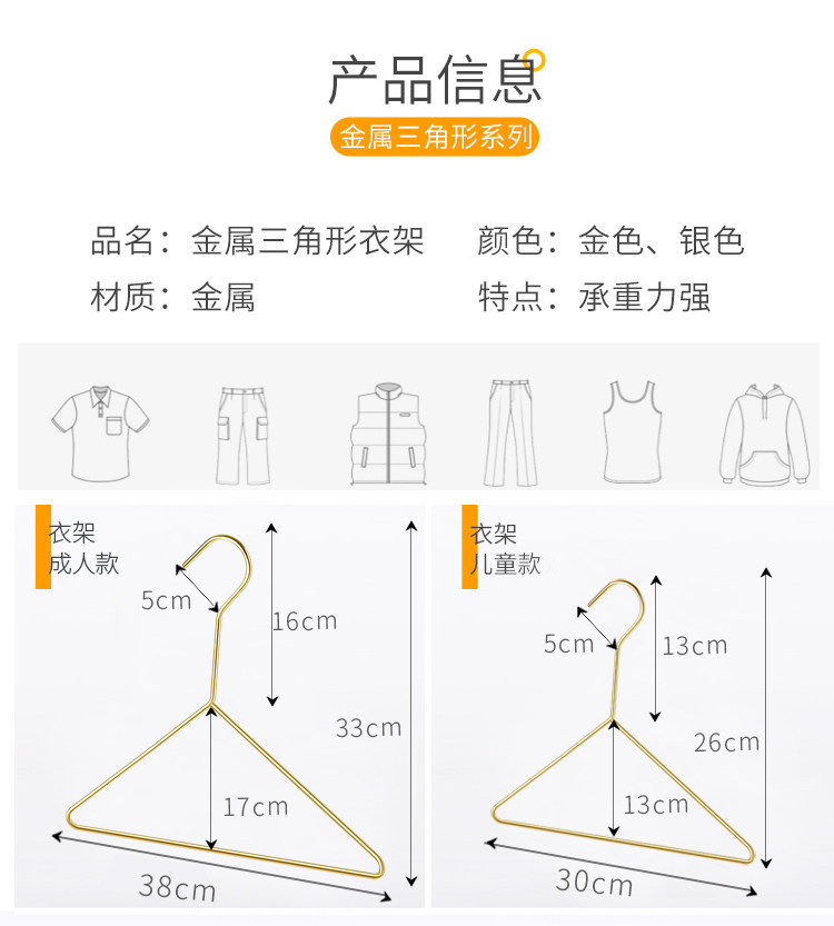 ins北欧金色三角形女装儿童装店金属银色长钩子衣撑展示日用百货