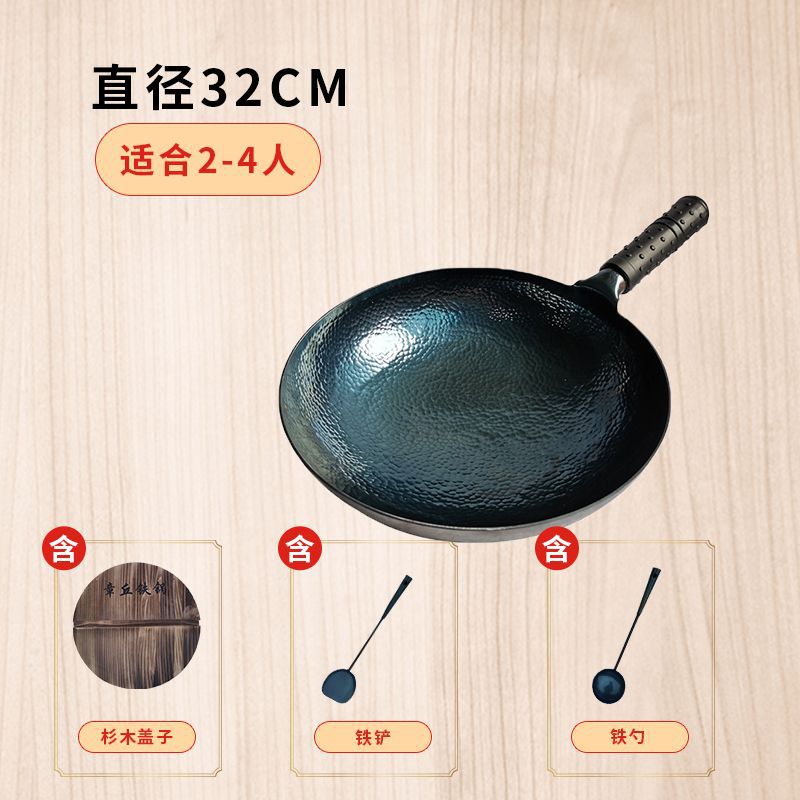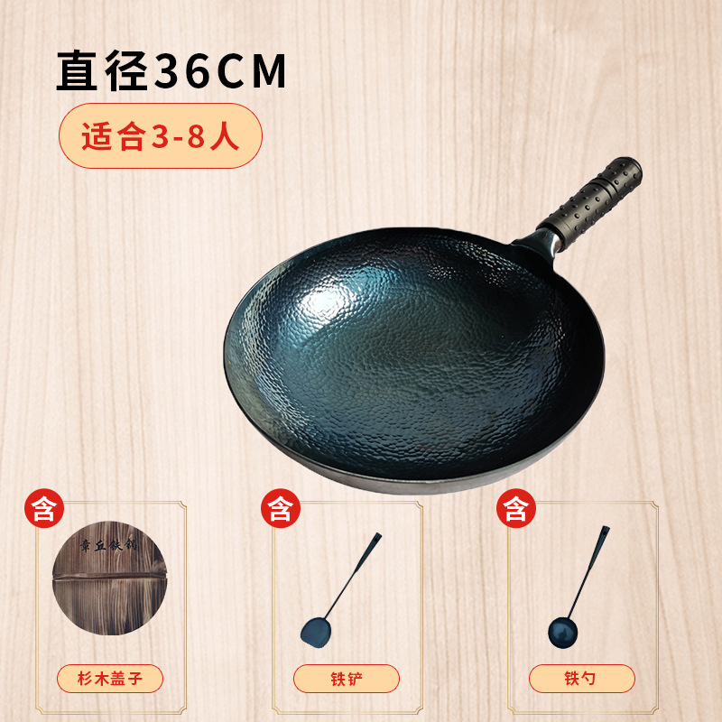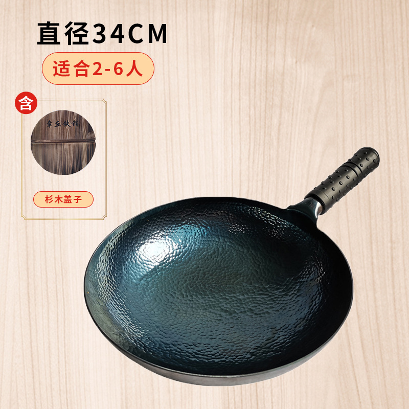 章丘手工铁锅鱼鳞铁锅老式传统家用手工锻打熟铁炒锅无涂层不粘锅