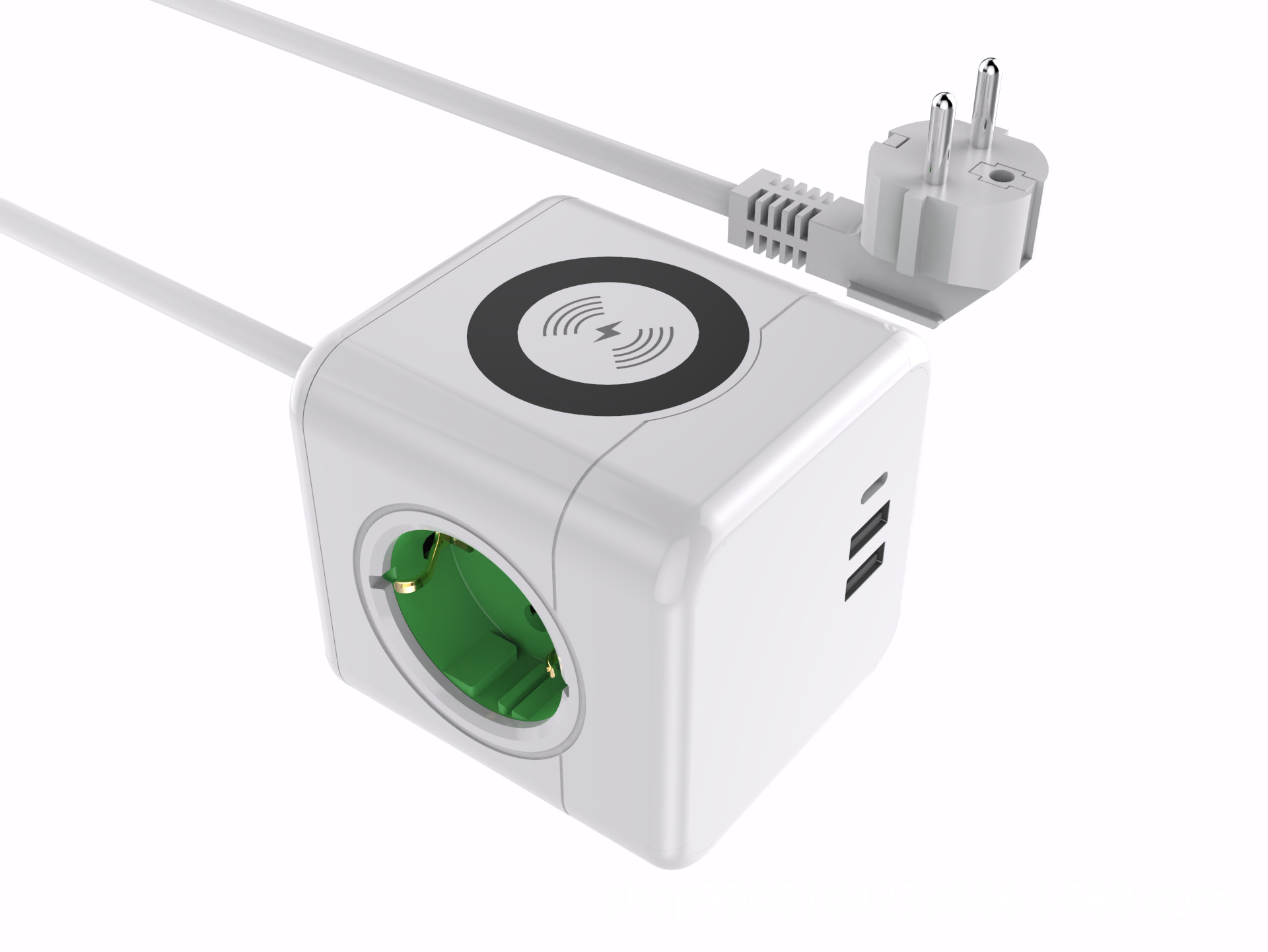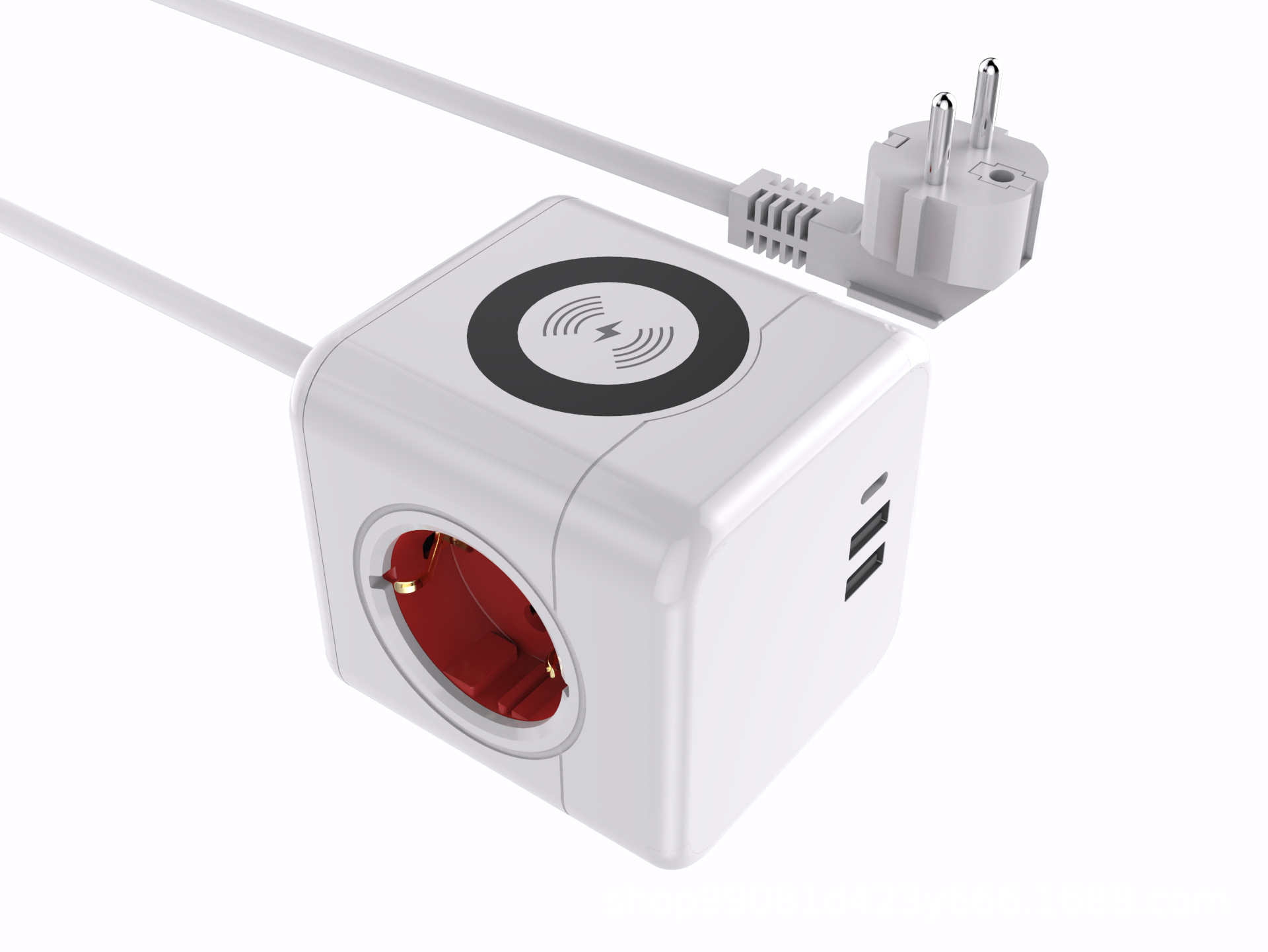 欧洲15W无线充电魔方插座亚马逊外贸出口创意立方体带USB排插优惠