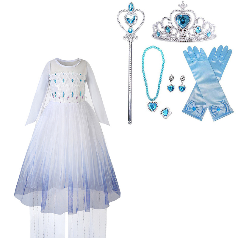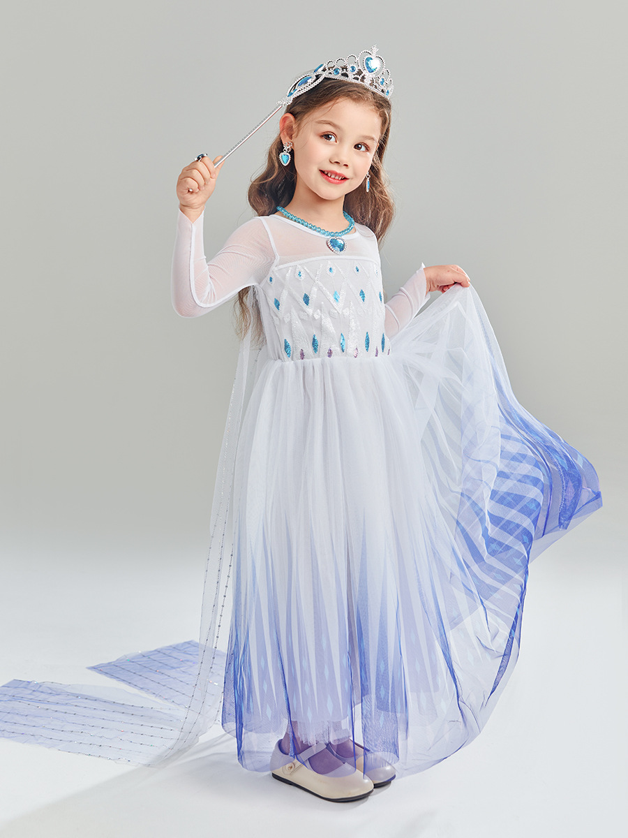 女童连衣裙春秋装新款儿童长袖爱莎公主裙批发小女孩礼服蓬蓬纱裙