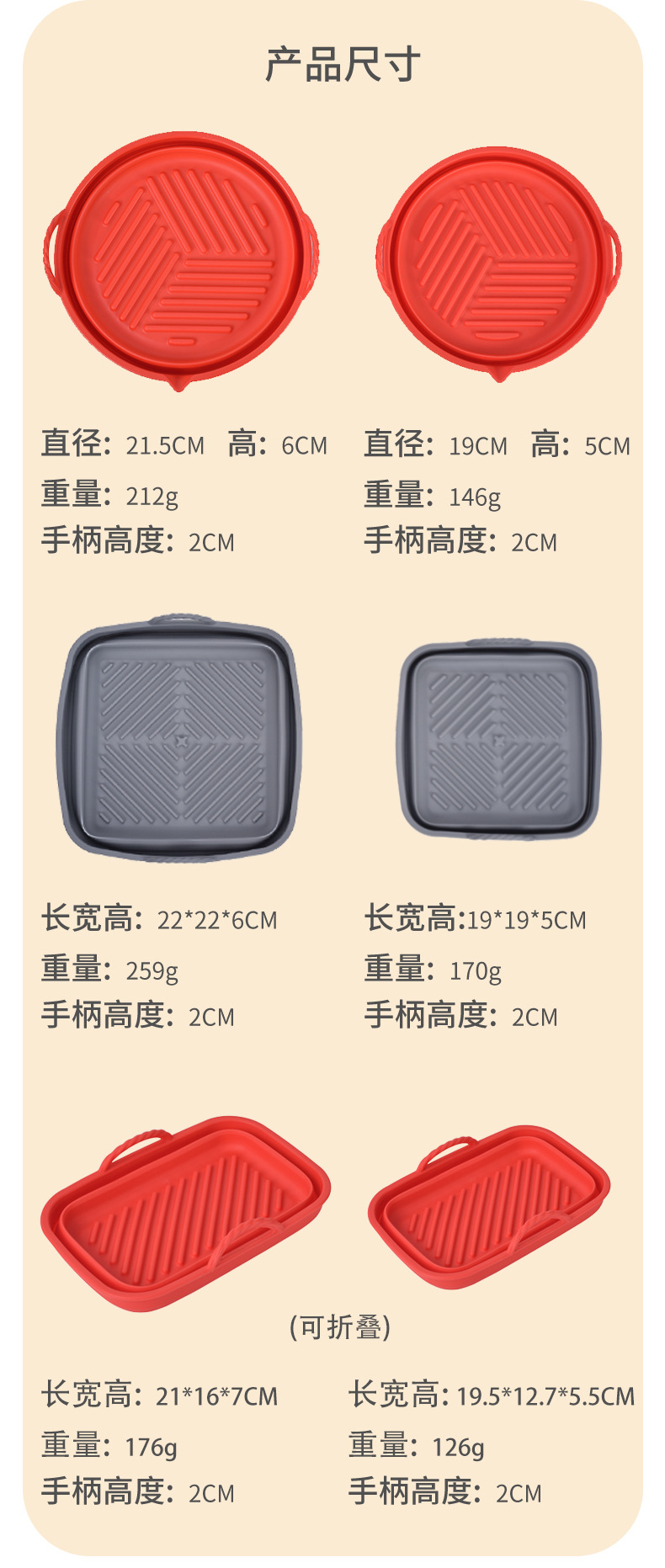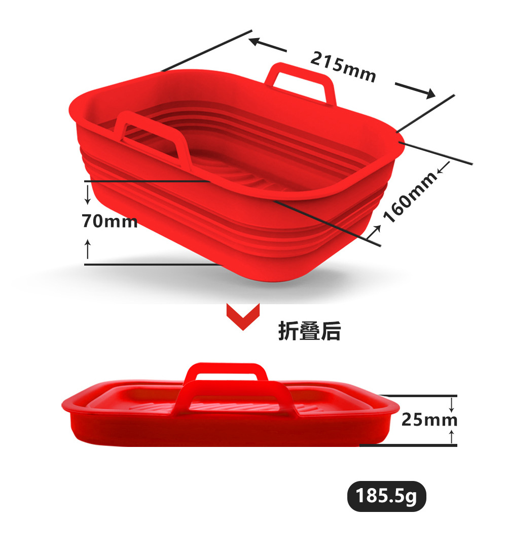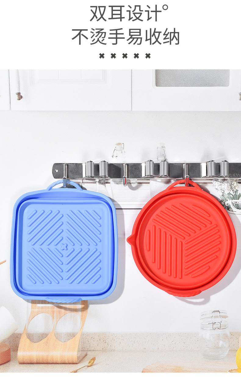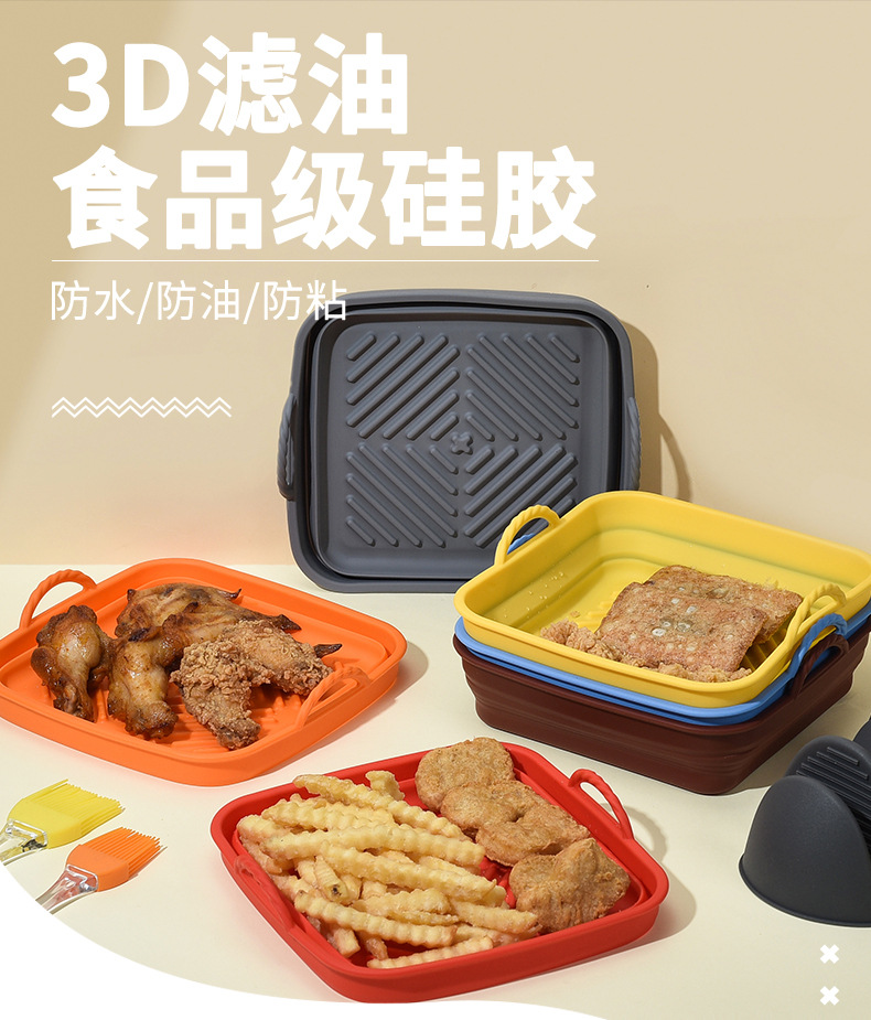 亚马逊加厚可折叠长方形空气炸锅硅胶烤盘硅胶垫空气炸锅硅胶烤盘