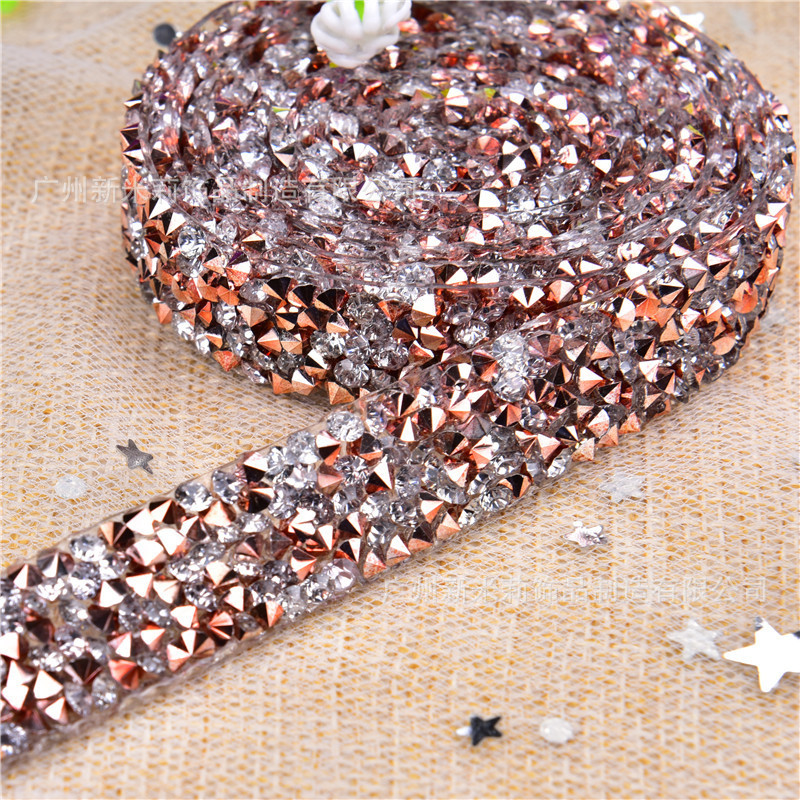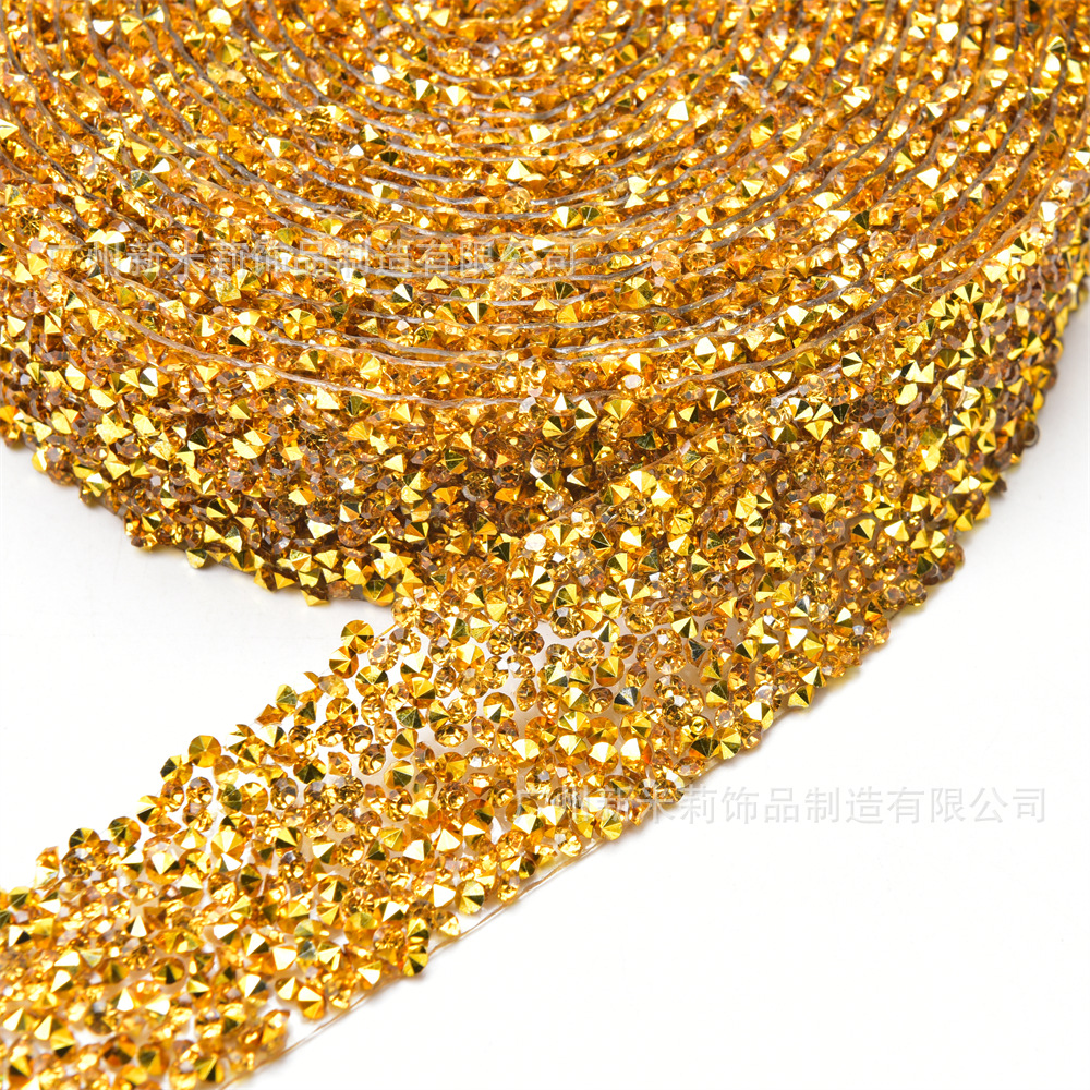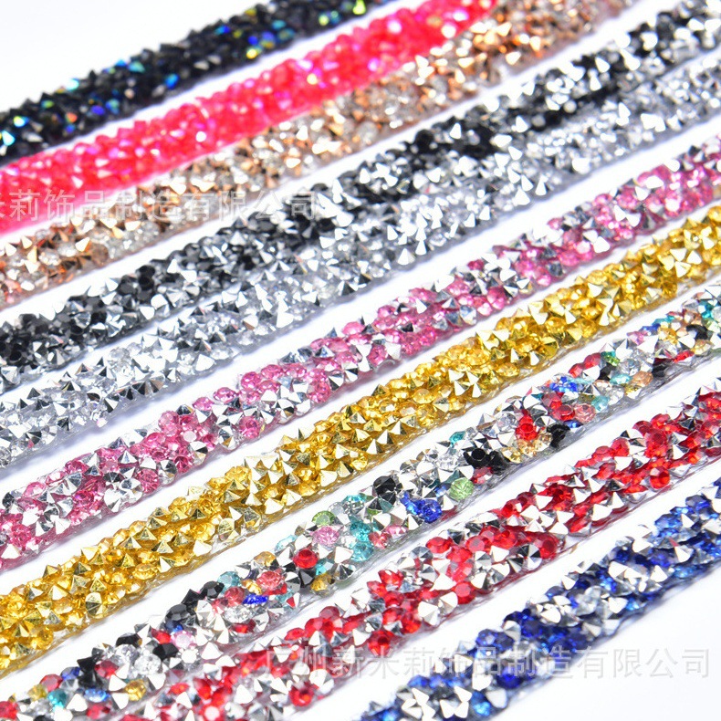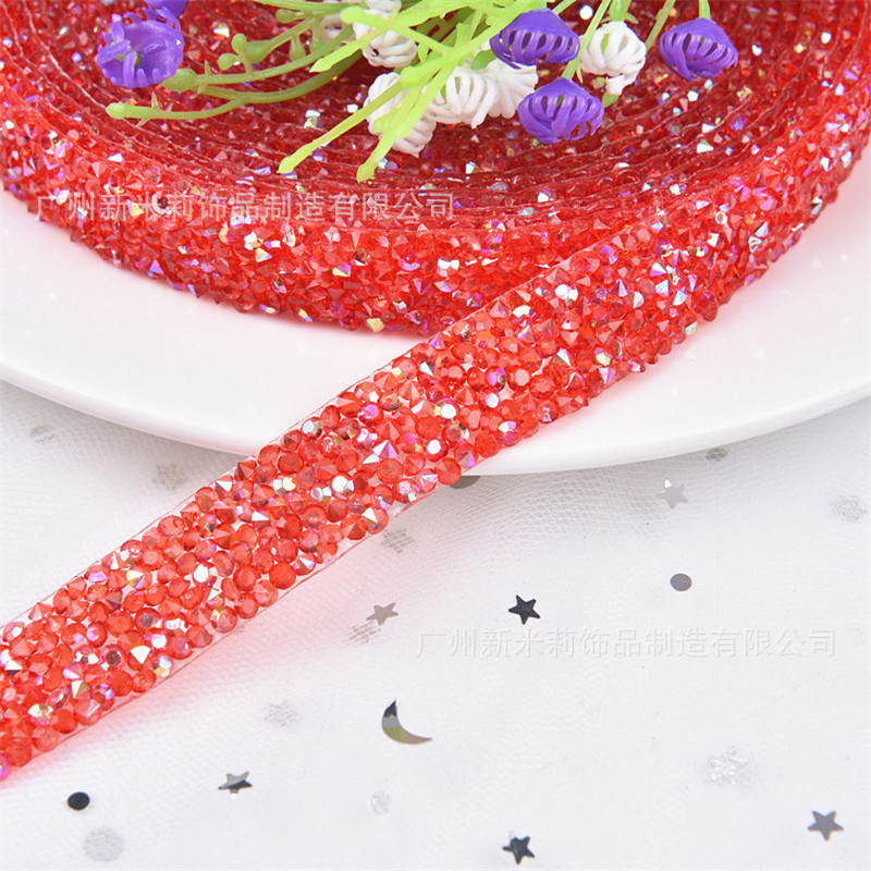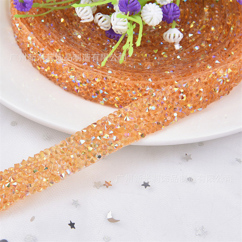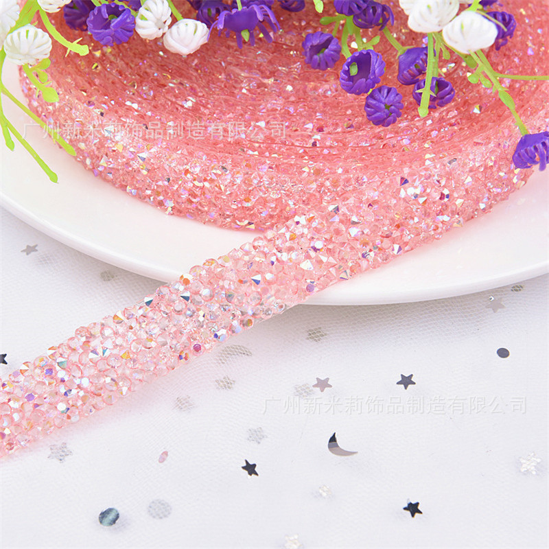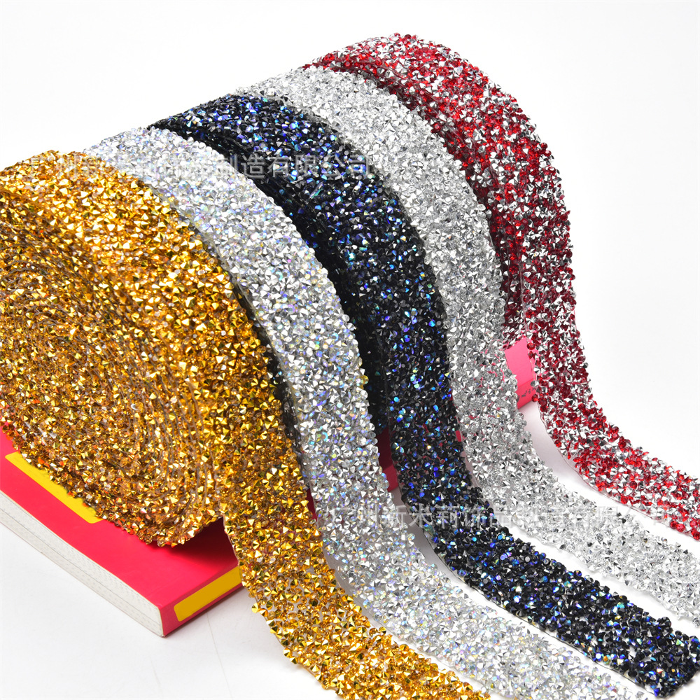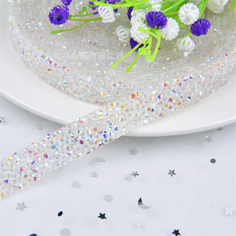 厂家1/1.5/3cm树脂钻带 热熔背胶水钻烫钻 鞋包水晶贴钻服装钻链