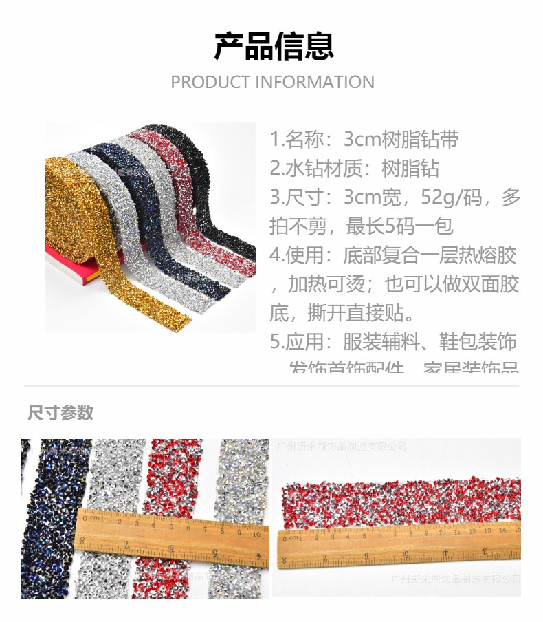 跨境热销3cm树脂水钻带热熔背胶烫钻服装腰带diy鞋包贴钻饰品配件