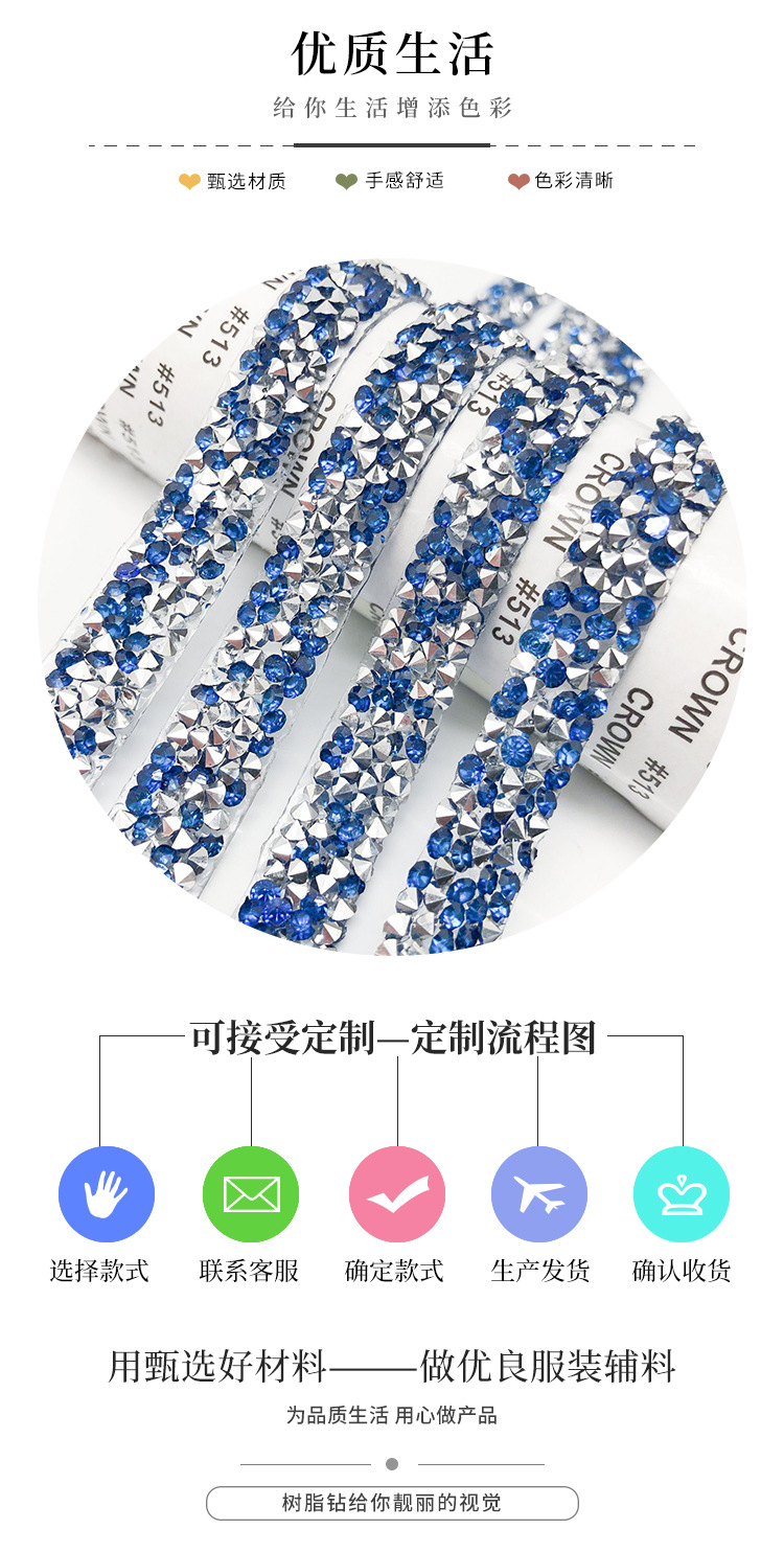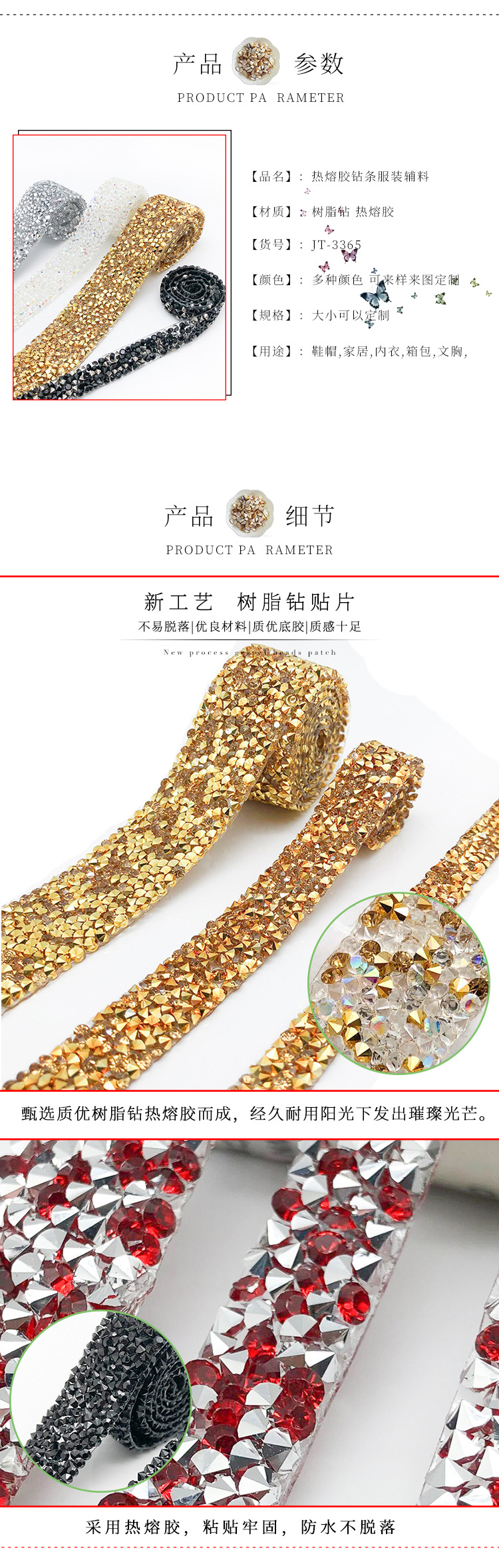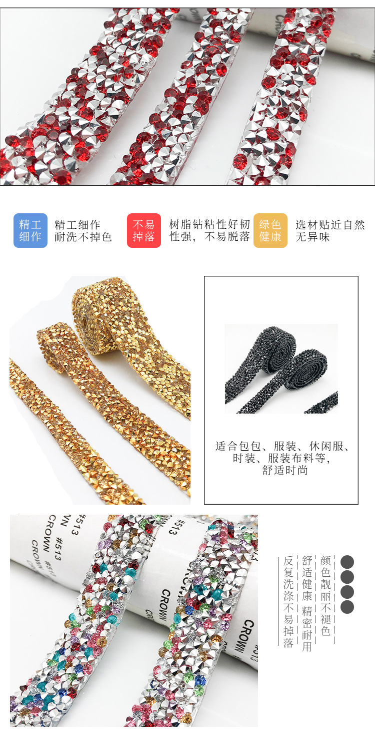 跨境树脂钻带热熔胶钻条 烫钻服装辅料贴钻DIY饰品配件钻贴腰带
