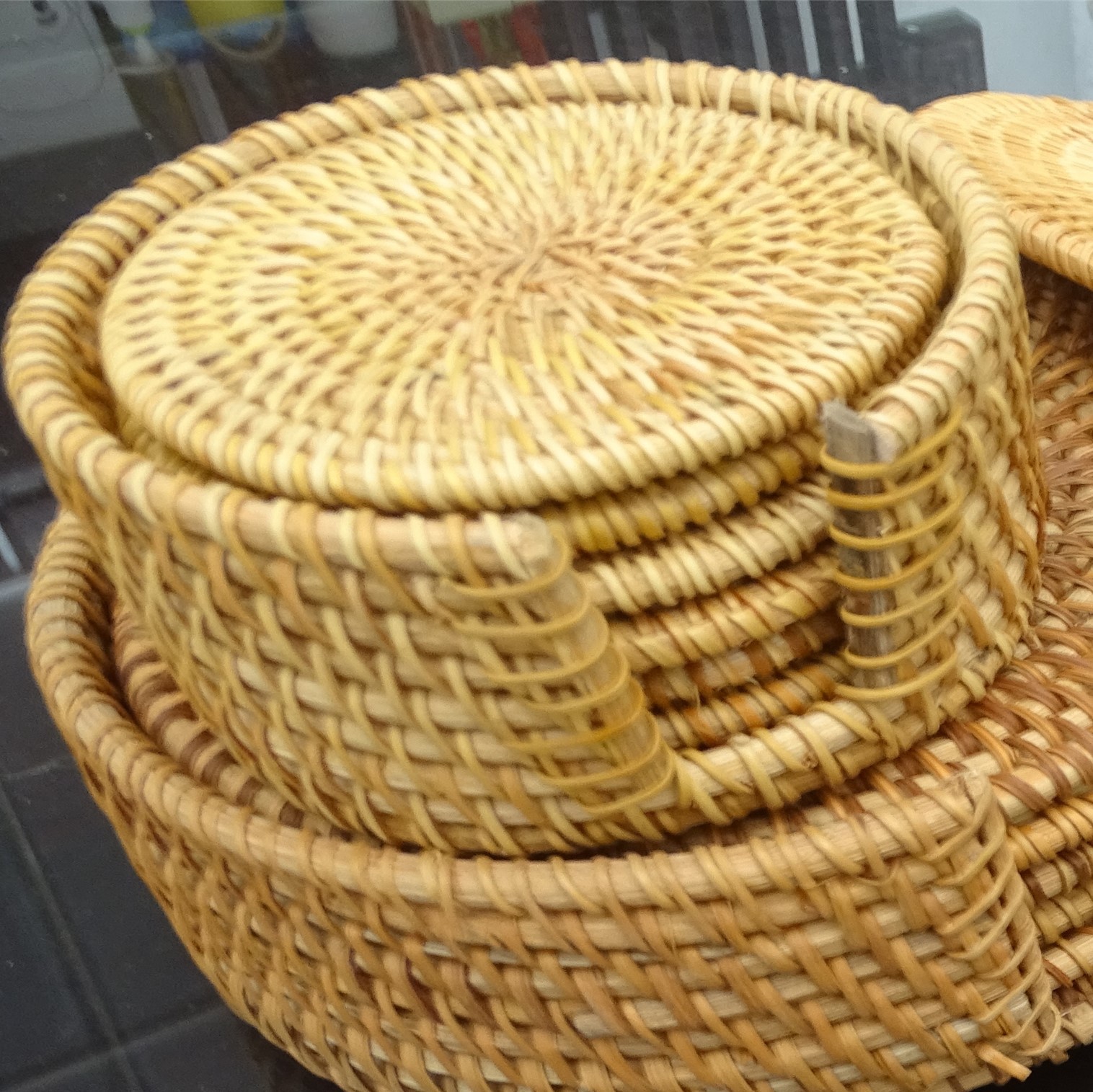 现货 越南藤编垫套装 杯垫秋藤杯垫壶垫隔热垫木质收纳茶具配件
