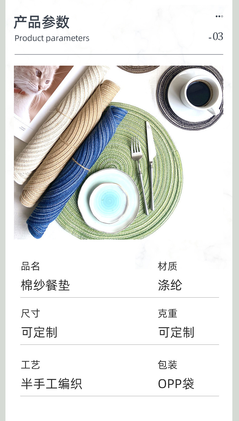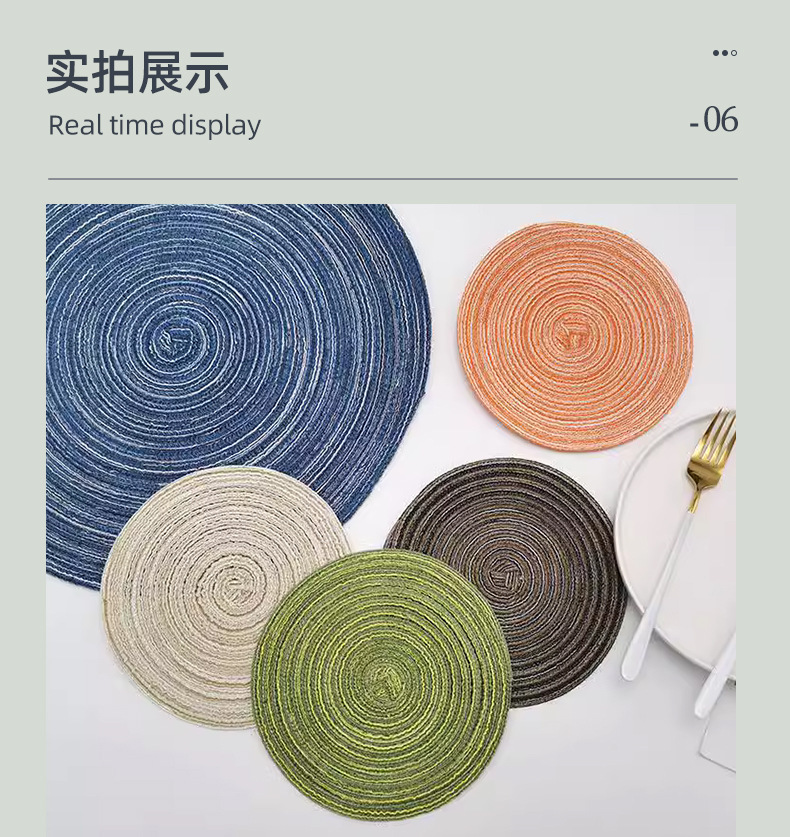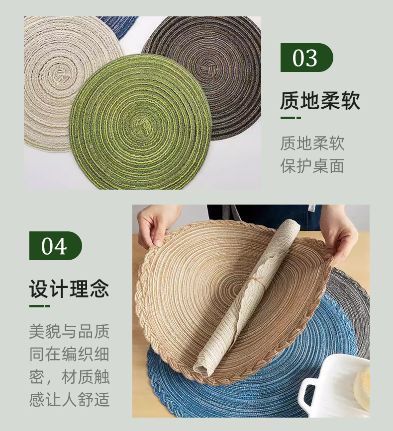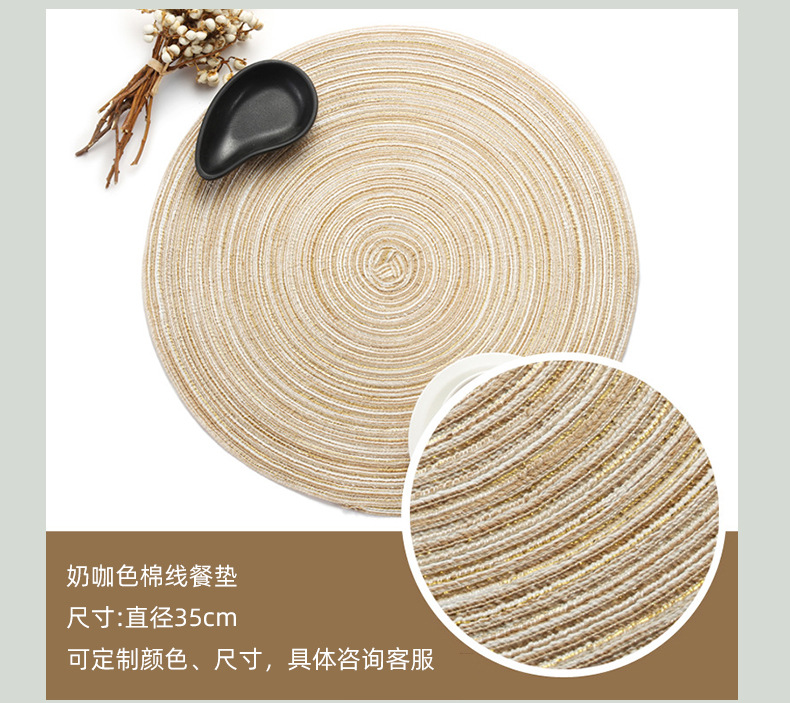 跨境北欧风圆形防烫编织餐垫棉纱餐厅桌隔热西餐垫家用杯垫碗垫