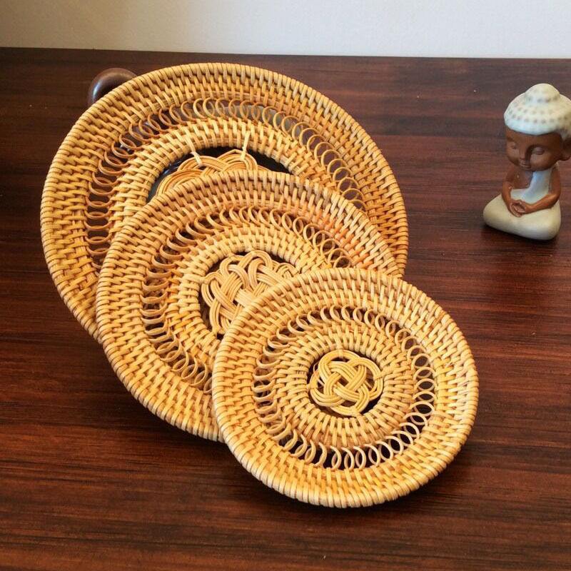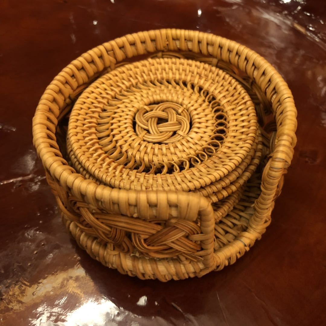 现货越南藤编杯垫圆形桌面茶杯垫秋藤餐桌西餐垫隔热茶具配件批发