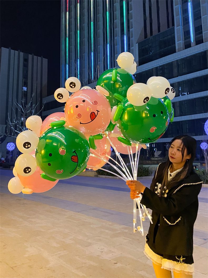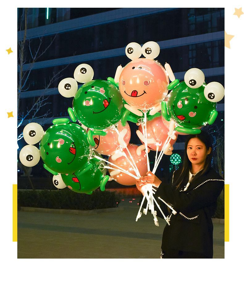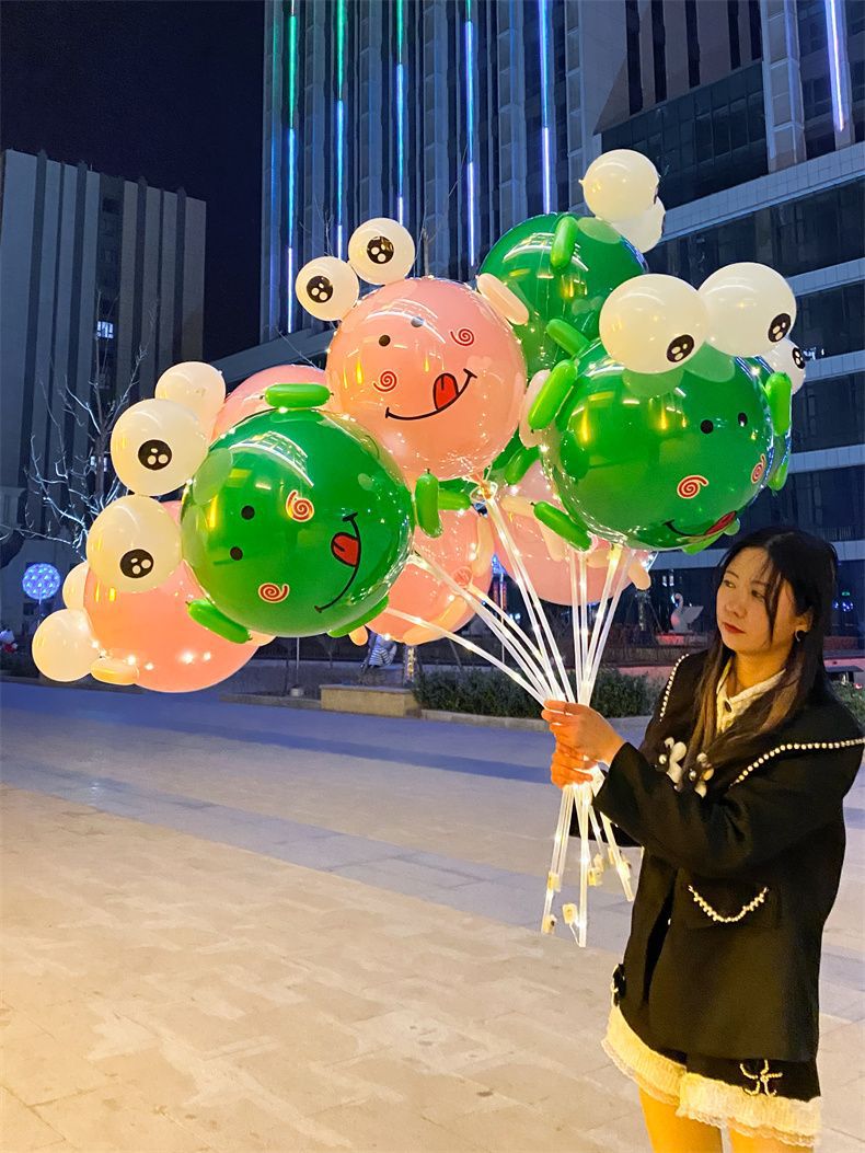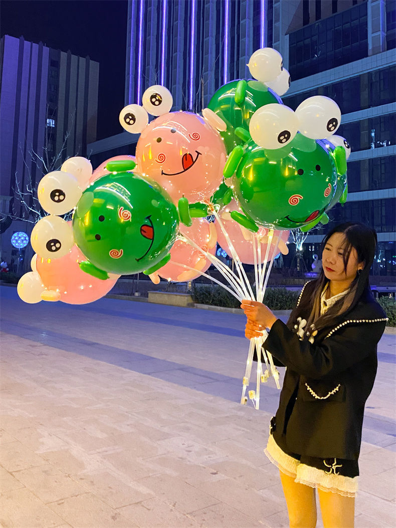 2024新款网红气球发光青蛙气球材料包批发摆地摊绿色青蛙气球批发