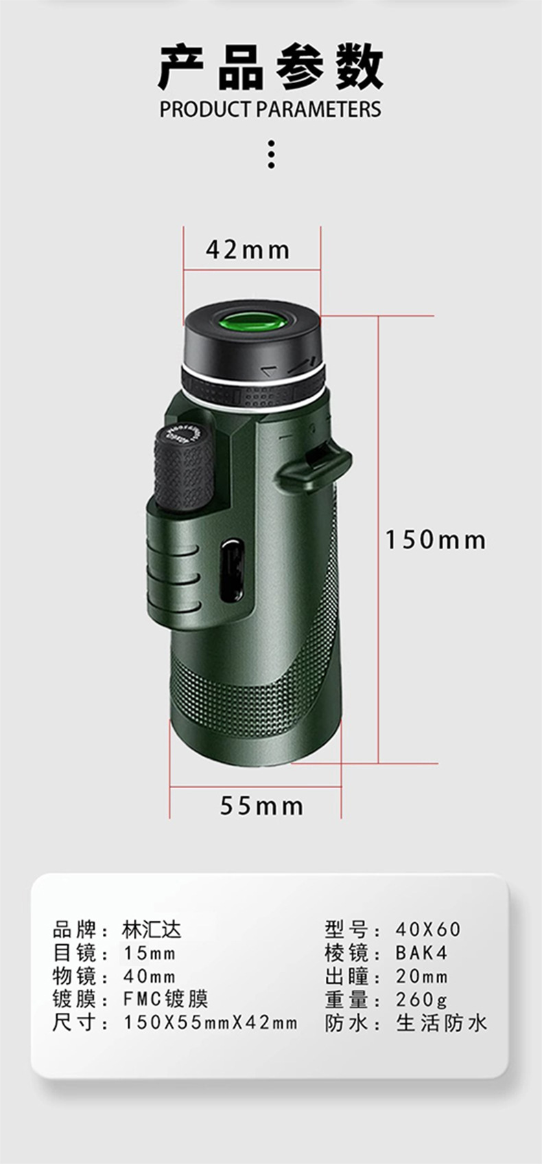 | 40 × 60 green telescope + phone holder(40×60绿色望远镜+手机夹) | USD $3.94 | 99990 table available |