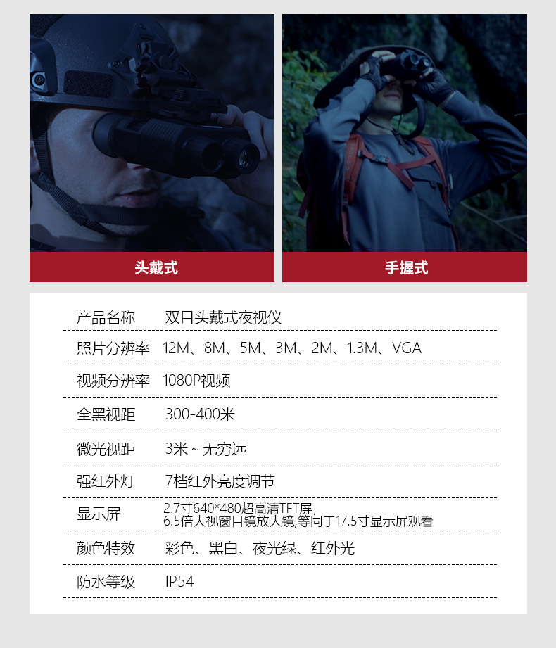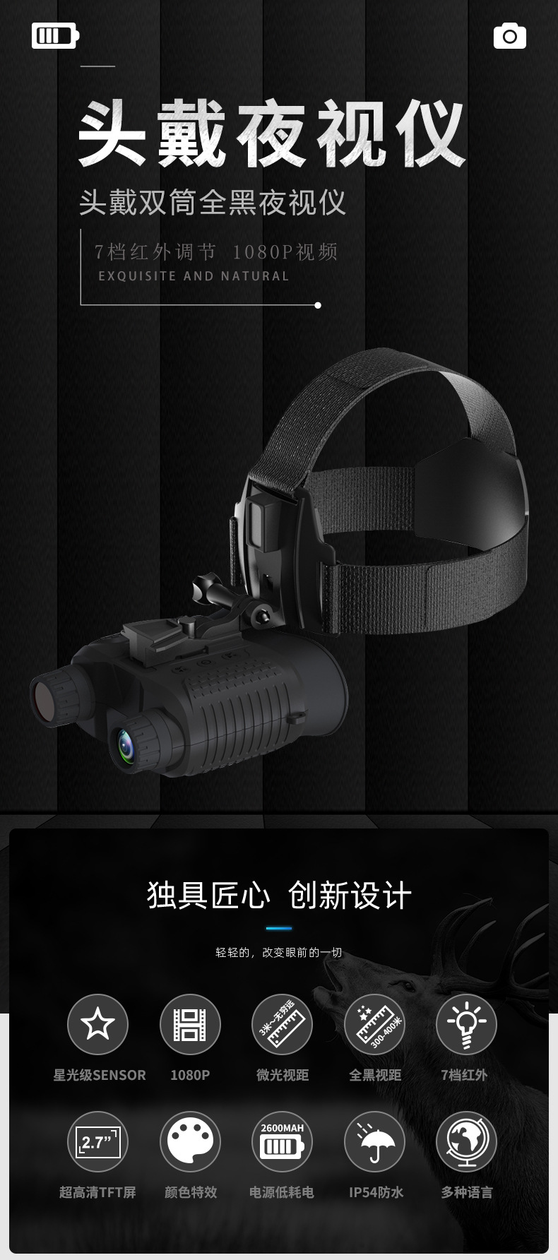 8160欧美跨境爆品双筒红外头戴盔式夜视仪高清录像拍照夜视望远镜