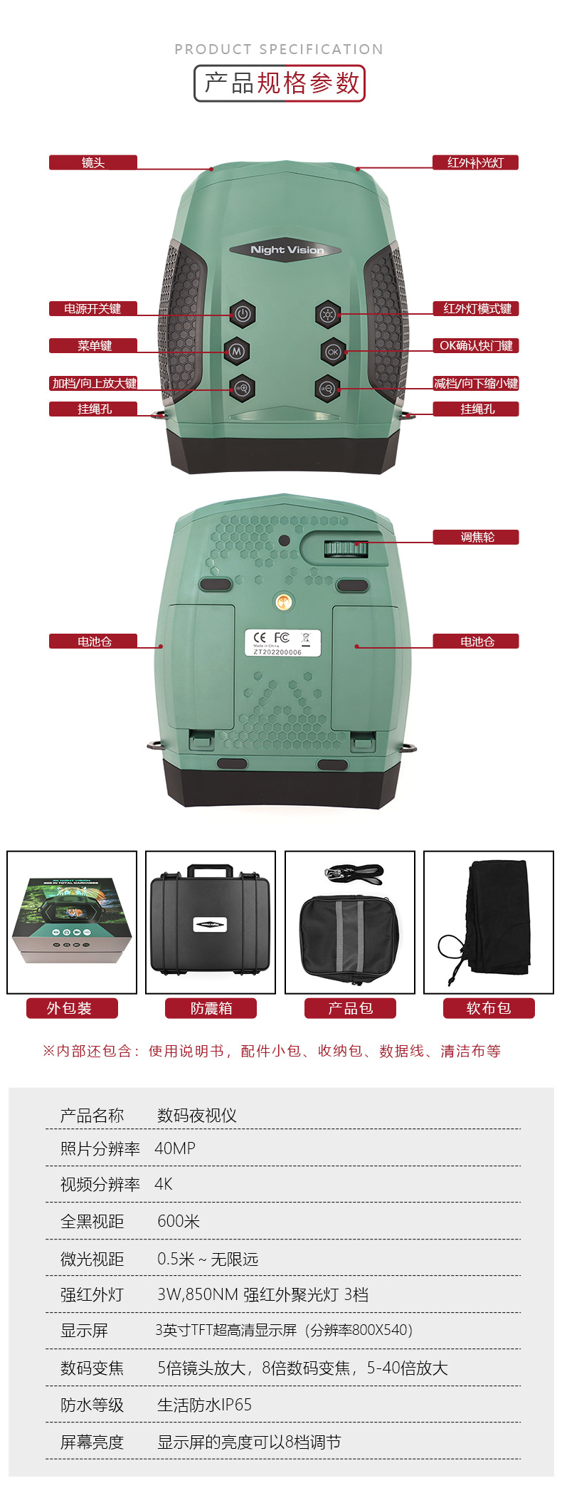 2023年新款微光全彩夜视仪户外全黑600米夜视镜红外夜视仪望远镜