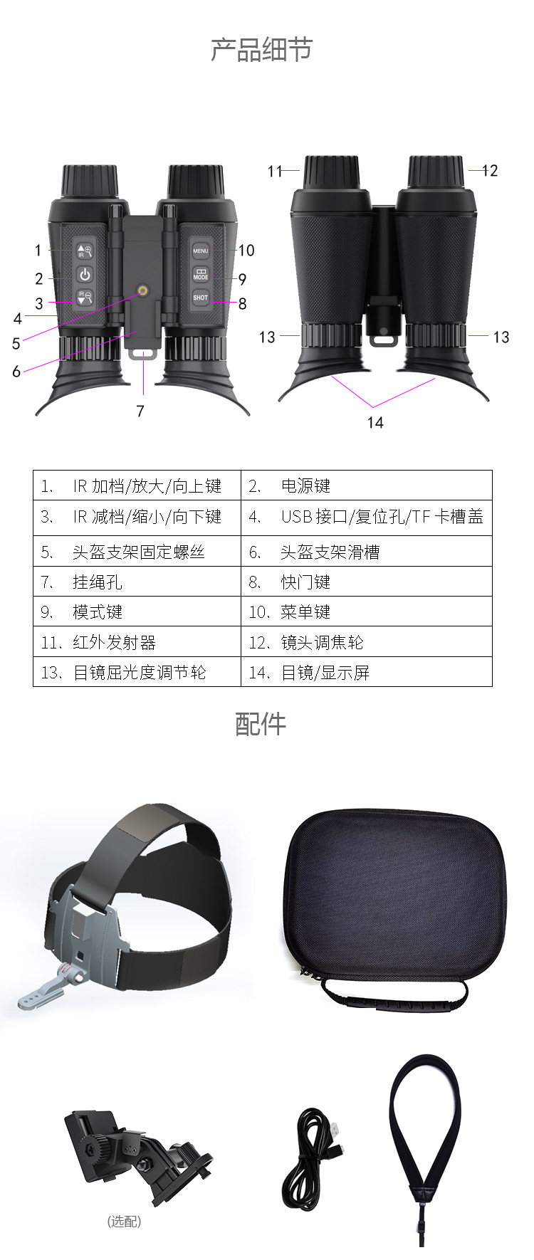 跨境新品头戴式夜视仪高清双筒望远镜视力屈光头盔红外线夜视镜