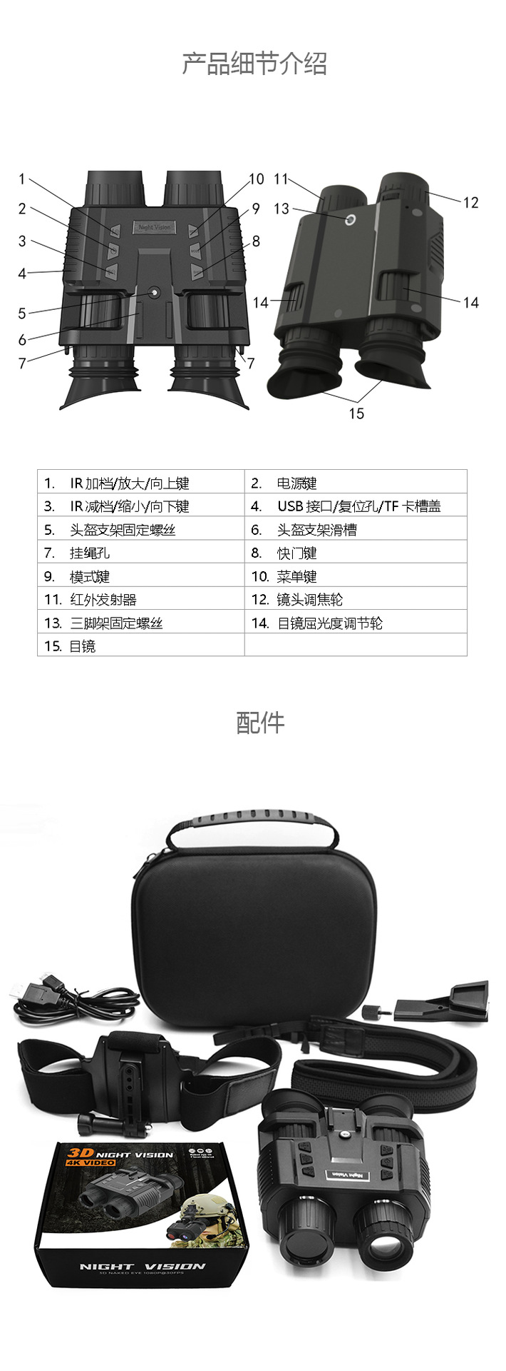 NV8000跨境4K头戴式夜视仪 数码高清双筒户外红外头盔夜视望远镜