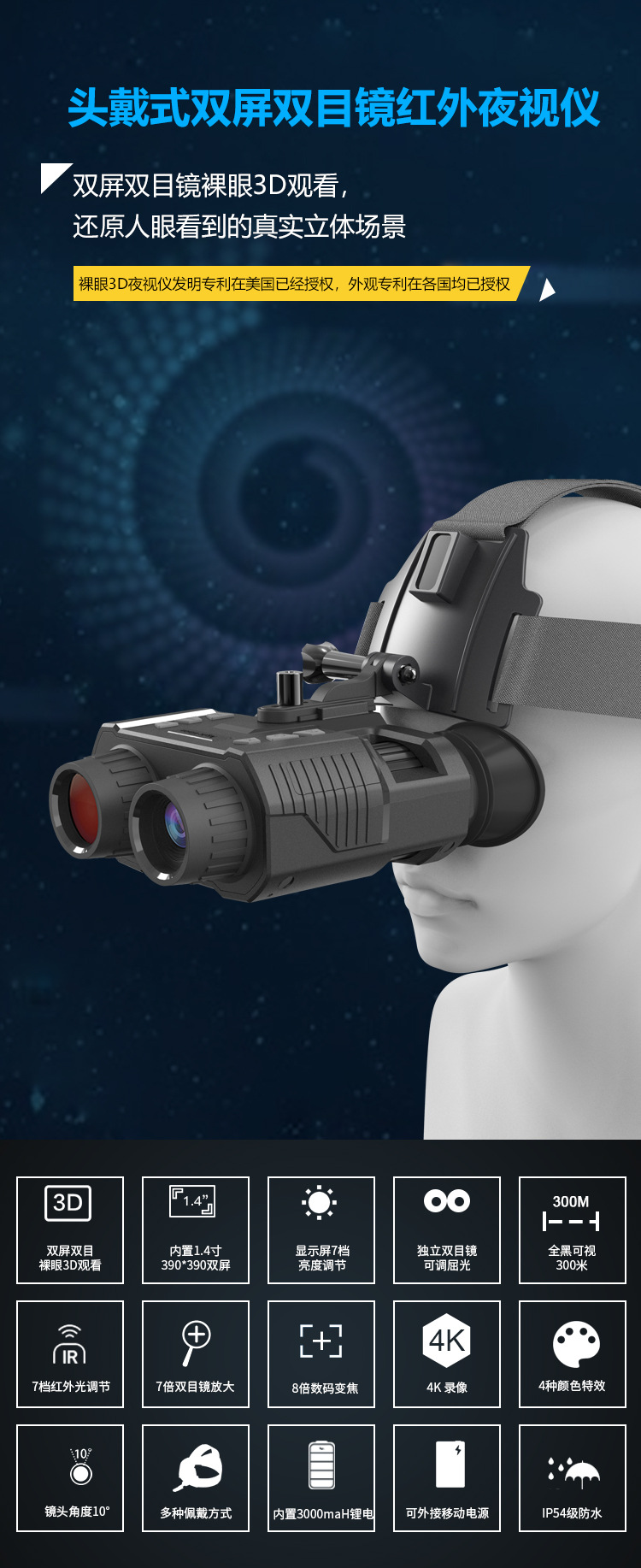 跨境头戴式双筒夜视仪户外高清红外数码夜双目黑白夜视望远镜厂家