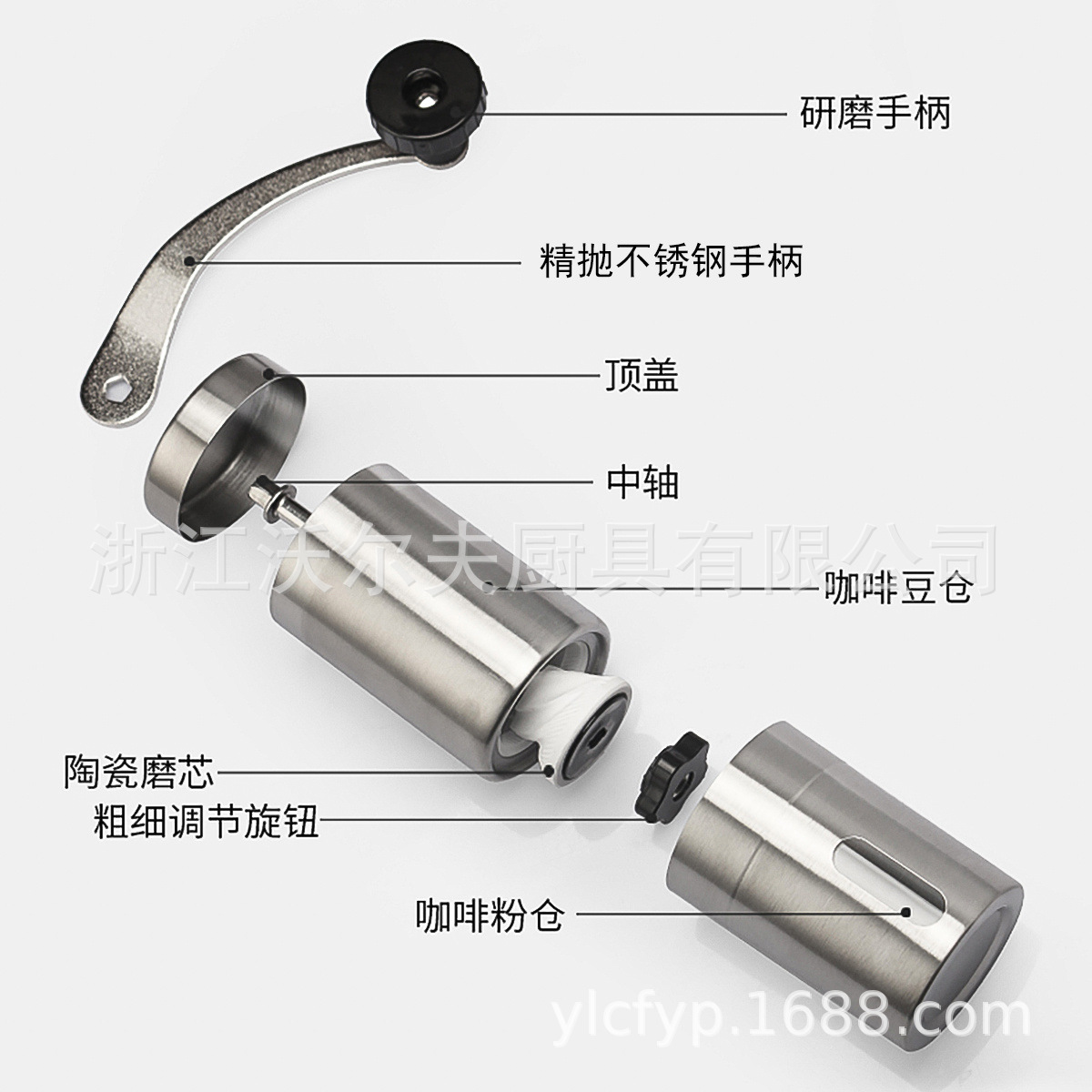 现货电商平台热销便携式304不锈钢手摇咖啡磨豆机陶瓷磨芯
